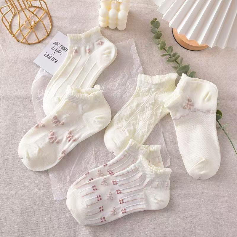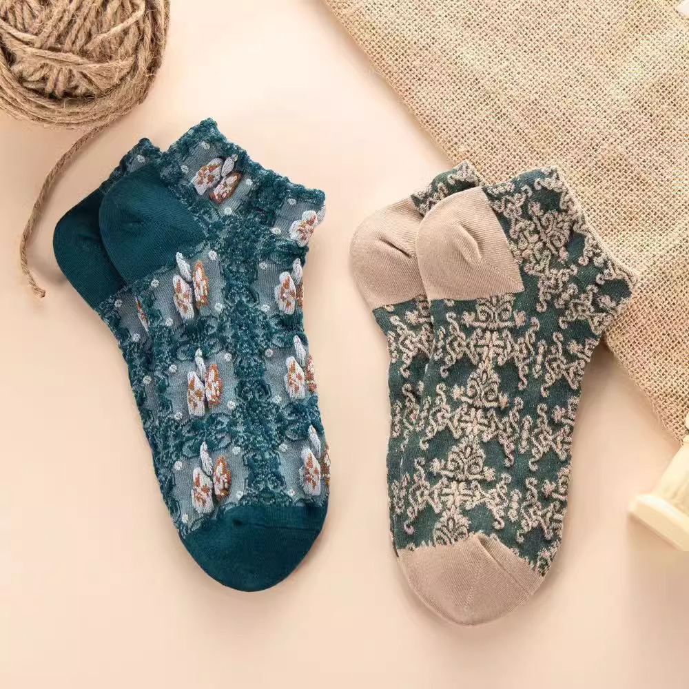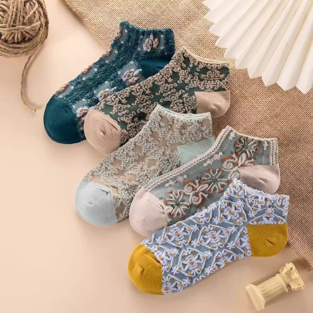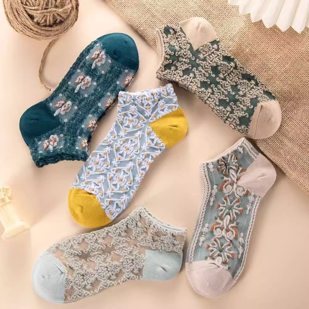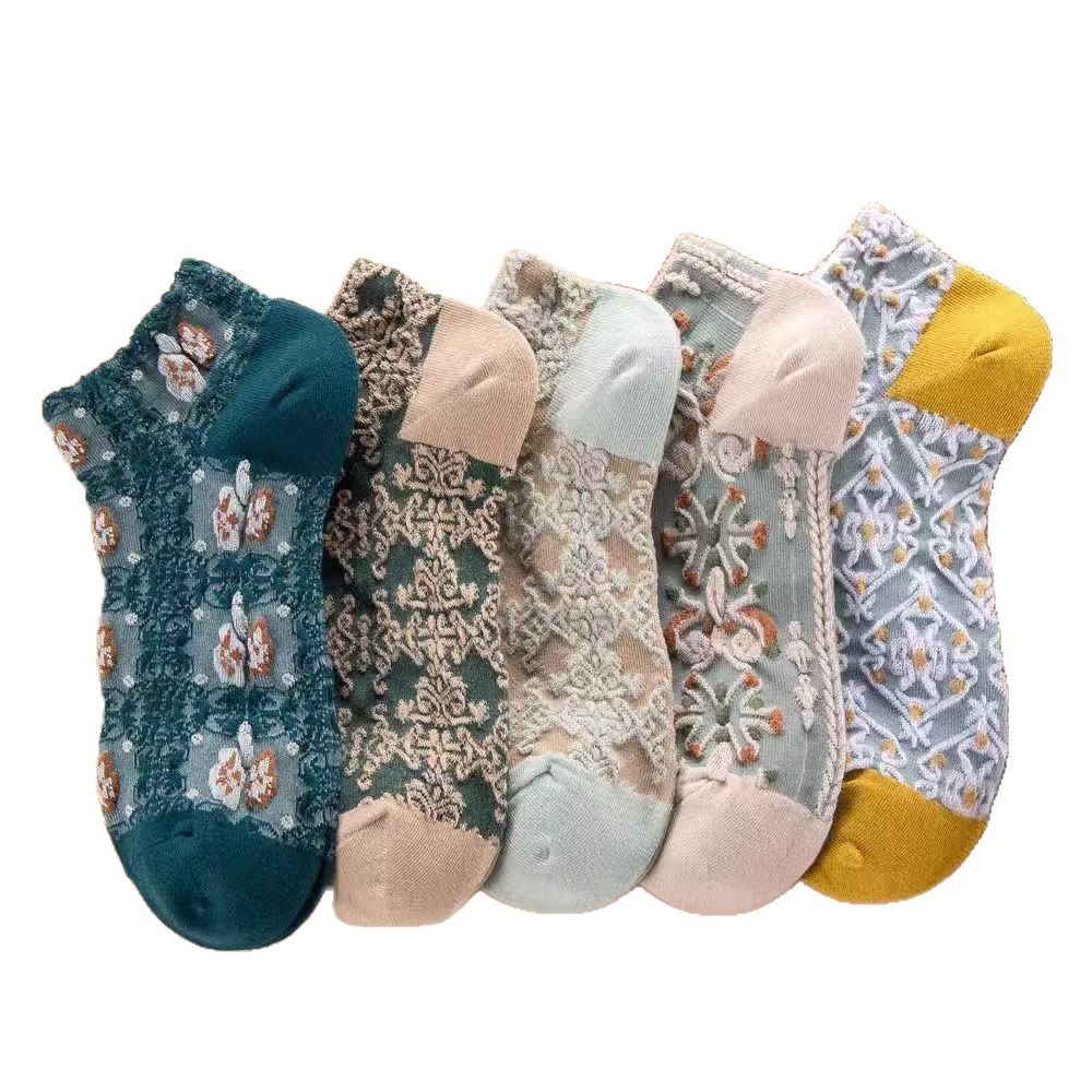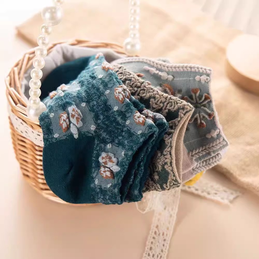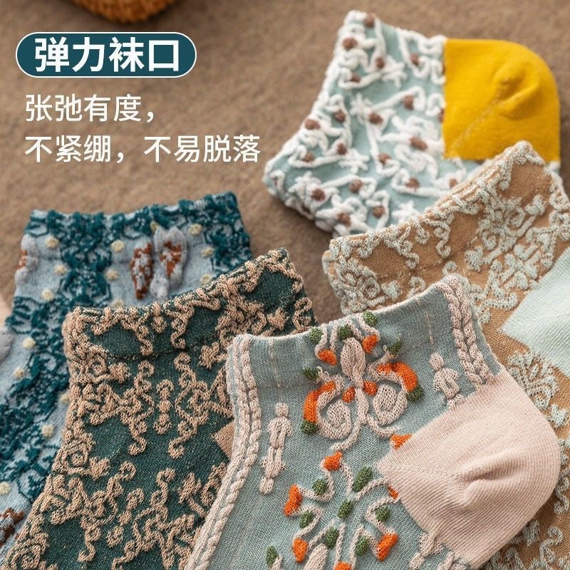 船袜小众文艺宫廷港风民族风浮雕短筒袜子女复古英伦风繁花低帮