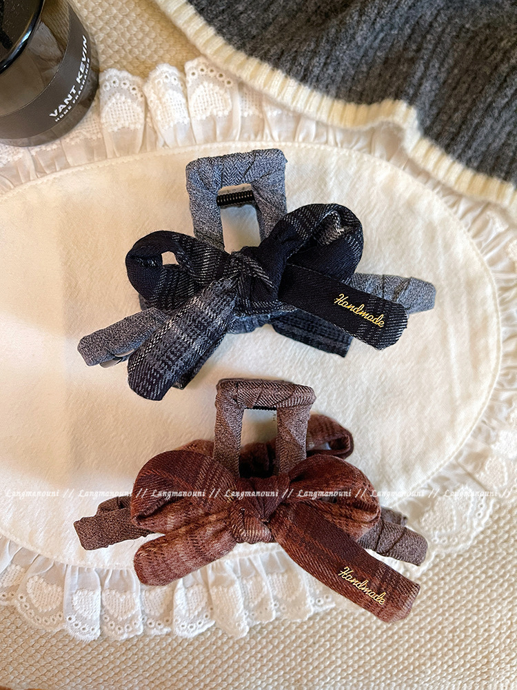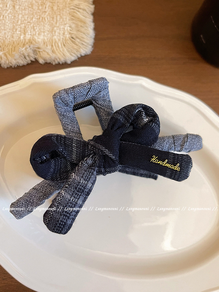 高级感格纹蝴蝶结抓夹女2025新款大号盘发鲨鱼夹后脑勺发夹子发饰