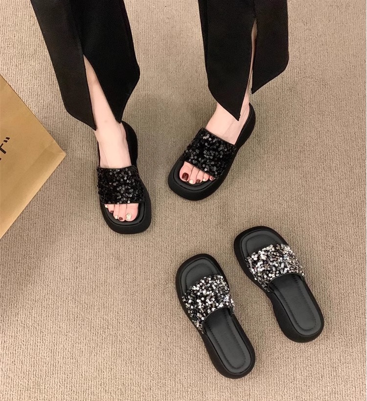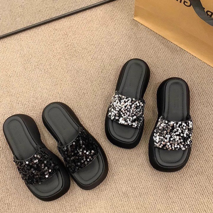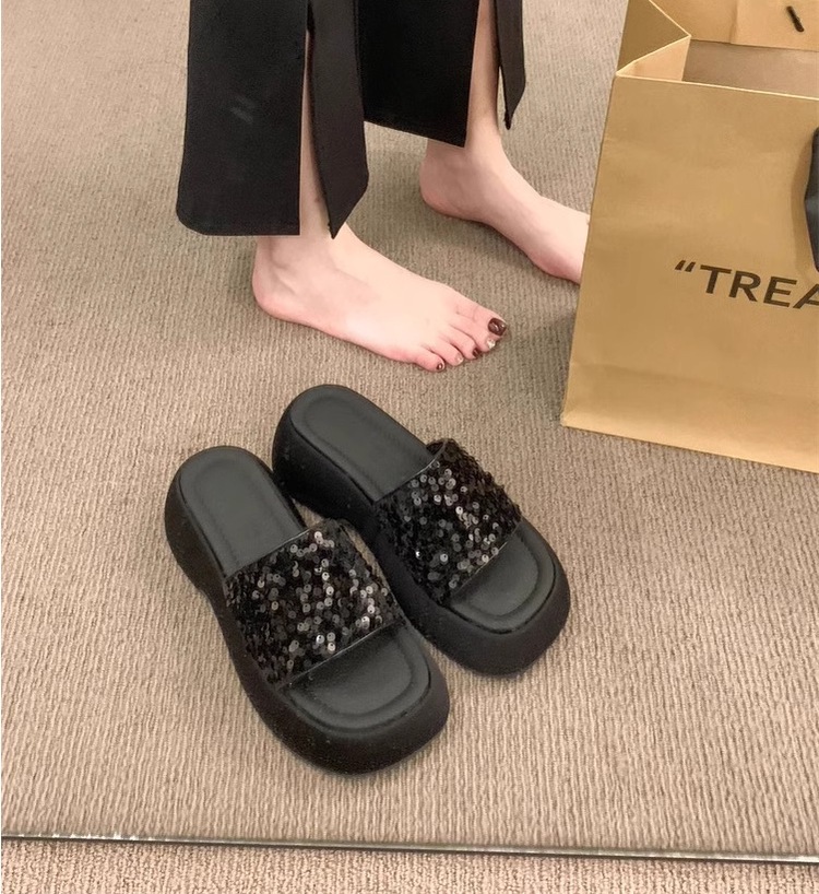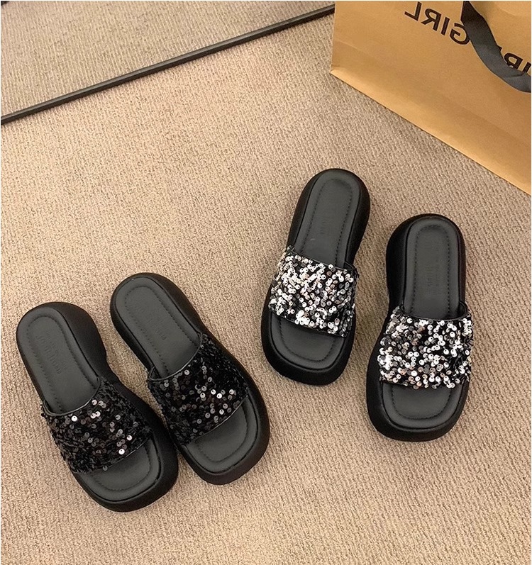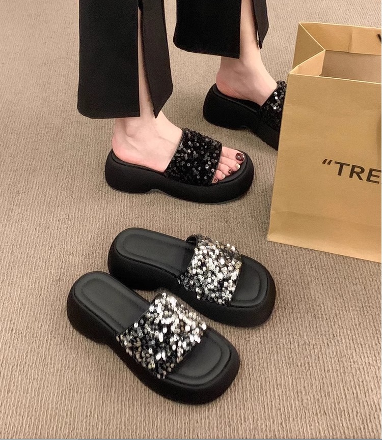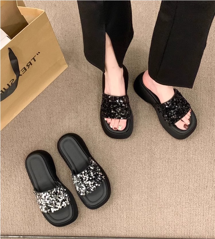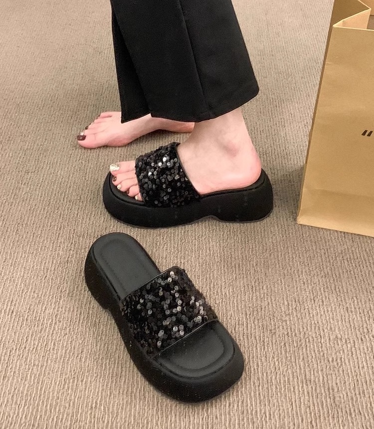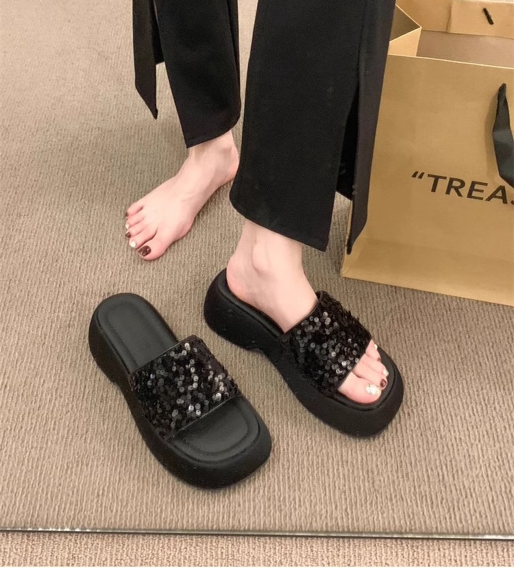 高级感厚底凉鞋半拖女2026夏季外穿新款亮片松糕底女士一字拖鞋子