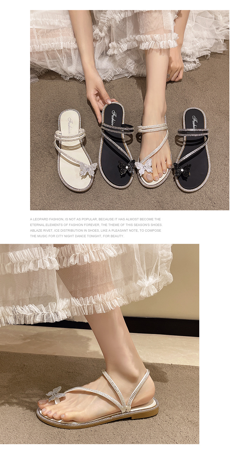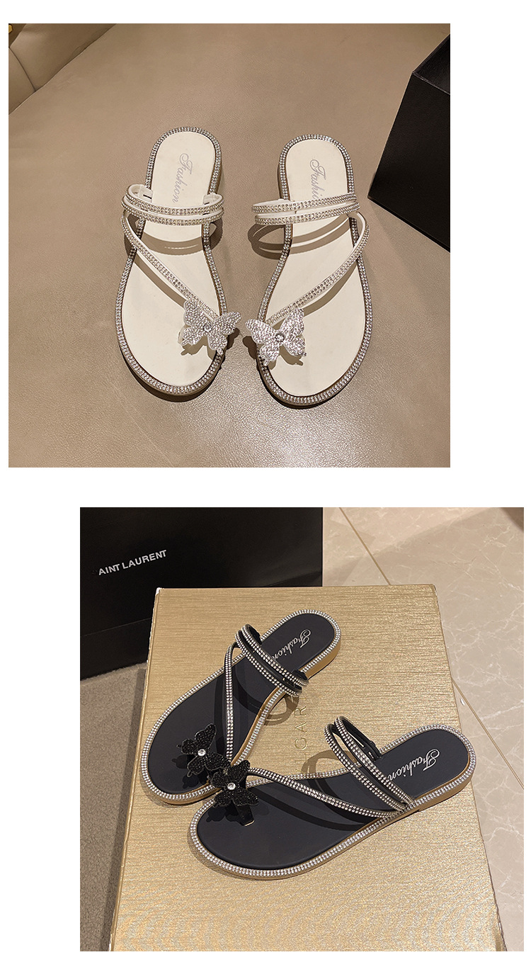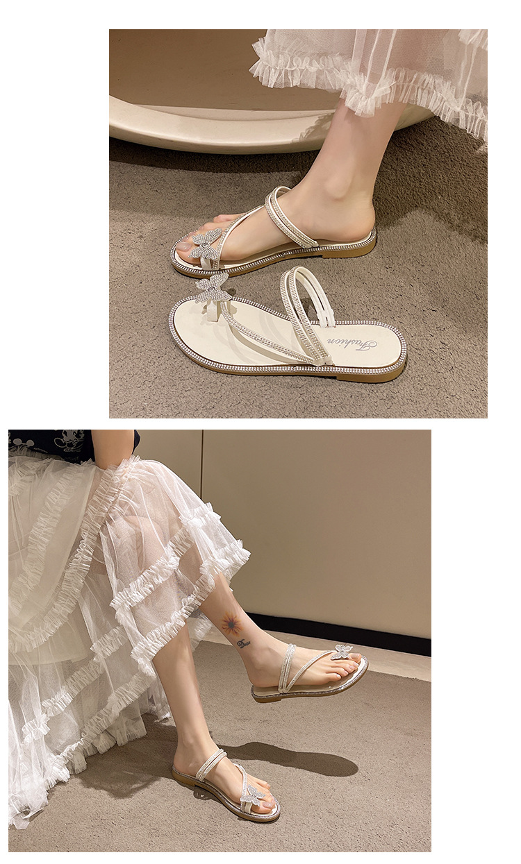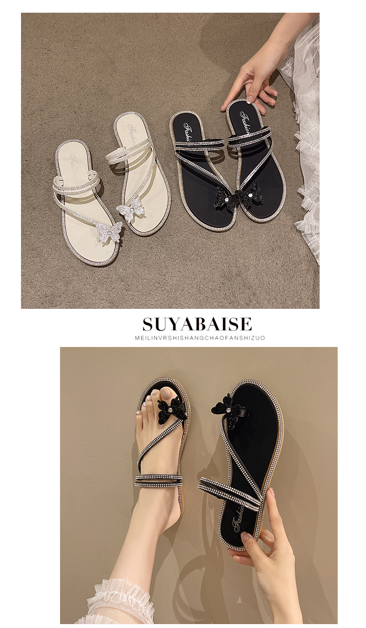 2025新款高级感女夏季时尚百搭套趾水钻蝴蝶一体两穿度假沙滩凉鞋