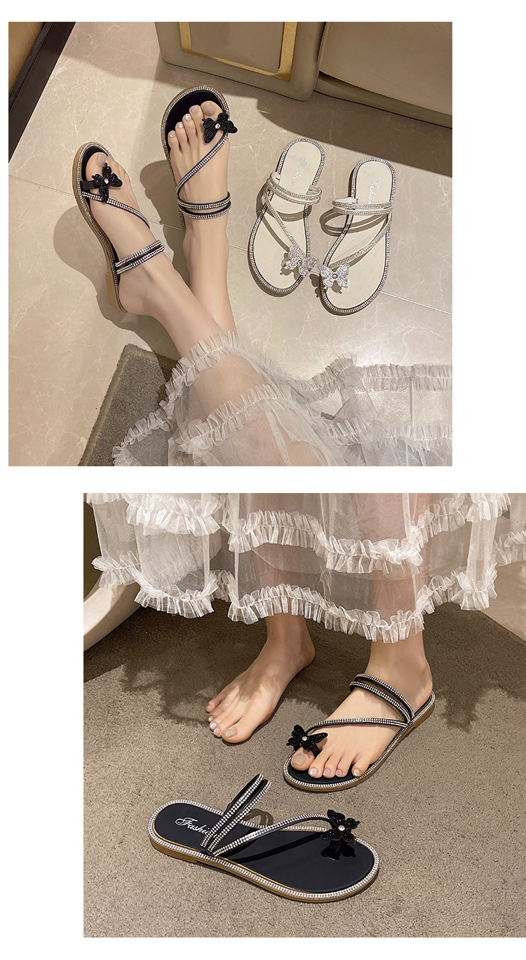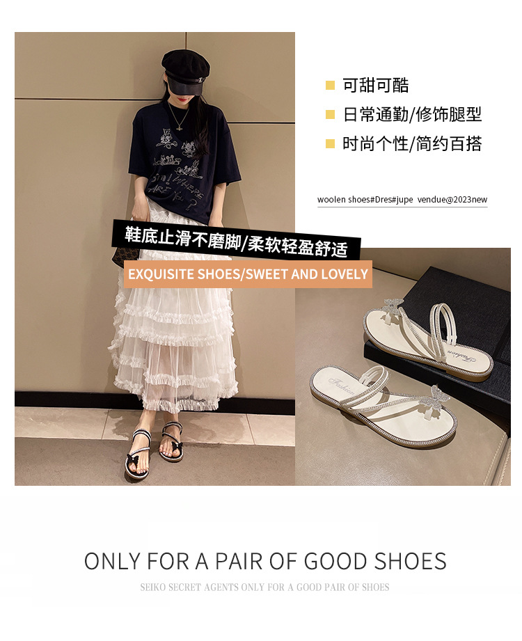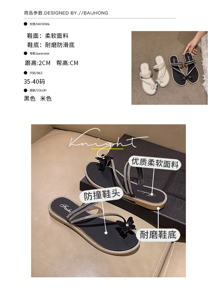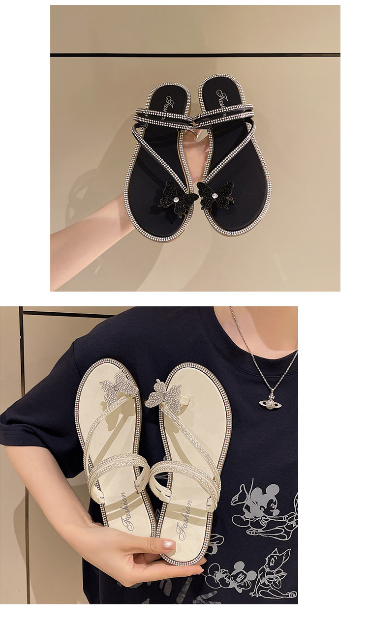 2025新款高级感女夏季时尚百搭套趾水钻蝴蝶一体两穿度假沙滩凉鞋