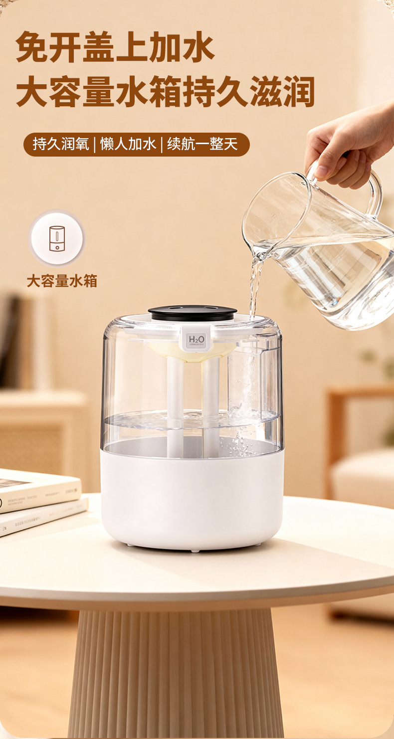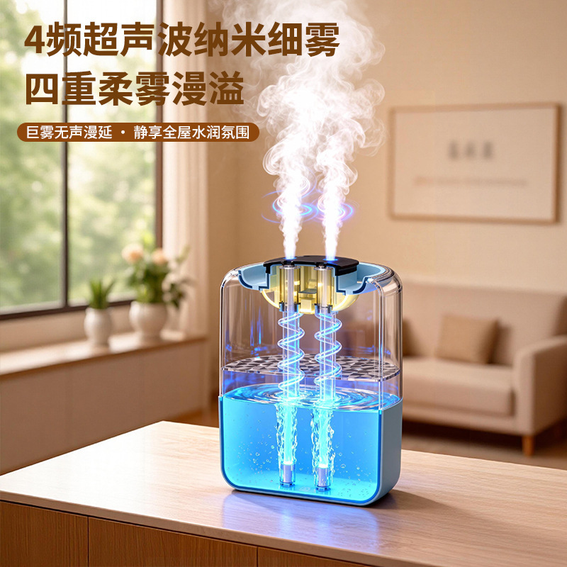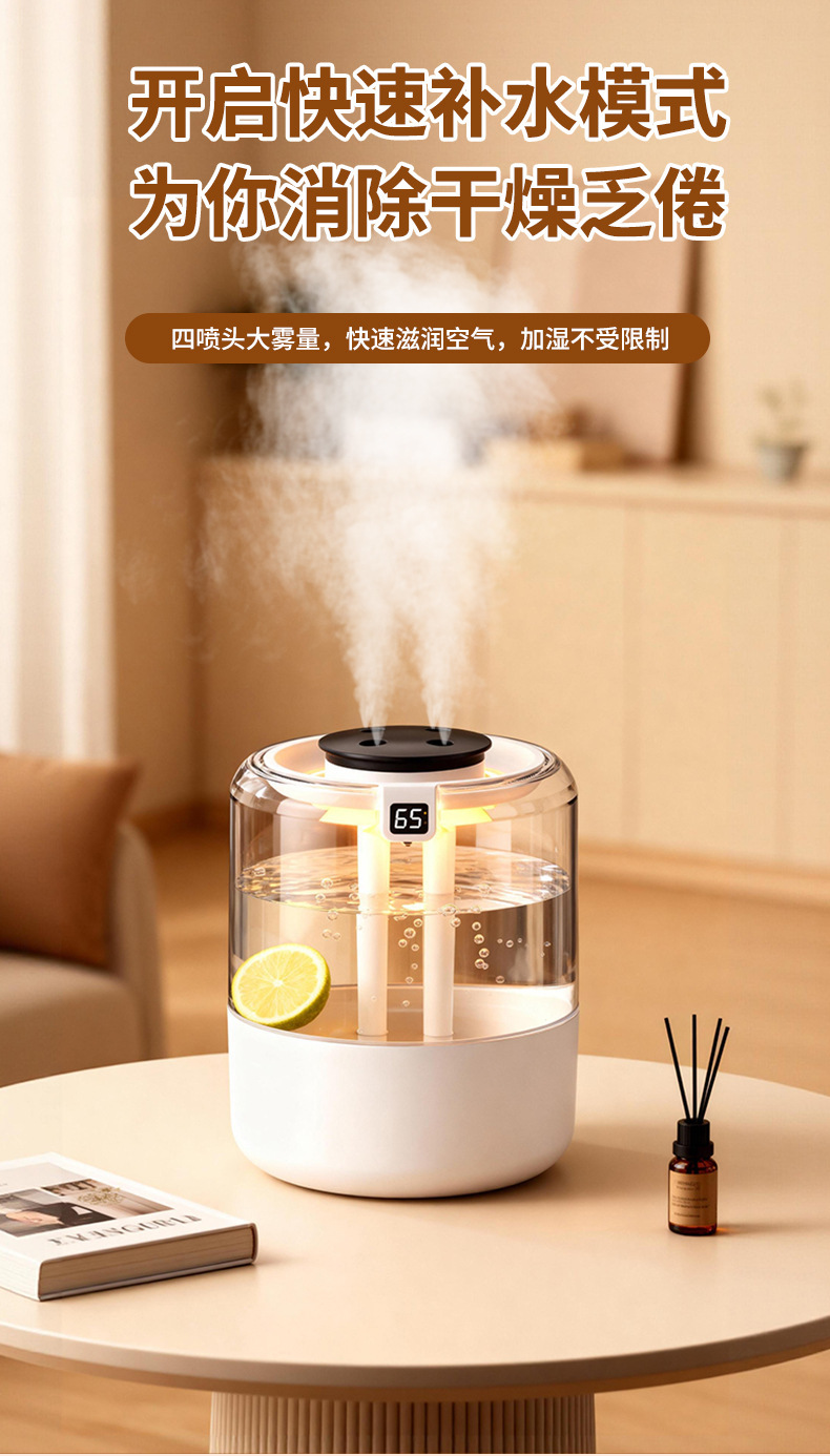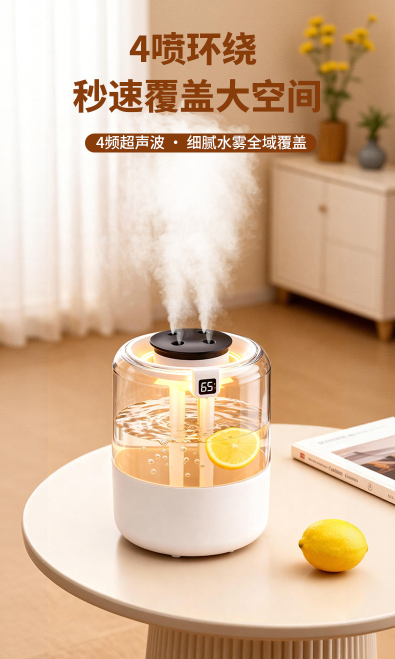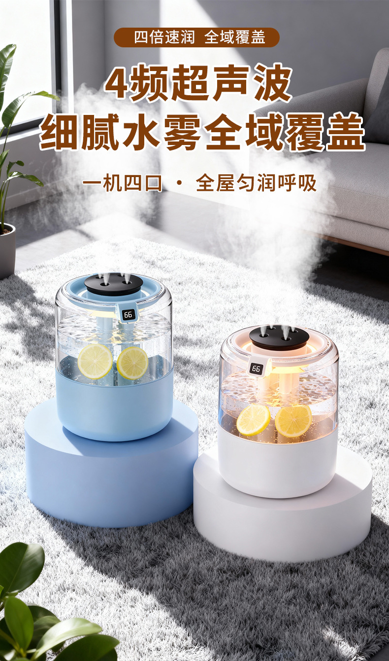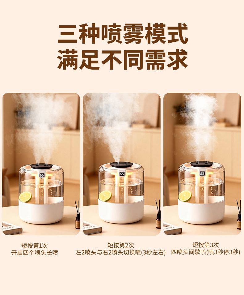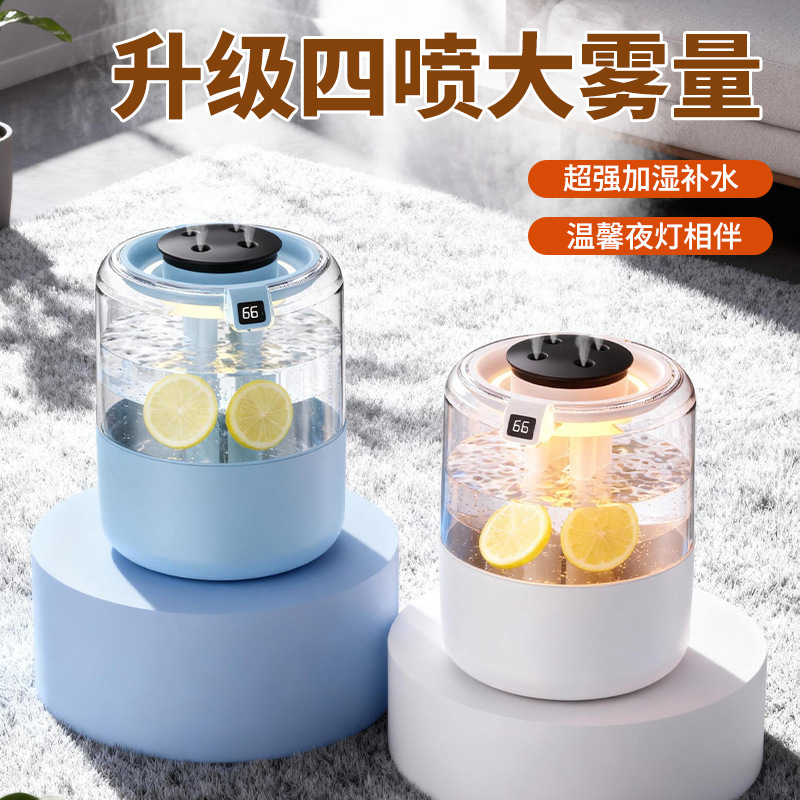 跨境四喷桌面空气加湿器卧室小型家用大容量大喷雾办公室logo定制