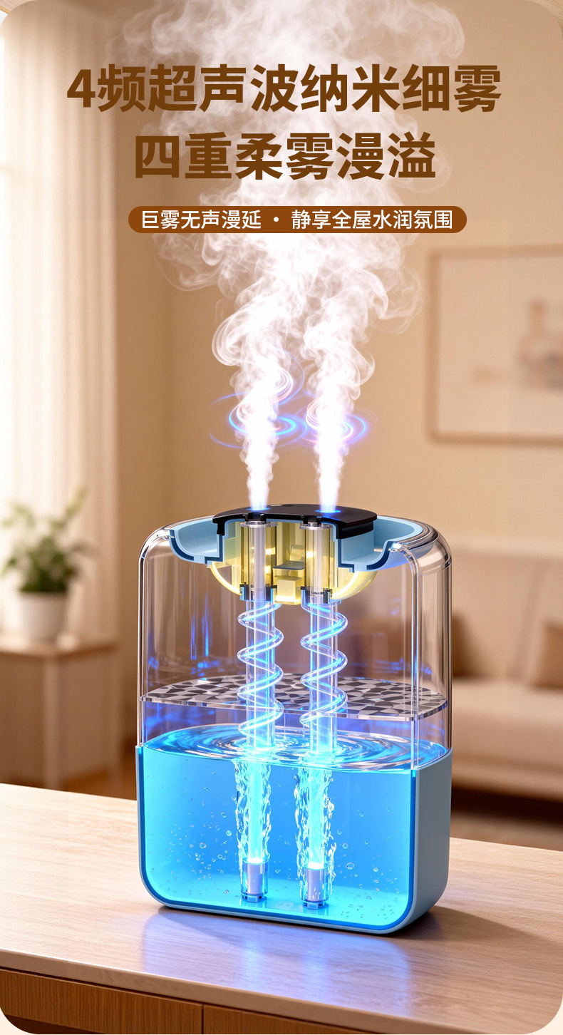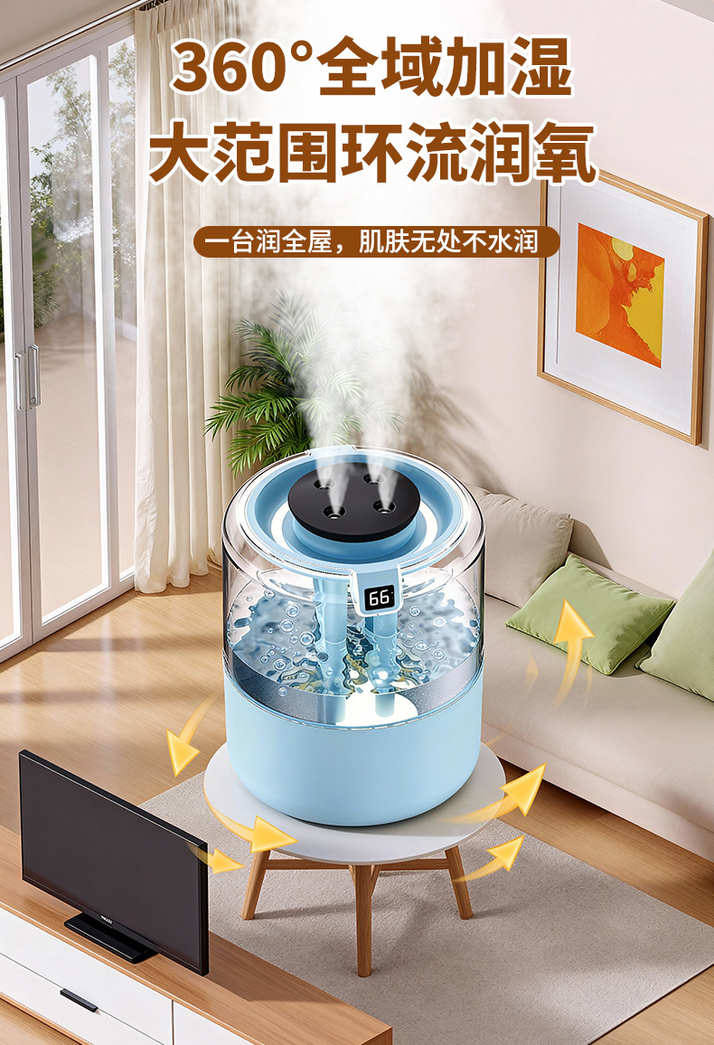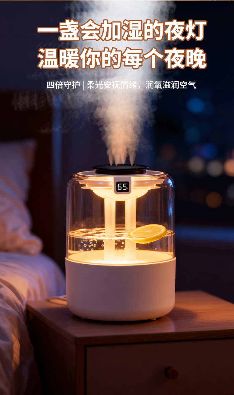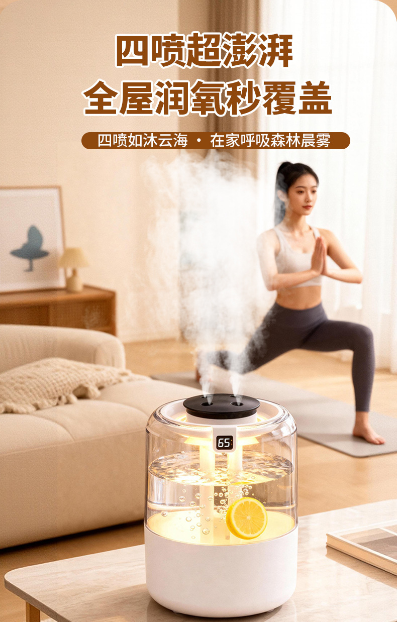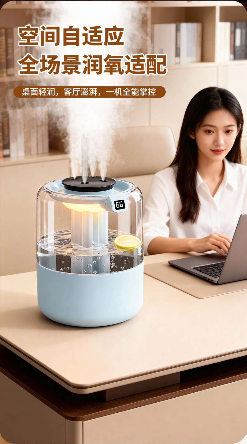 跨境四喷桌面空气加湿器卧室小型家用大容量大喷雾办公室logo定制