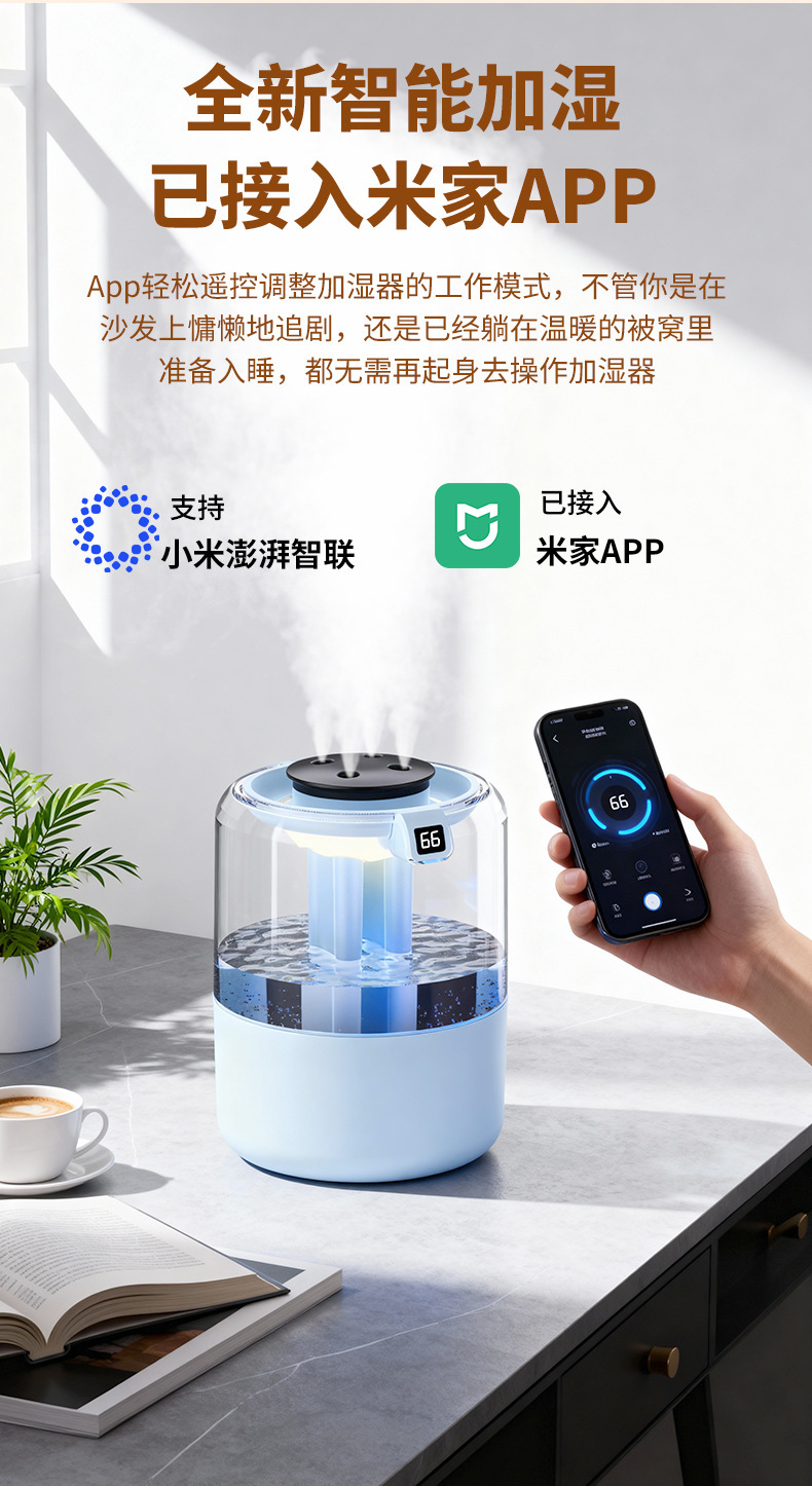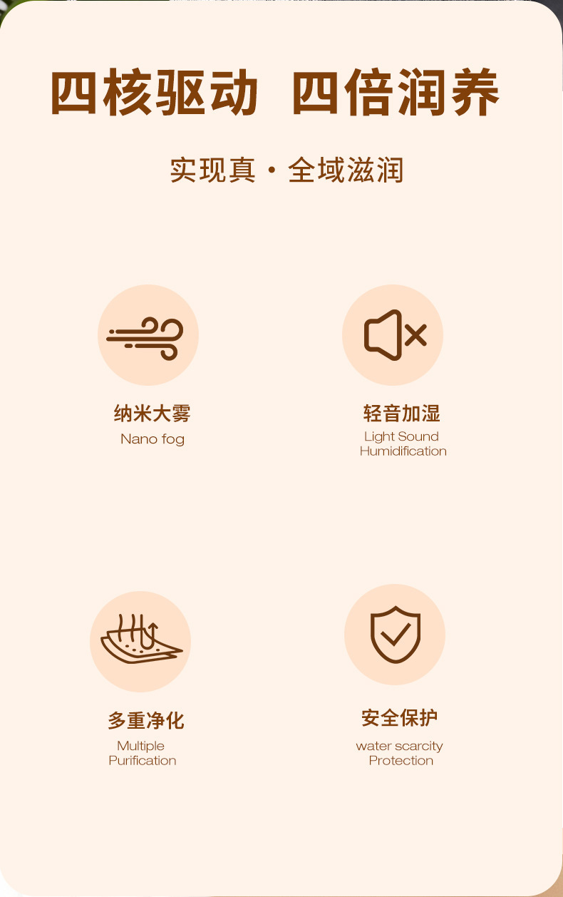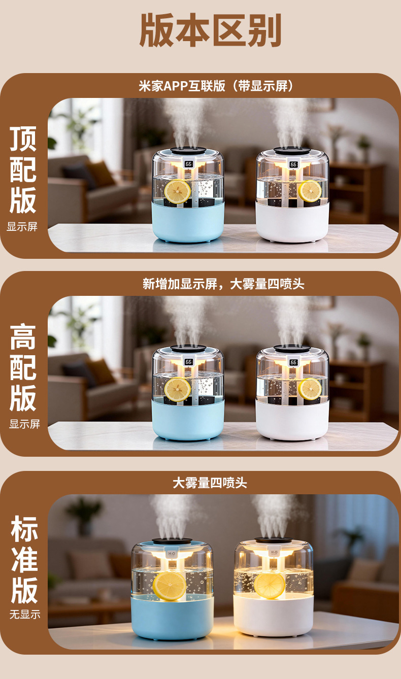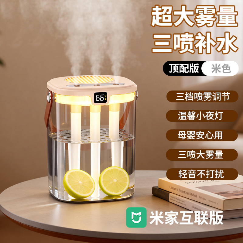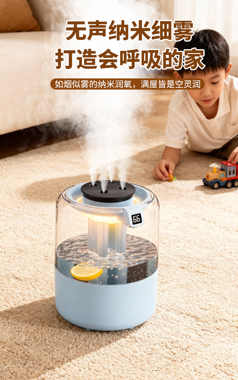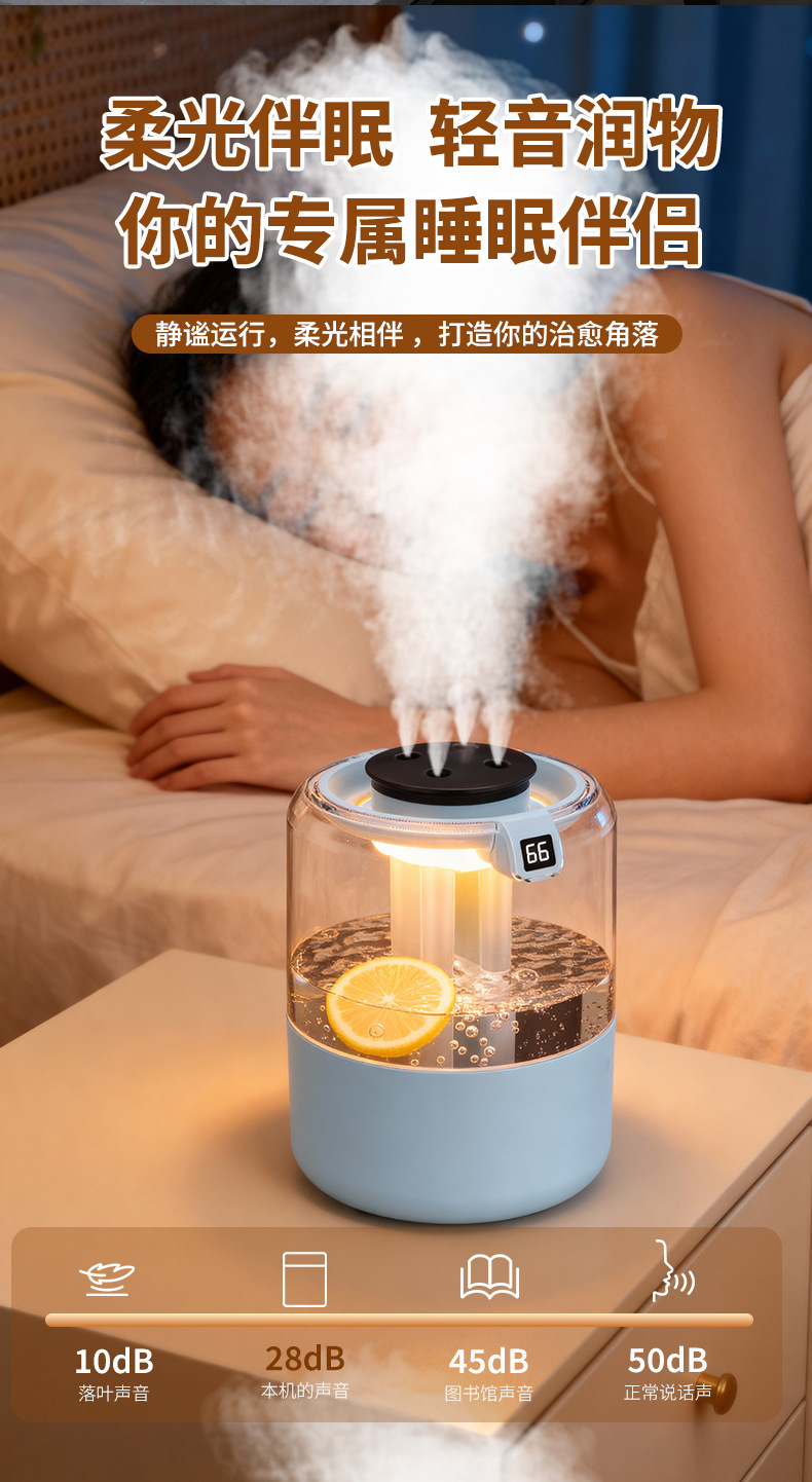 跨境四喷桌面空气加湿器卧室小型家用大容量大喷雾办公室logo定制