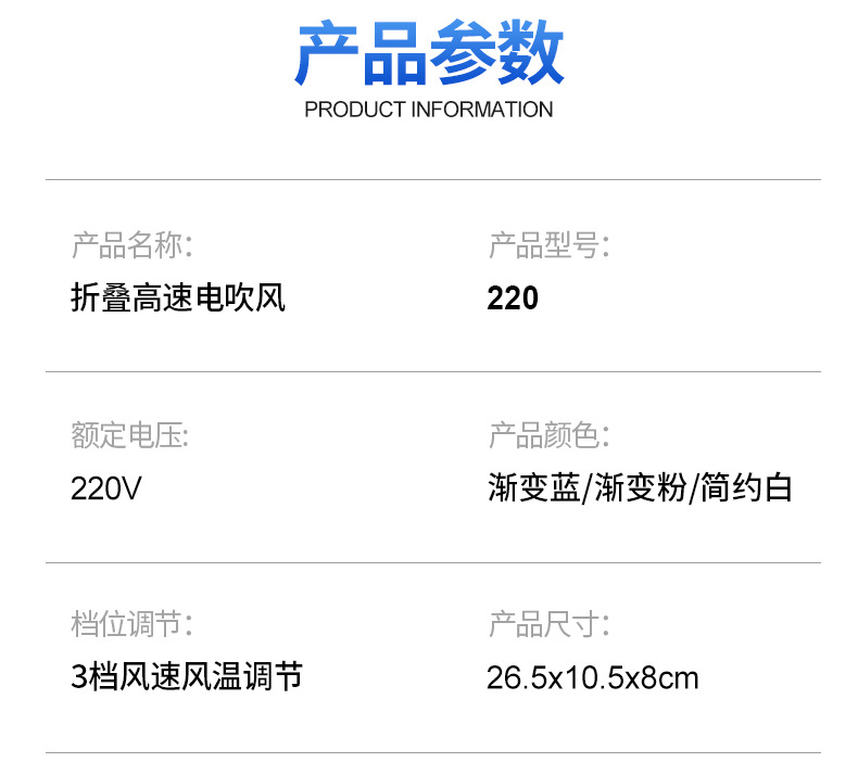高速便携式折叠吹风机家用大风力蓝光护发宿舍酒店电吹风礼品批发