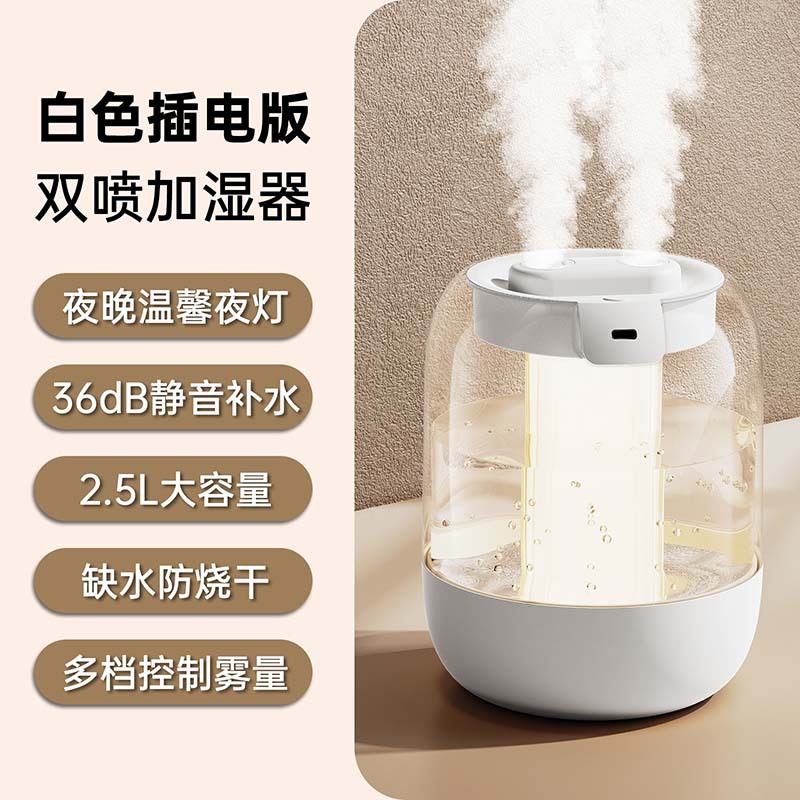 2024新款USB大容量加湿器双喷雾家用宿舍办公室香薰卧室桌面礼品