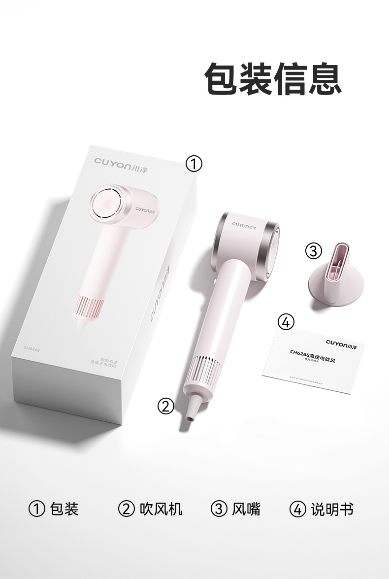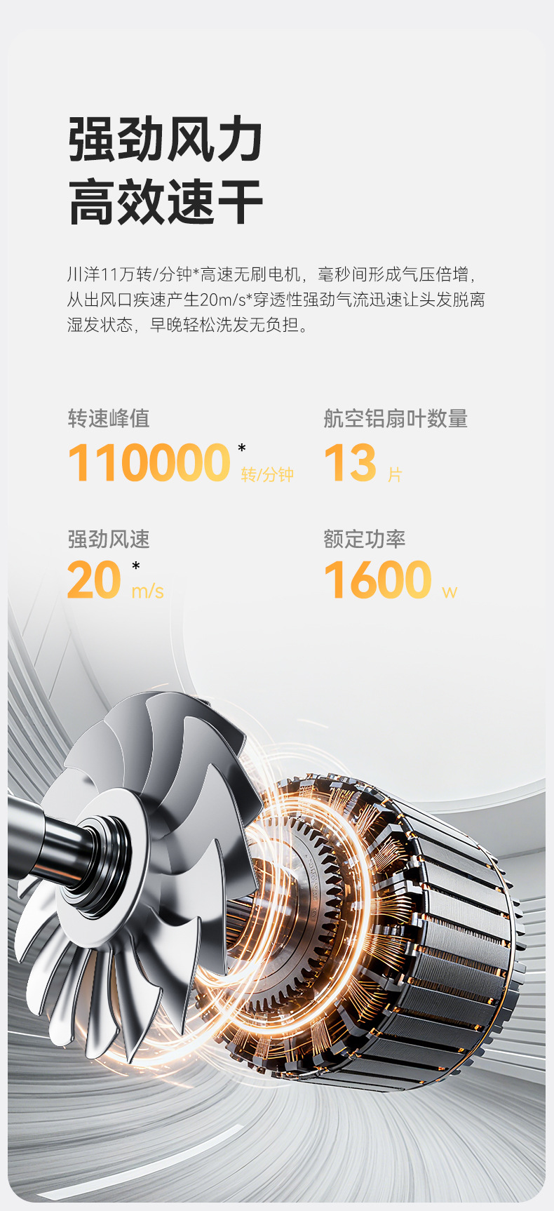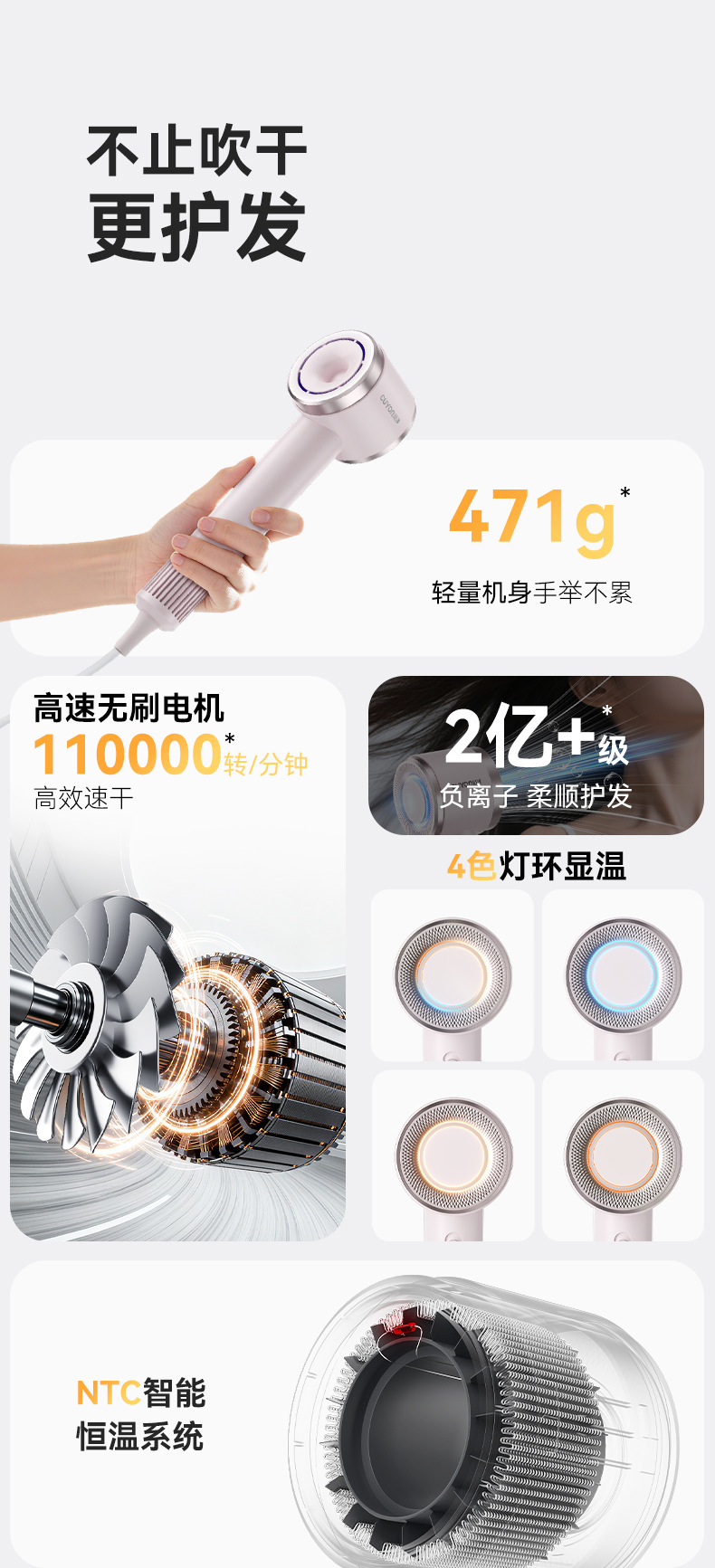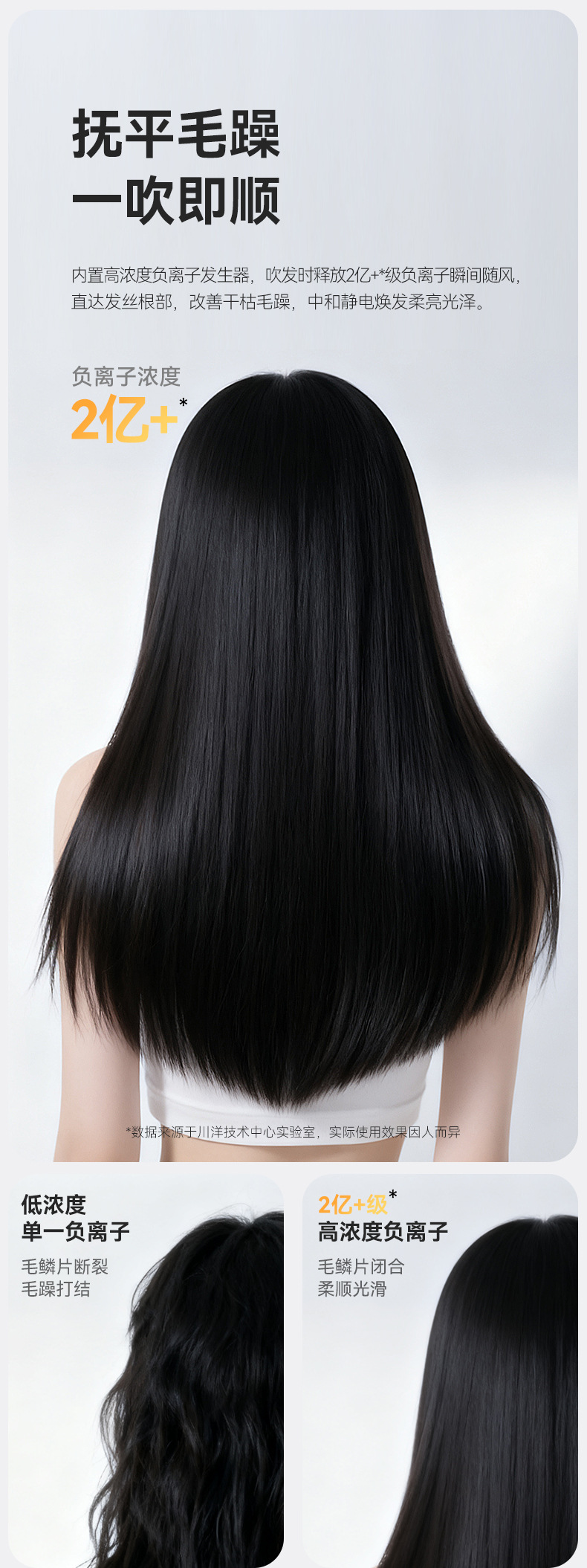川洋高速吹风机2亿负离子柔顺护发 家用大功率低噪速干无刷电吹风