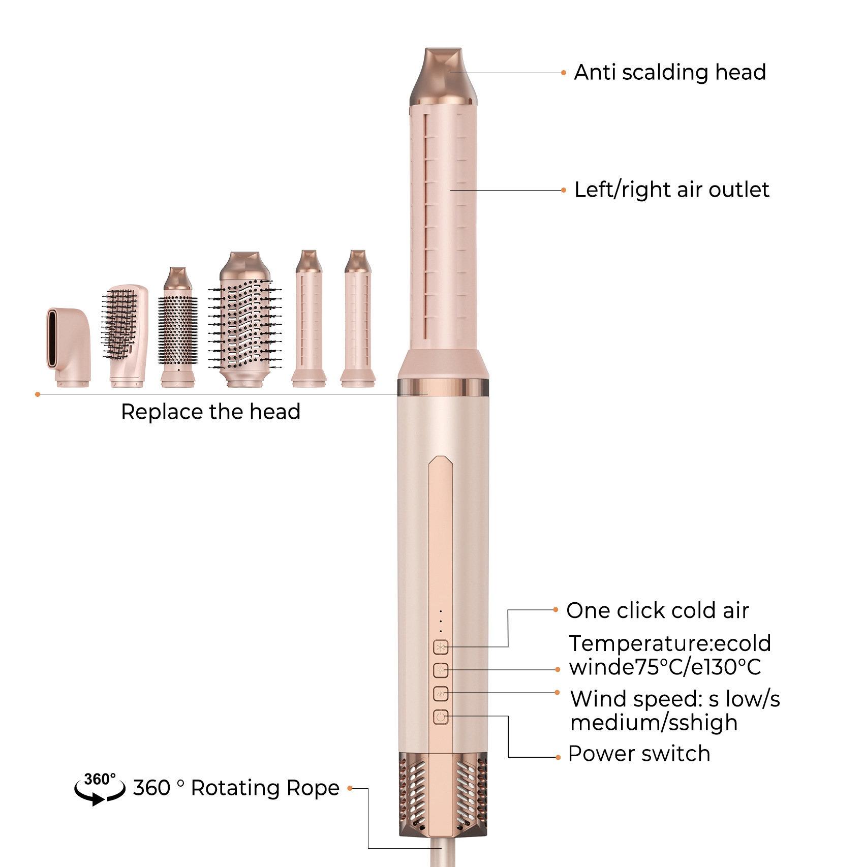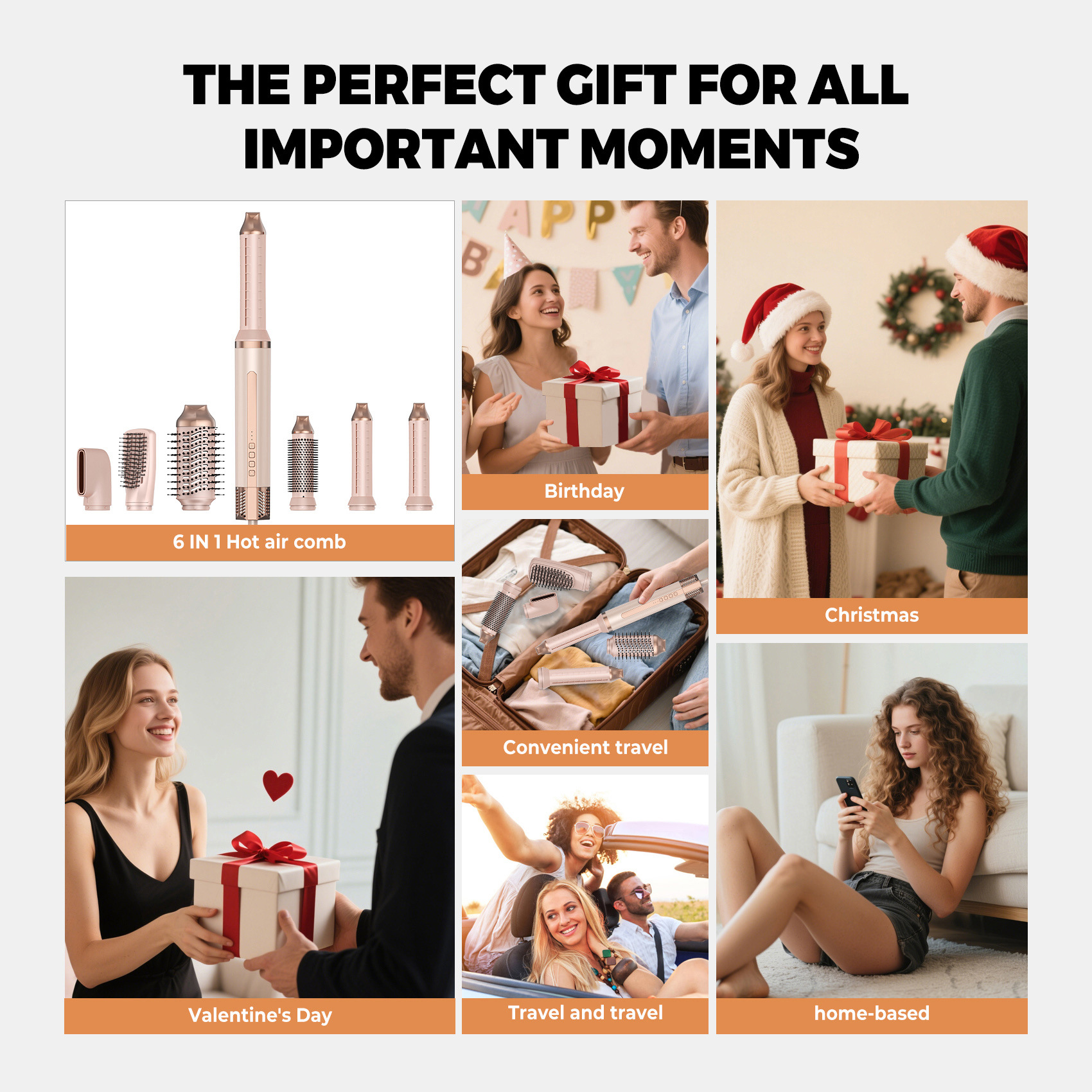 跨境热卖高速吹风机多功能自动卷发棒直卷两用负离子六合一热风梳