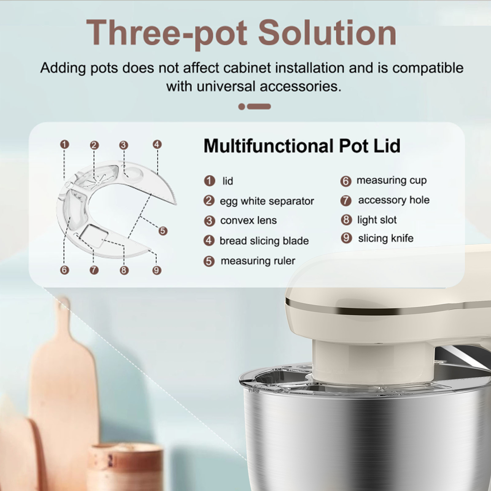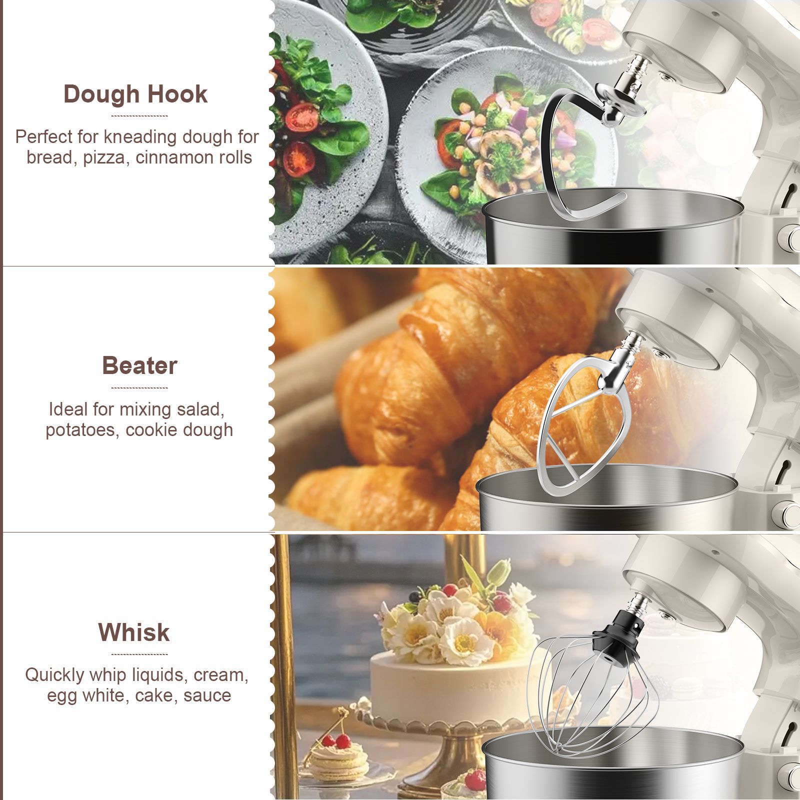 1500w厨师机5L容量美规打蛋器揉和面机料理机大搅拌机大多功能