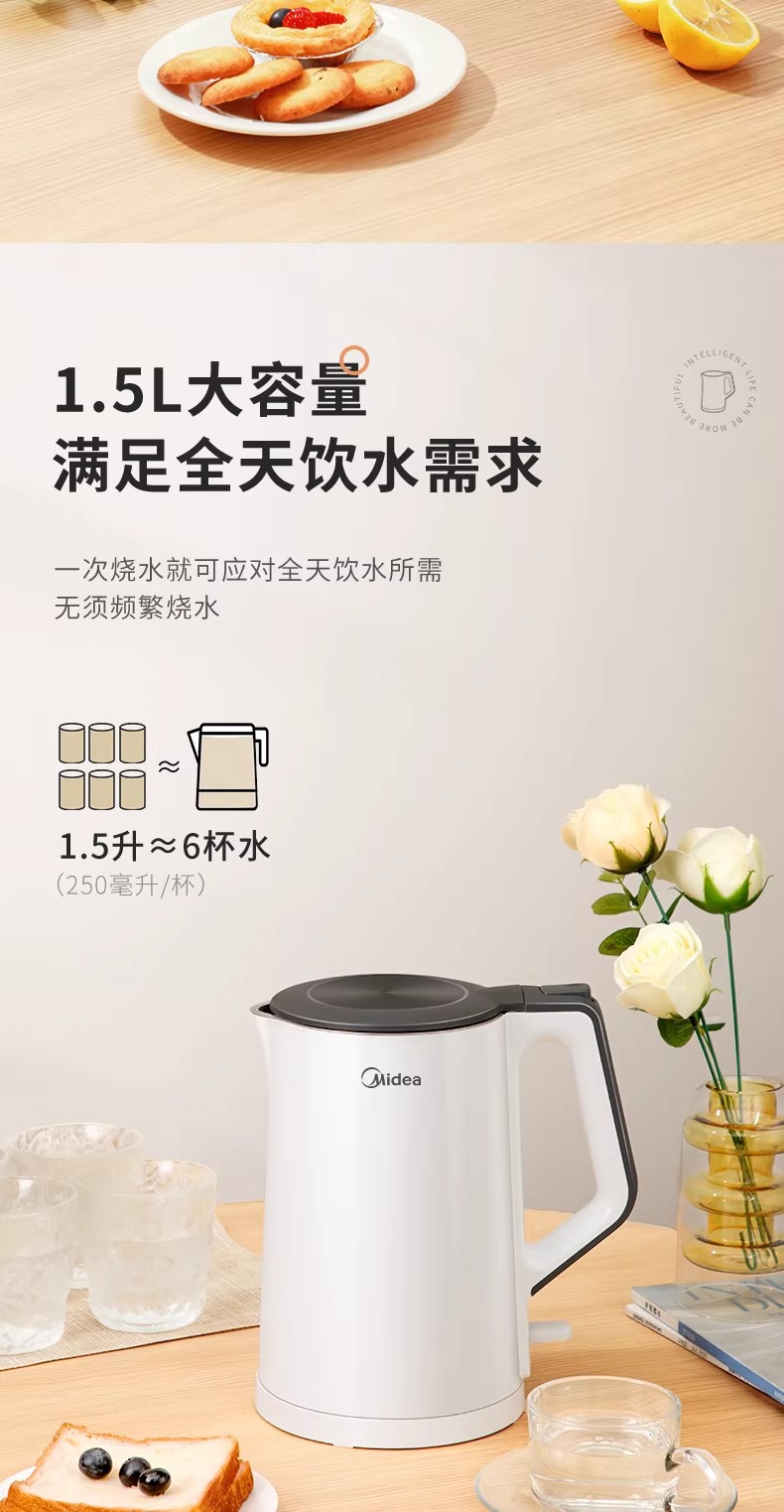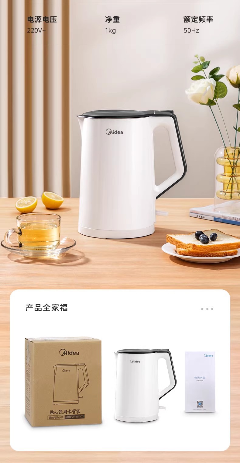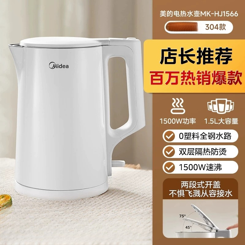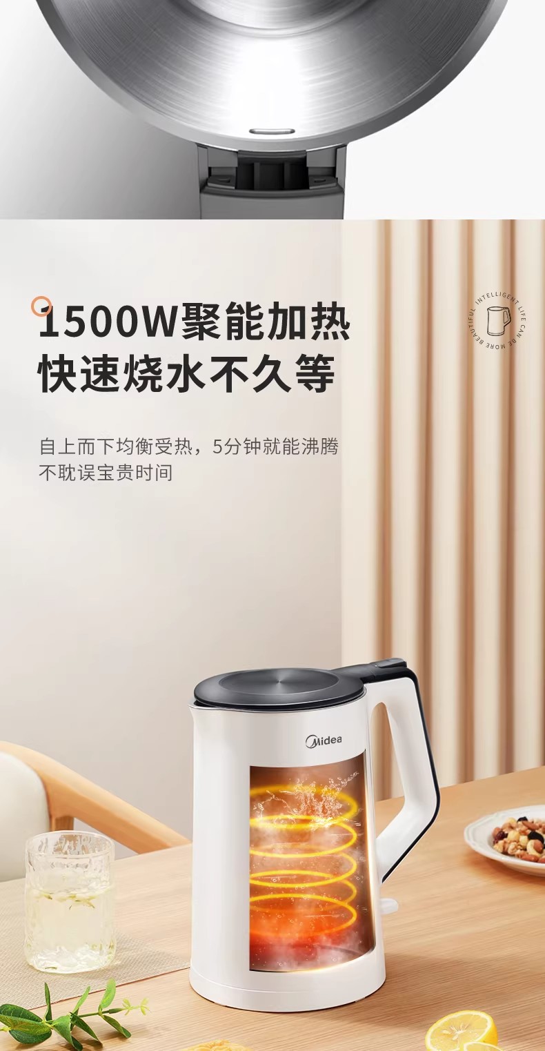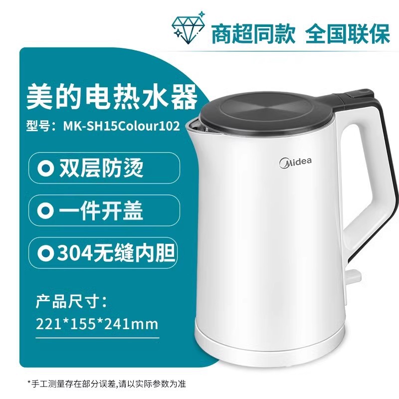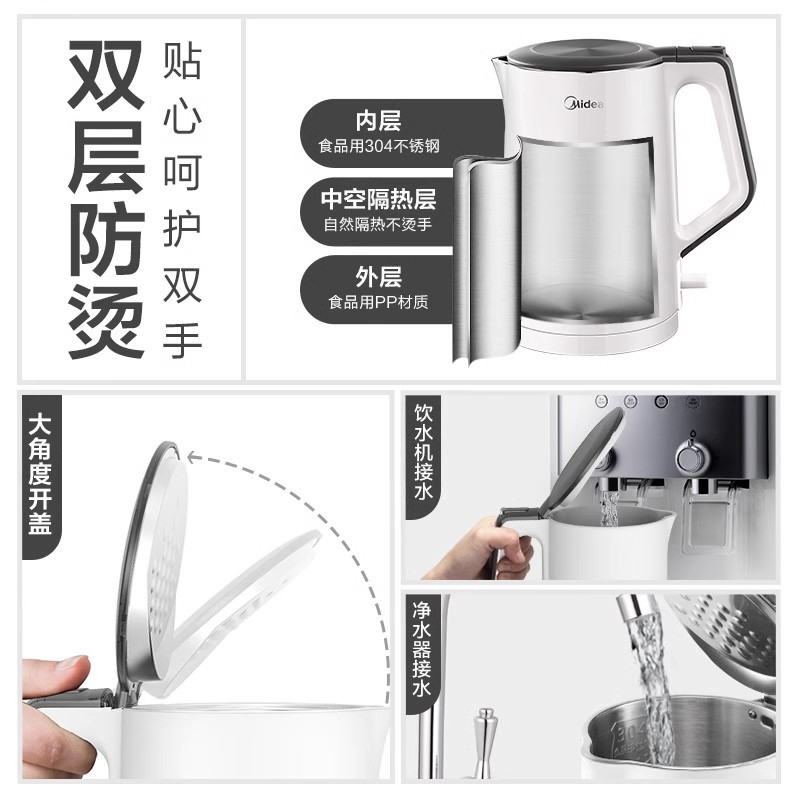 美的电热水壶家用烧水壶烧水壶全自动断电大容量双层防烫开水壶