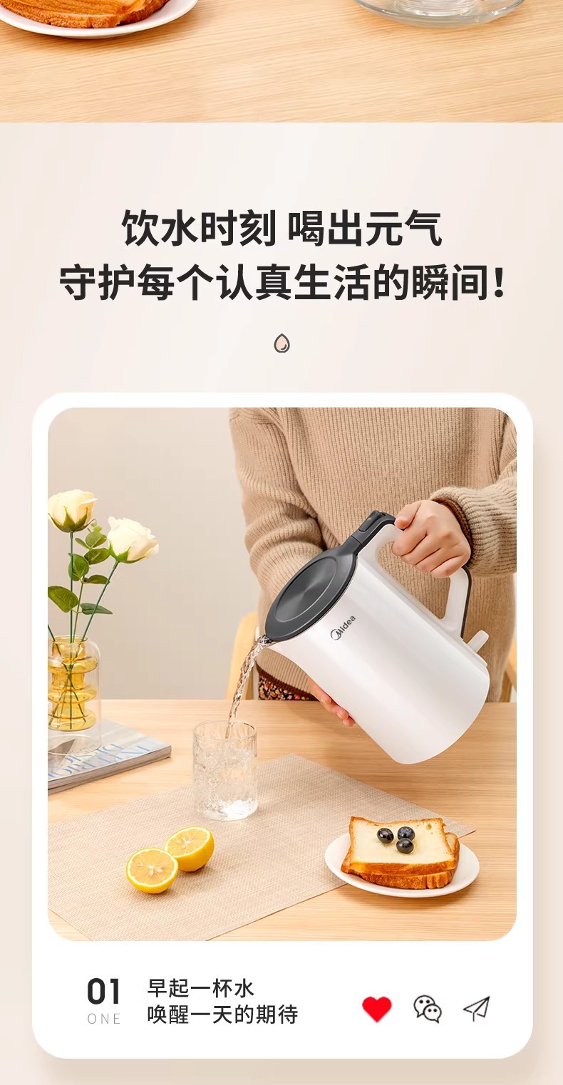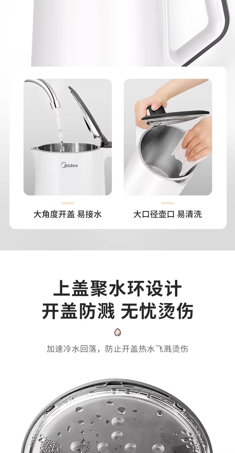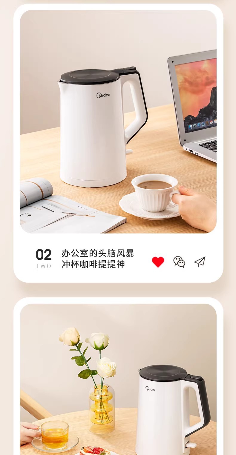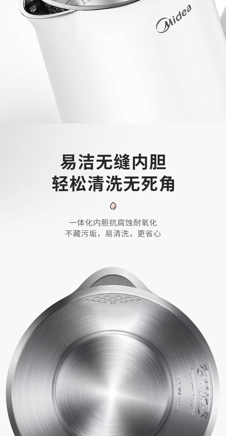 美的电热水壶家用烧水壶烧水壶全自动断电大容量双层防烫开水壶