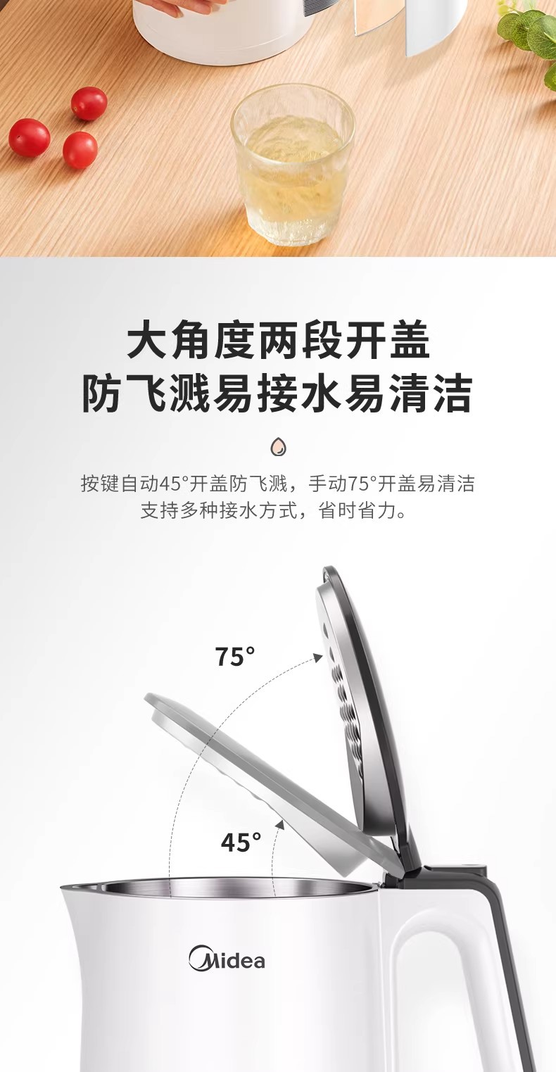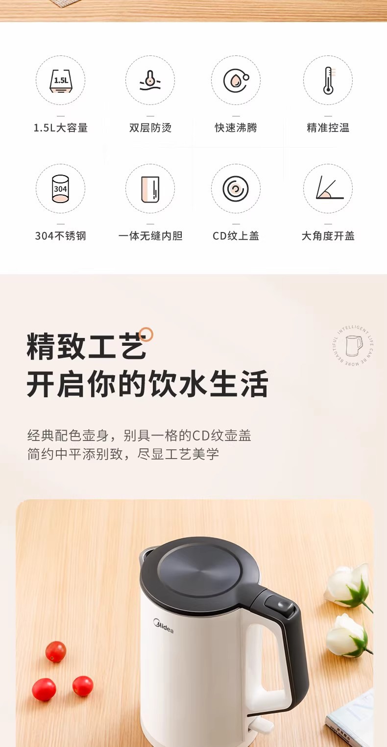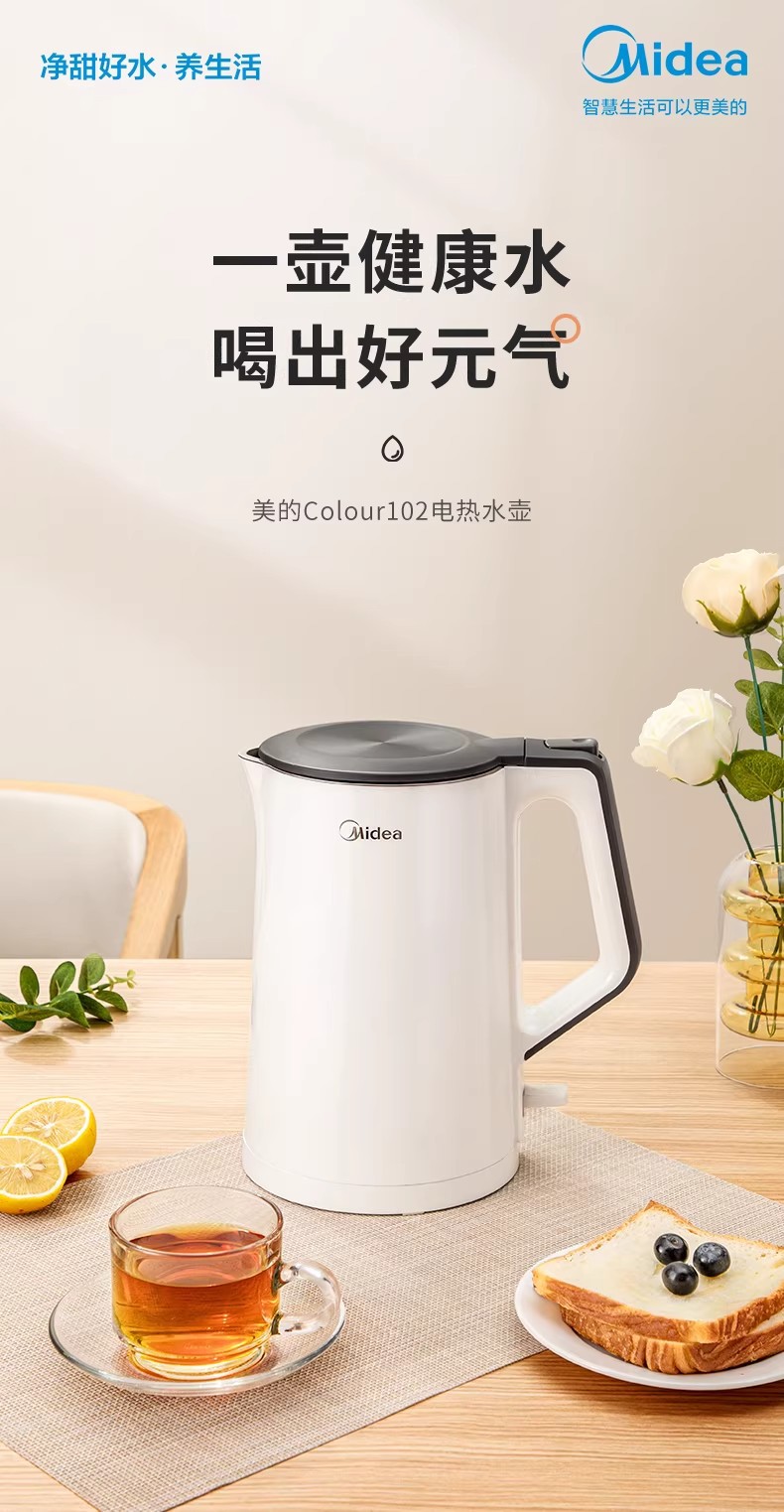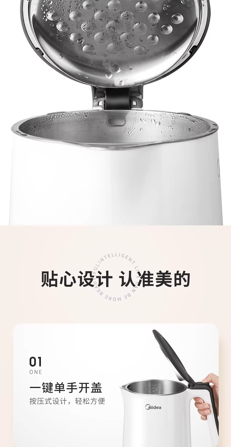 美的电热水壶家用烧水壶烧水壶全自动断电大容量双层防烫开水壶
