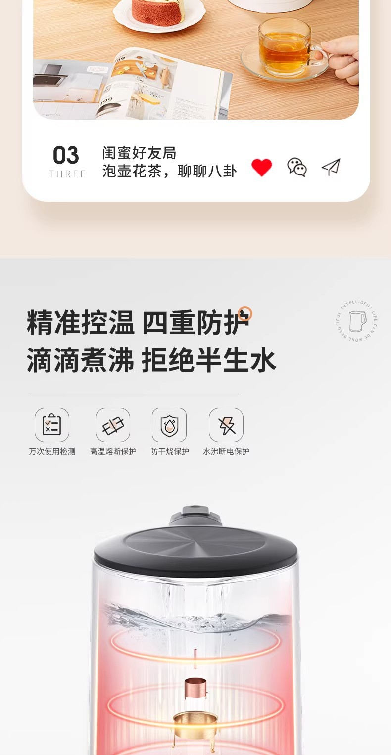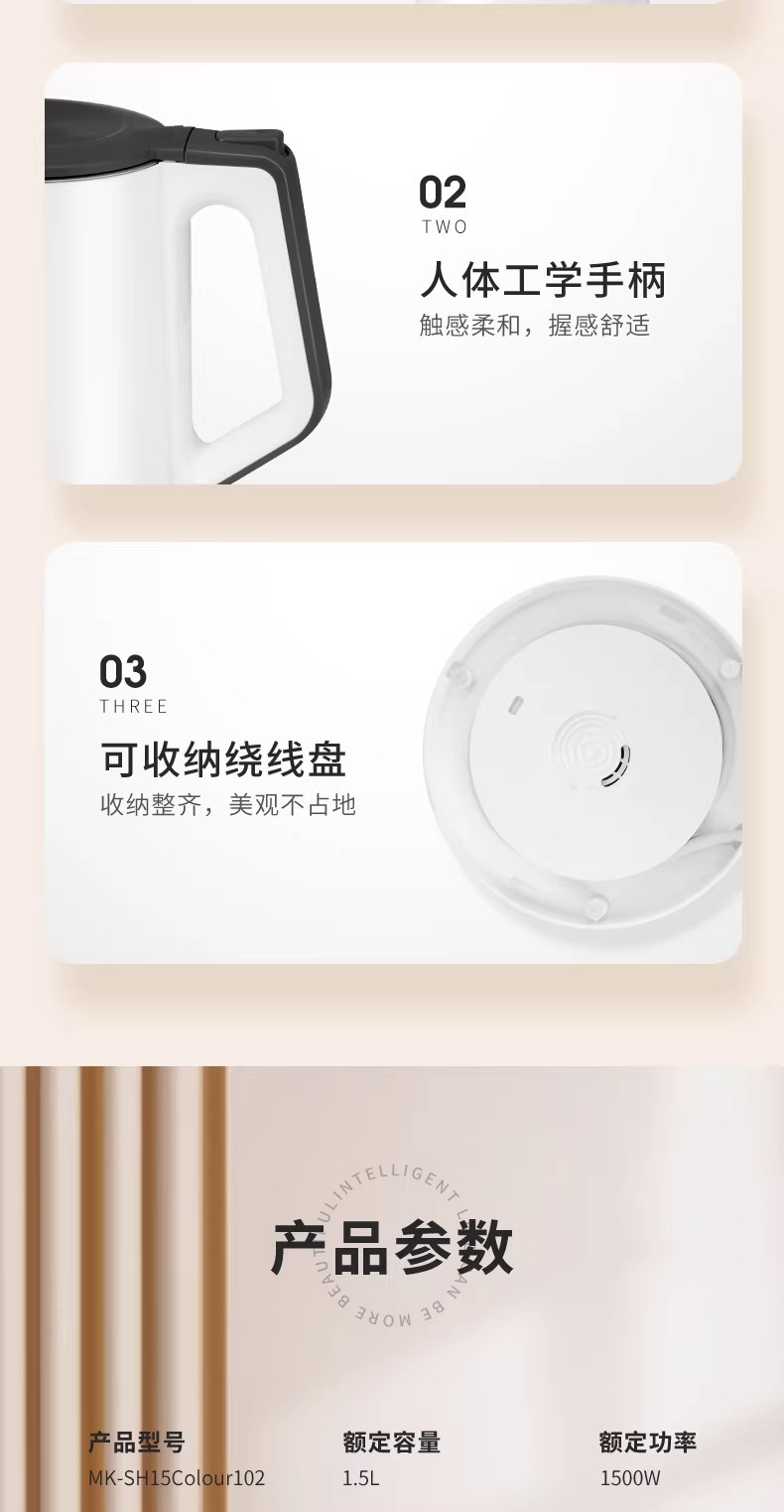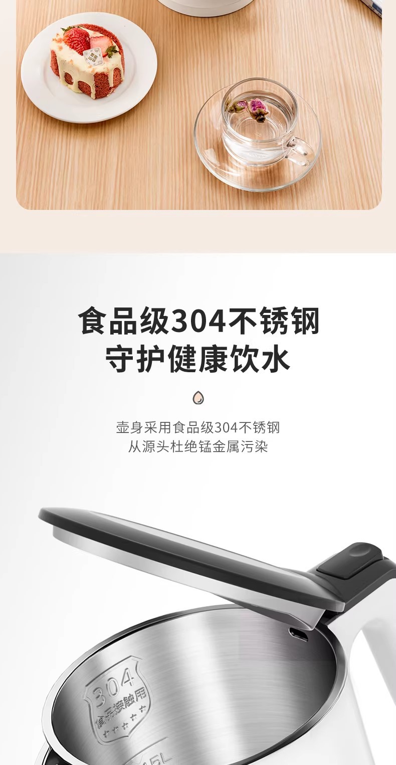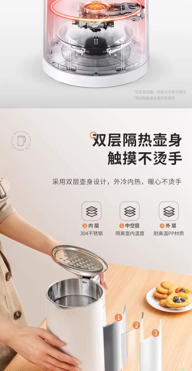 美的电热水壶家用烧水壶烧水壶全自动断电大容量双层防烫开水壶