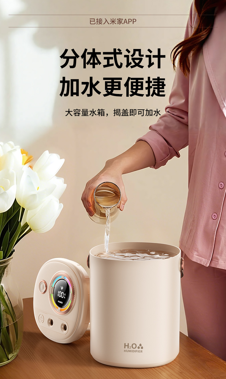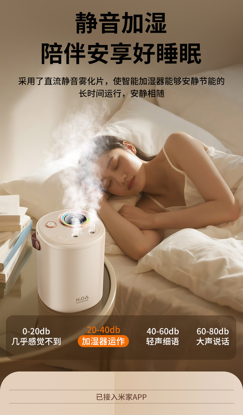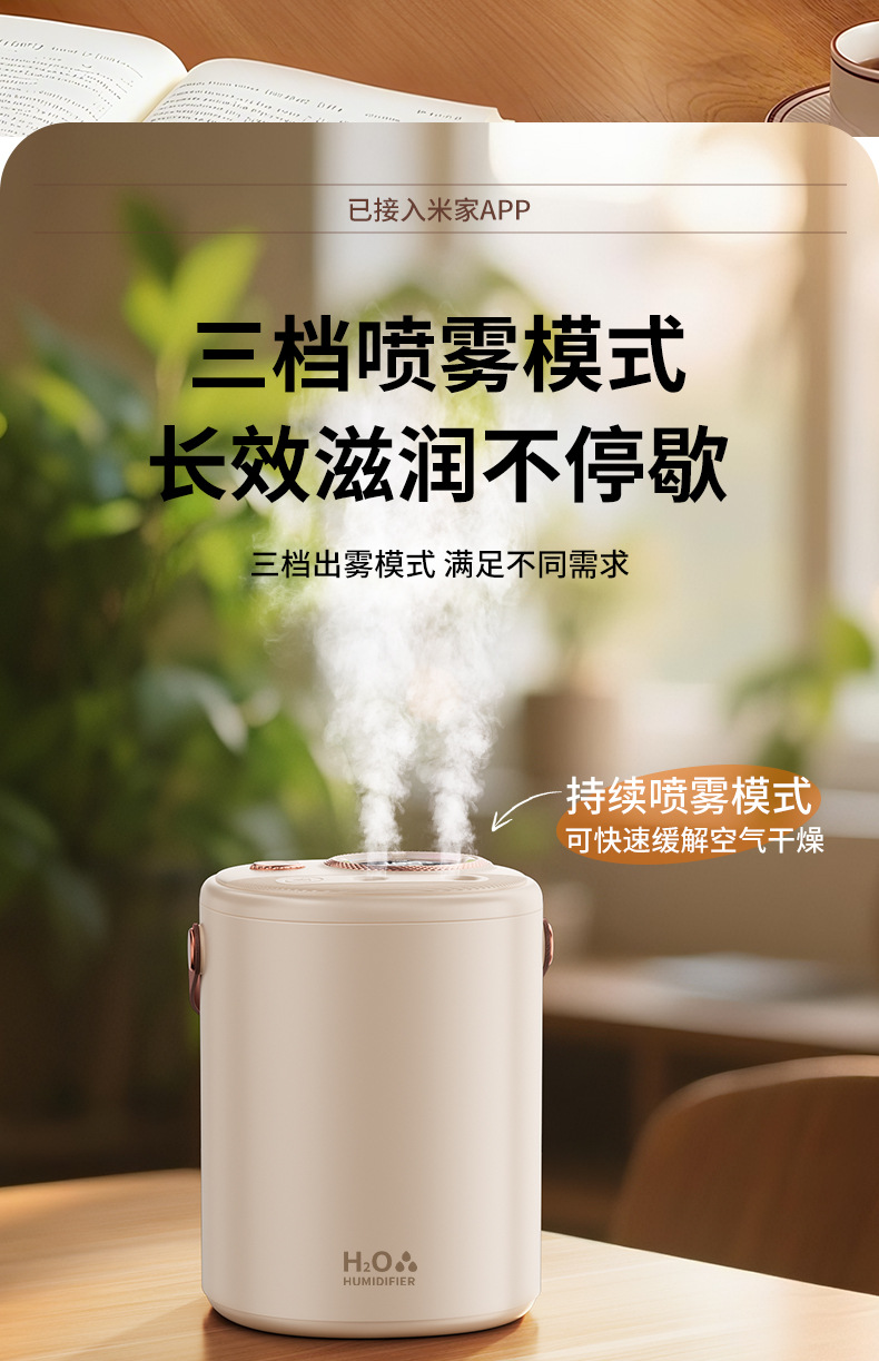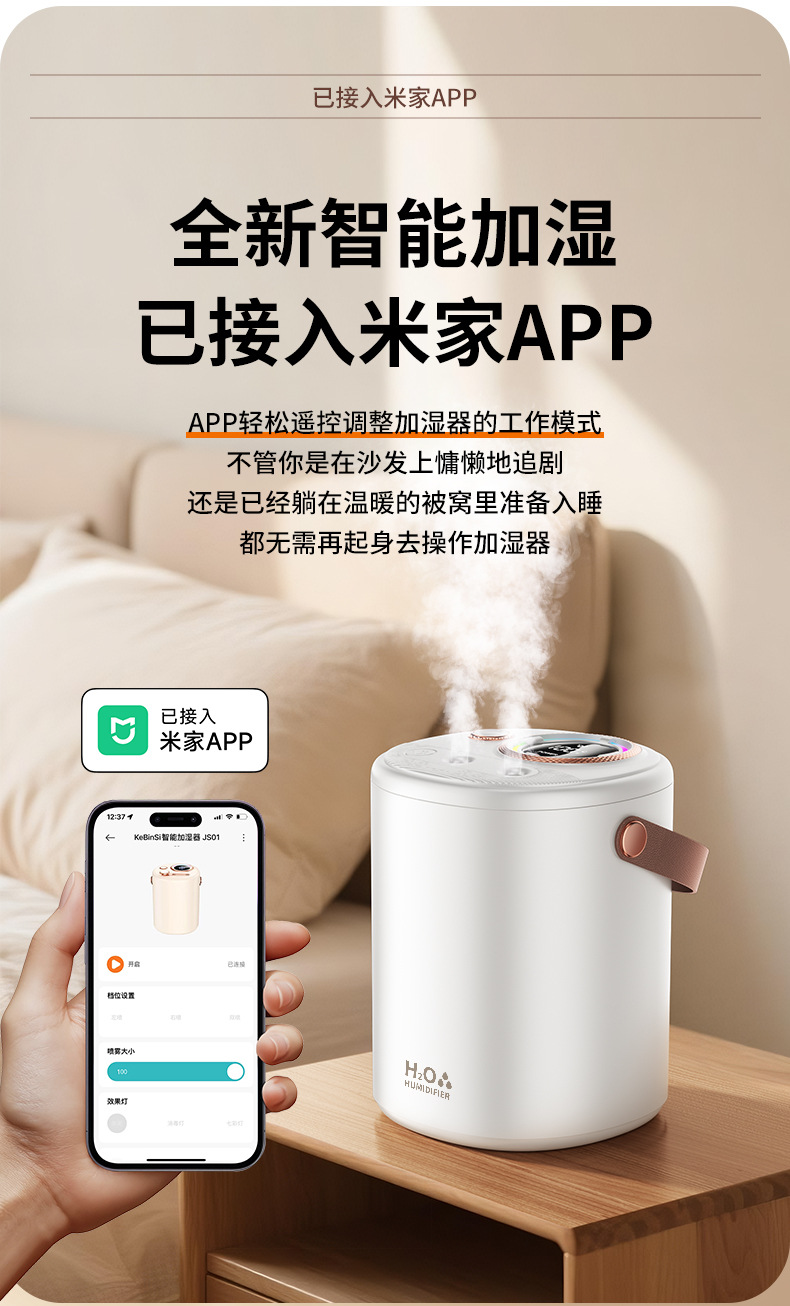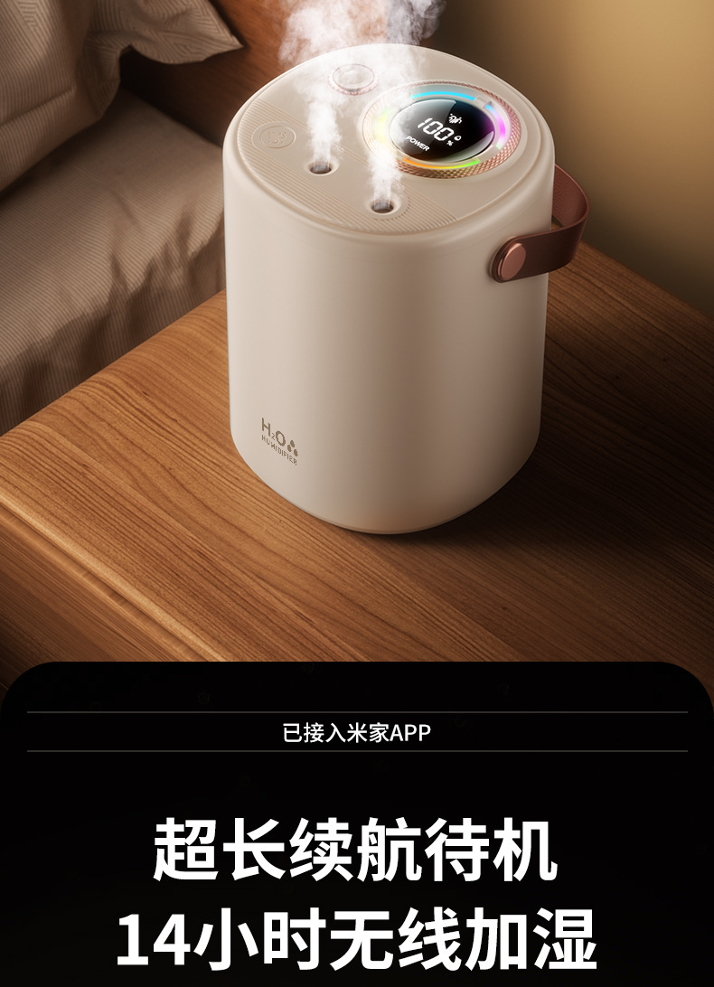 已接入米家APP智能加湿器家用超大容量USB充电静音卧室专用长续航
