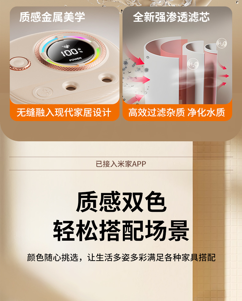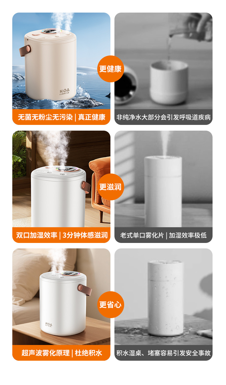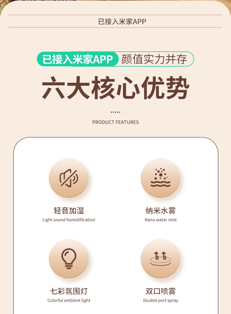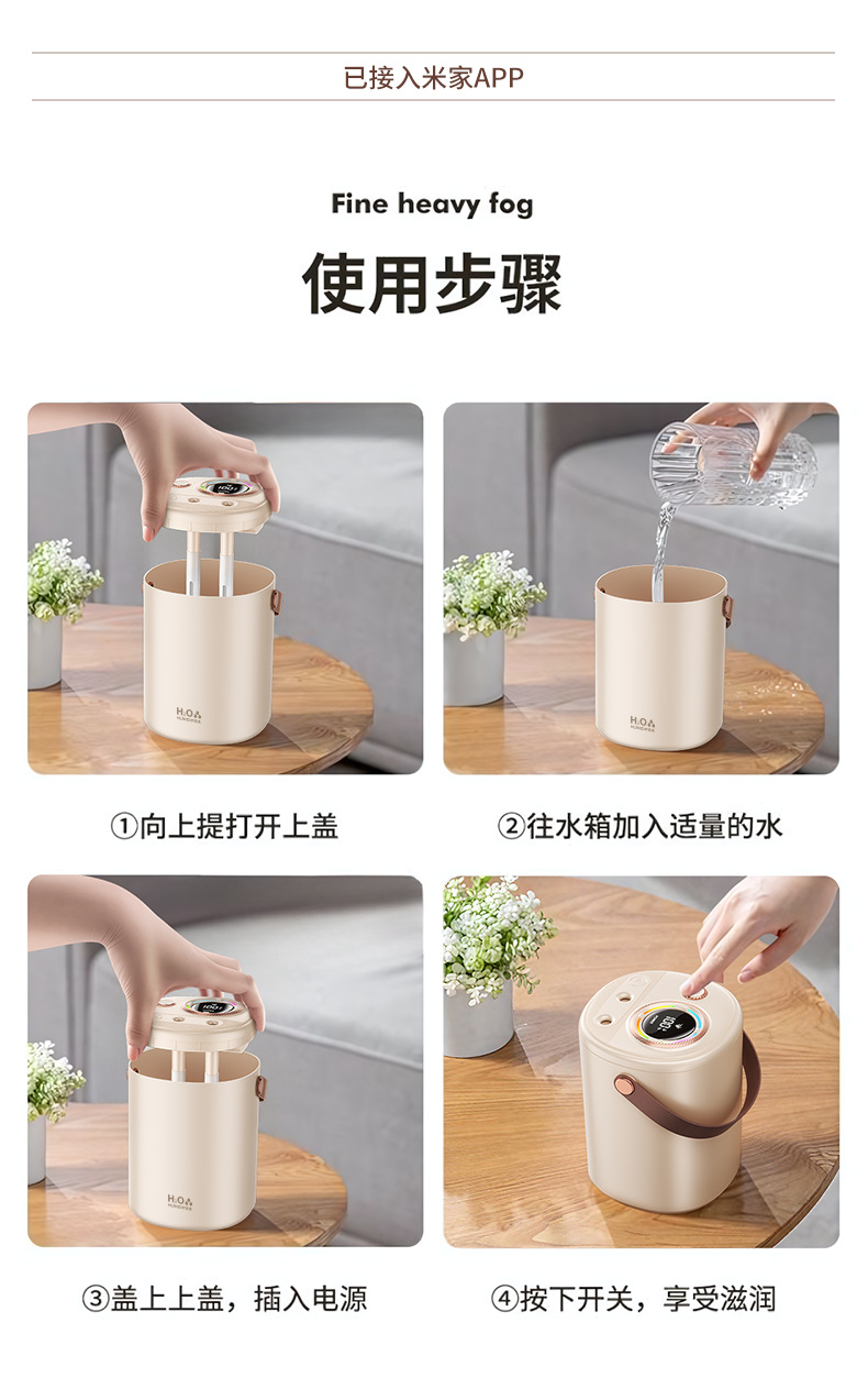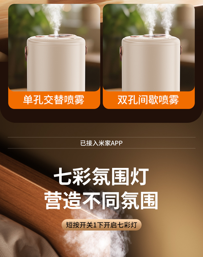 已接入米家APP智能加湿器家用超大容量USB充电静音卧室专用长续航