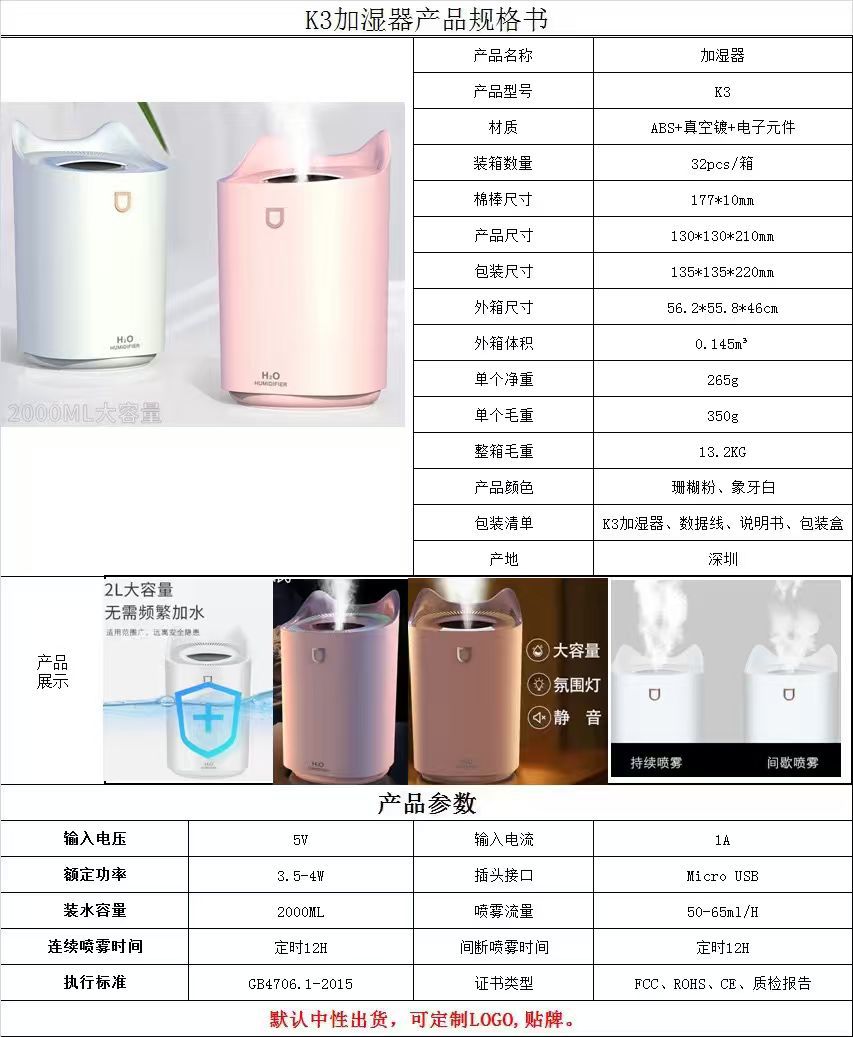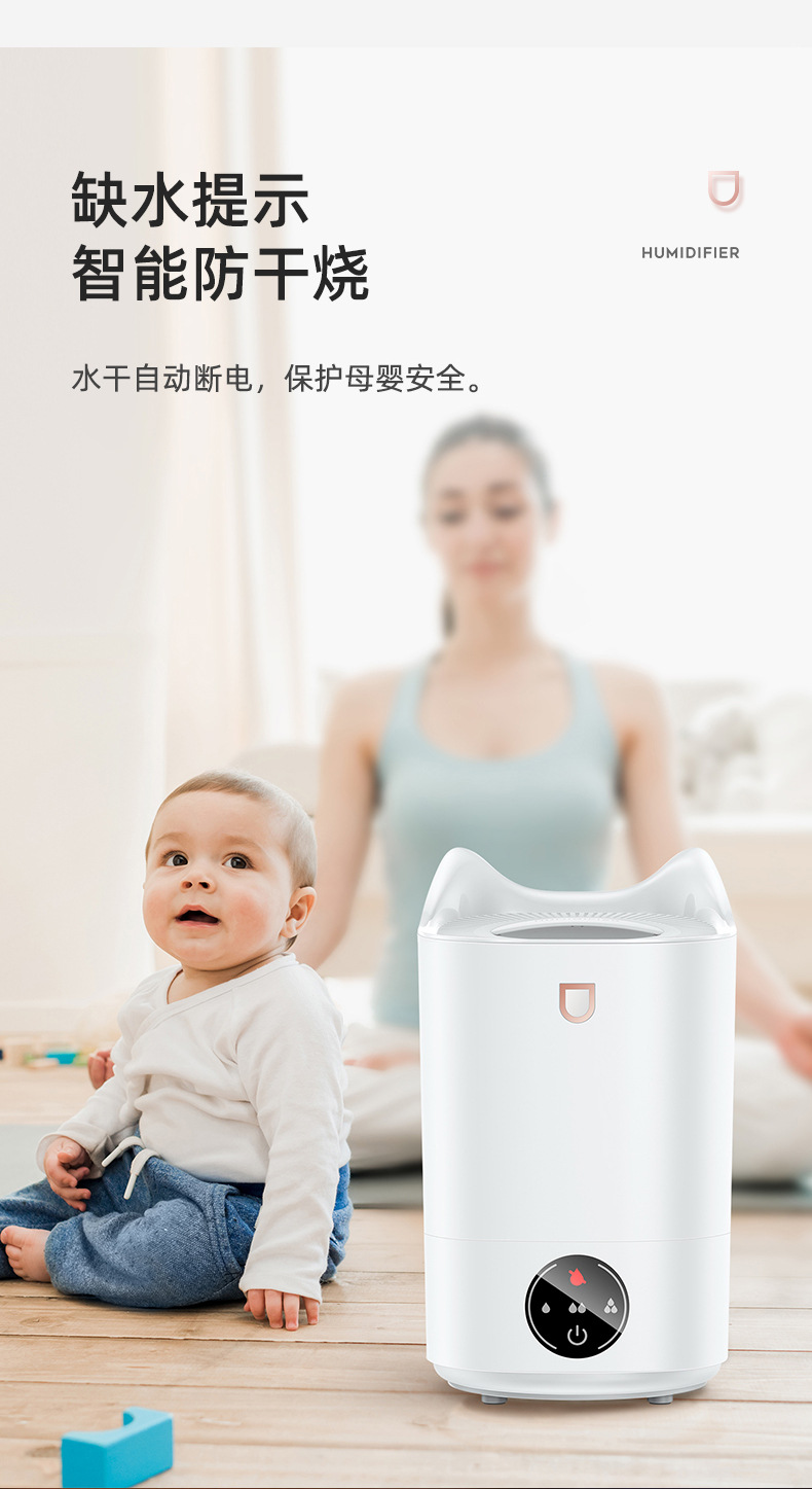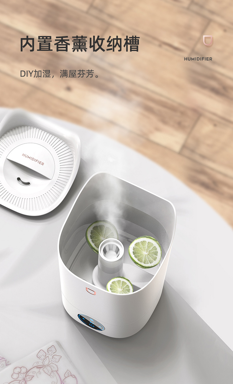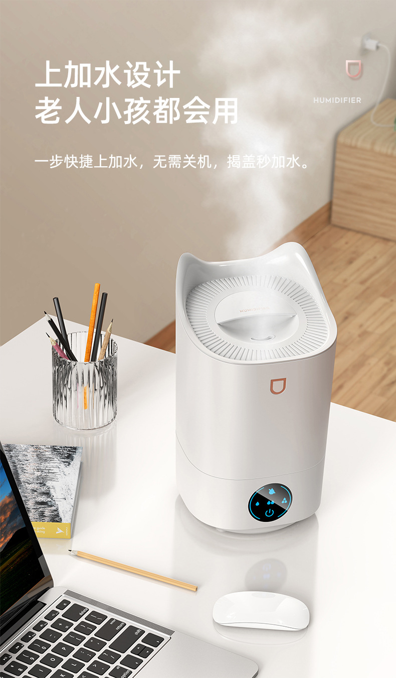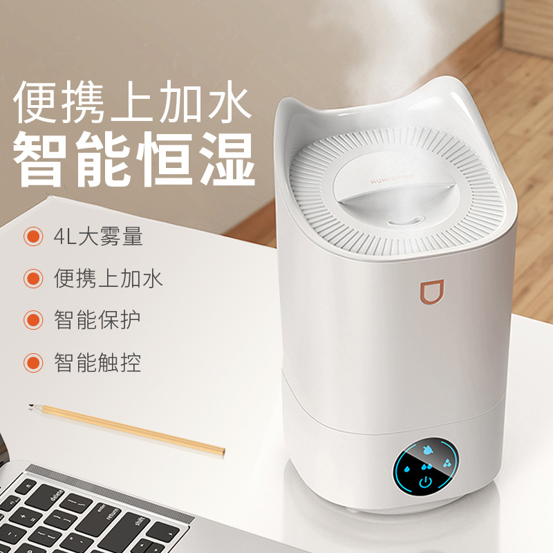 4L家用大容量大喷雾智能恒湿加湿器卧室办公室桌面LED七彩香薰机