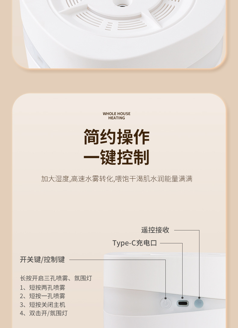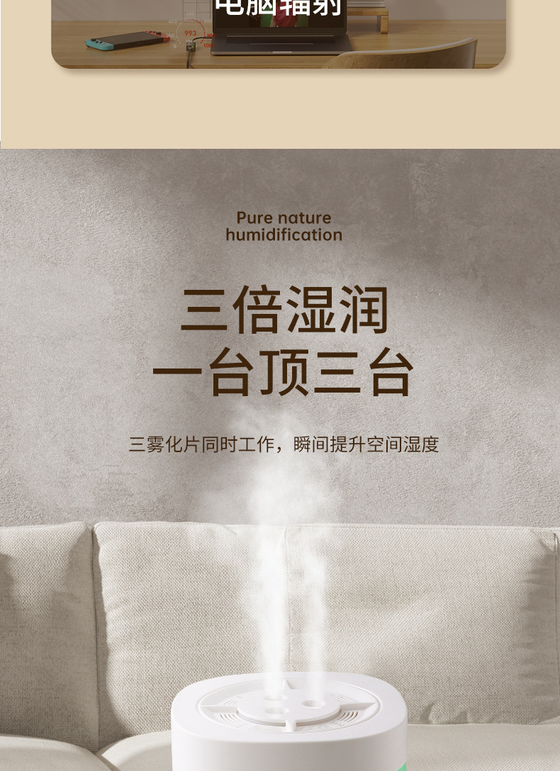 纳米加湿器家用宿舍卧室静音母婴办公室桌面大容量空气净化大雾量