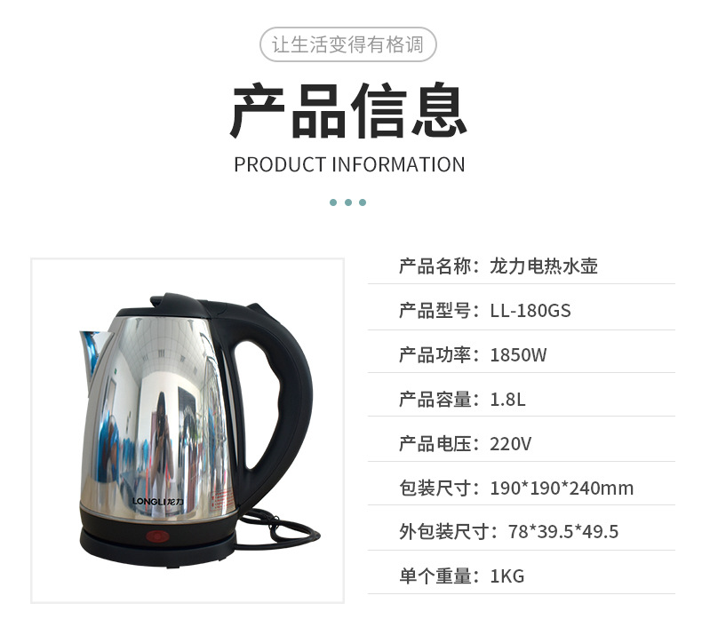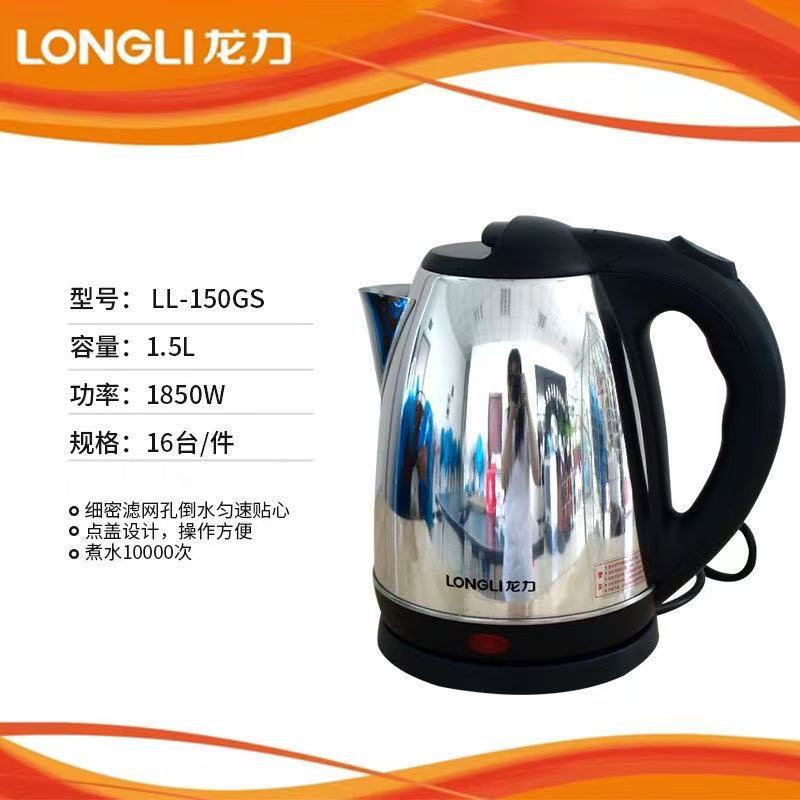 龙力1.5升电热水壶 快速壶食品级不锈钢家用电水壶酒店自动烧开水