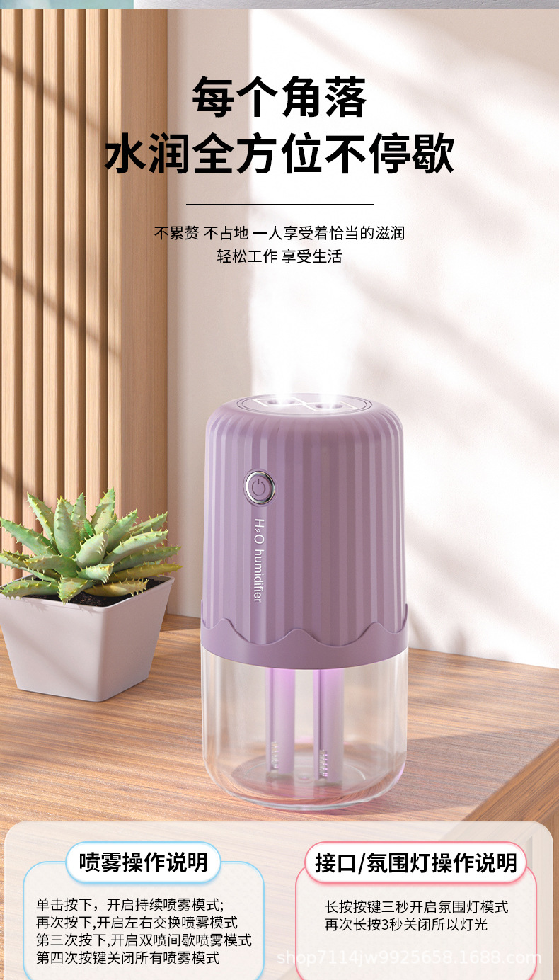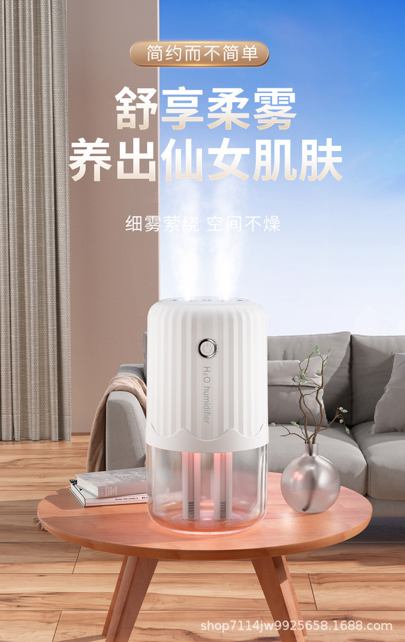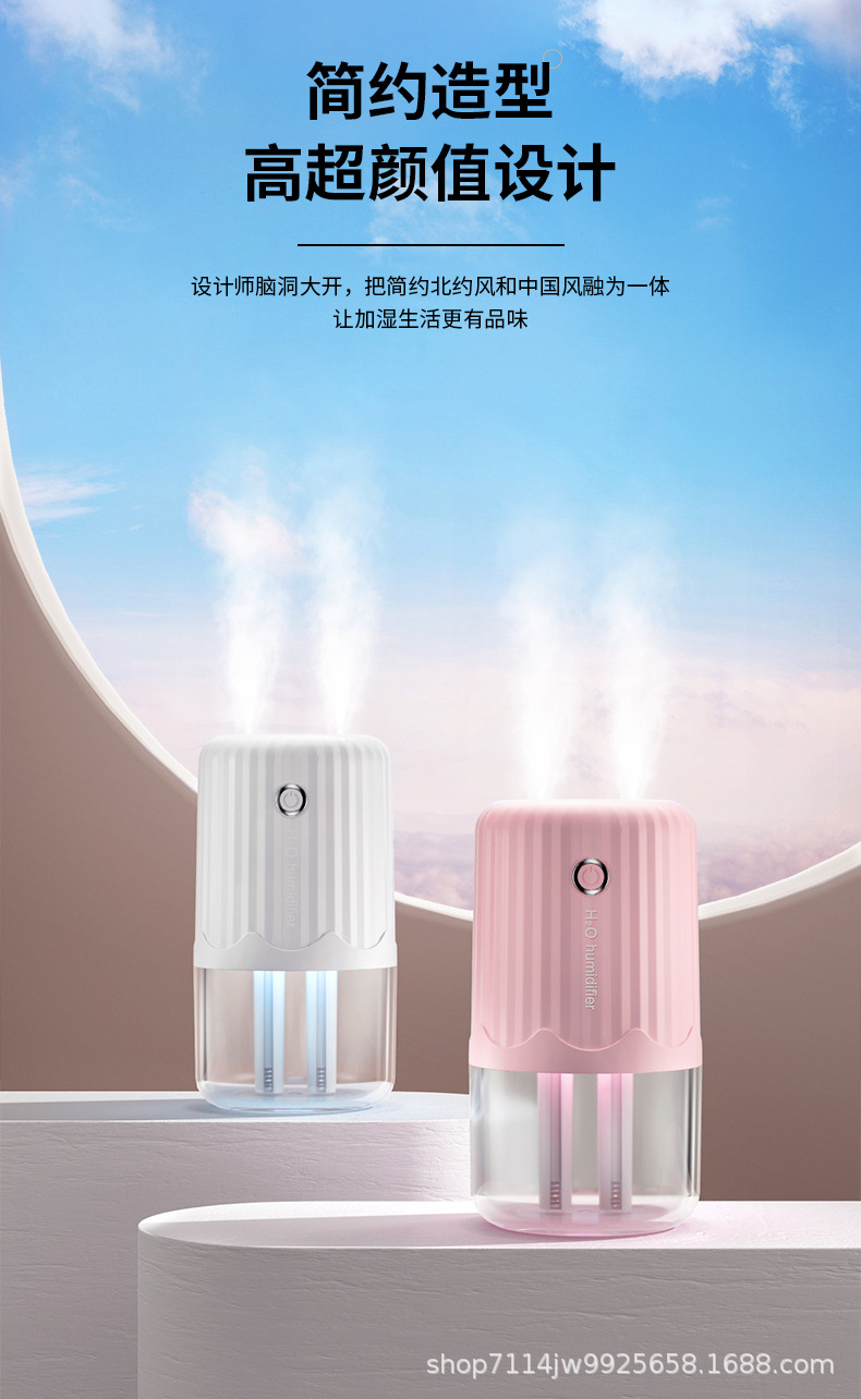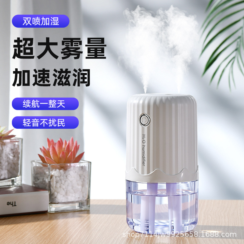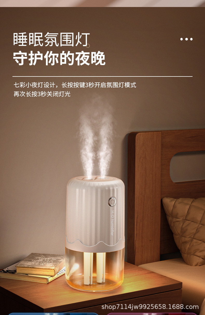 新款USB双喷雾大容量加湿器静音家用办公室车载卧室香薰氛围夜灯