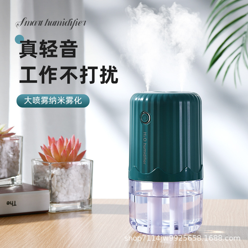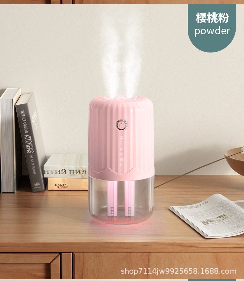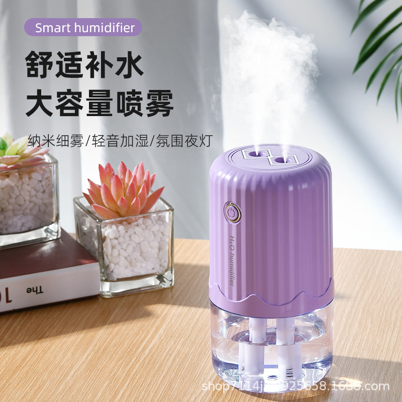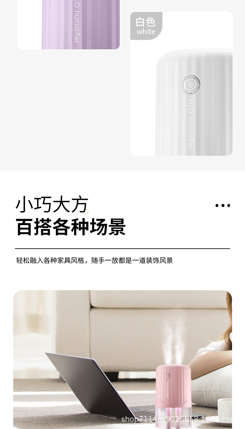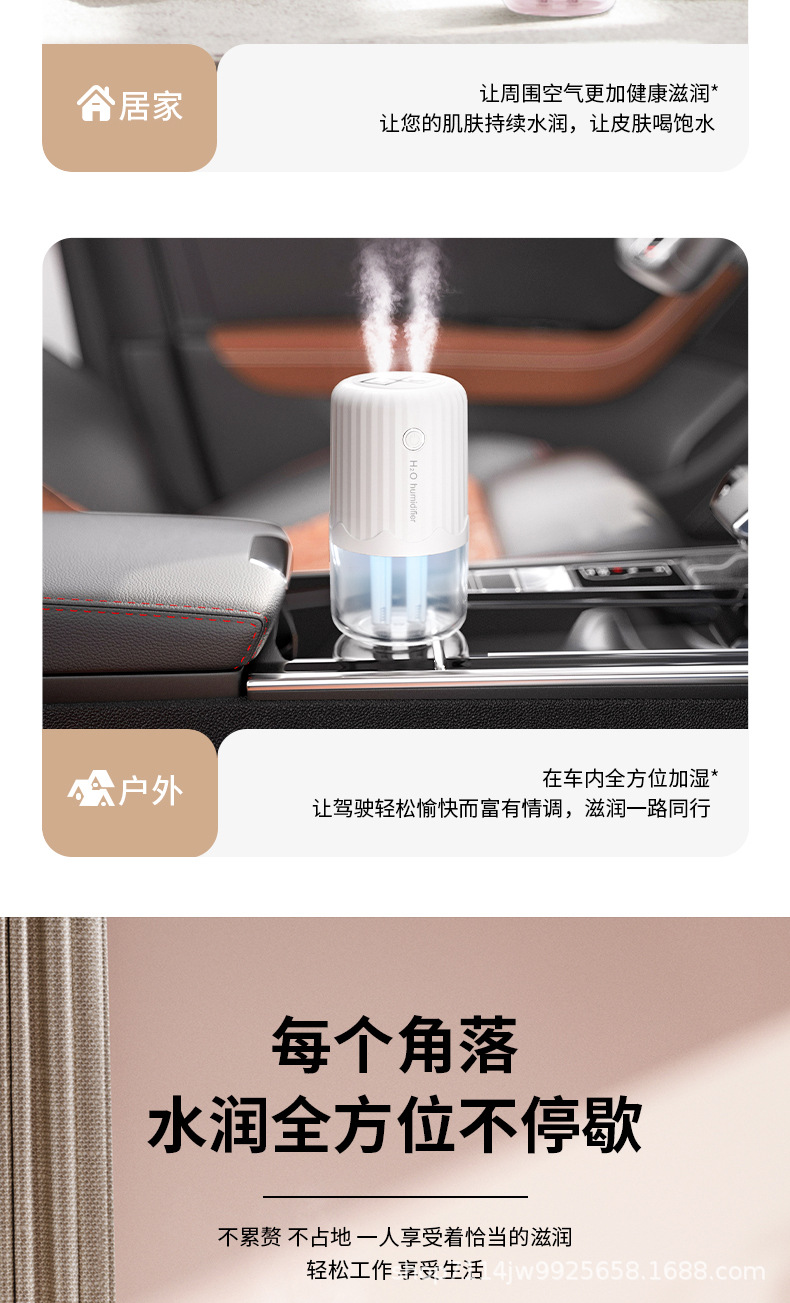 新款USB双喷雾大容量加湿器静音家用办公室车载卧室香薰氛围夜灯
