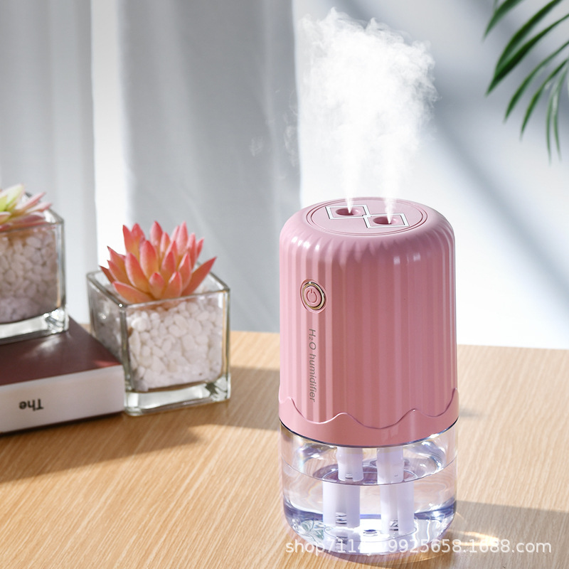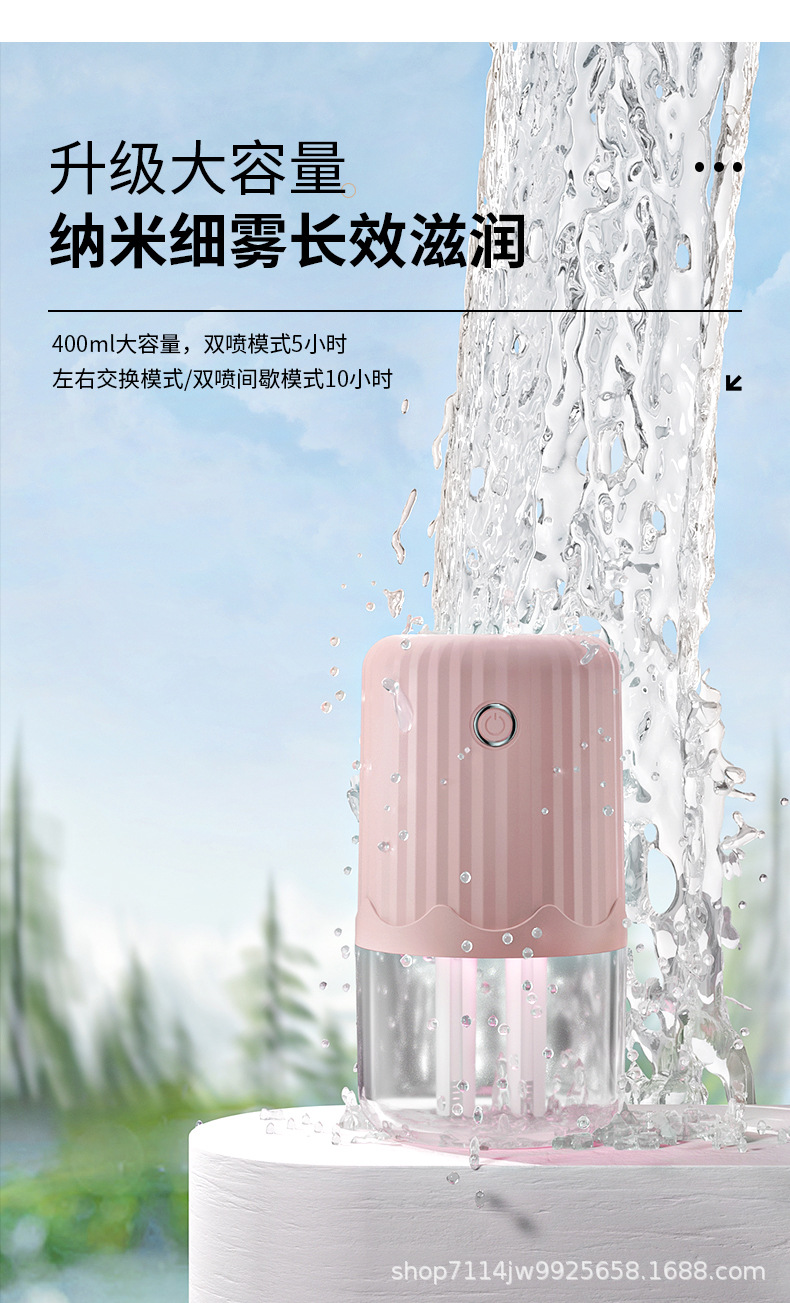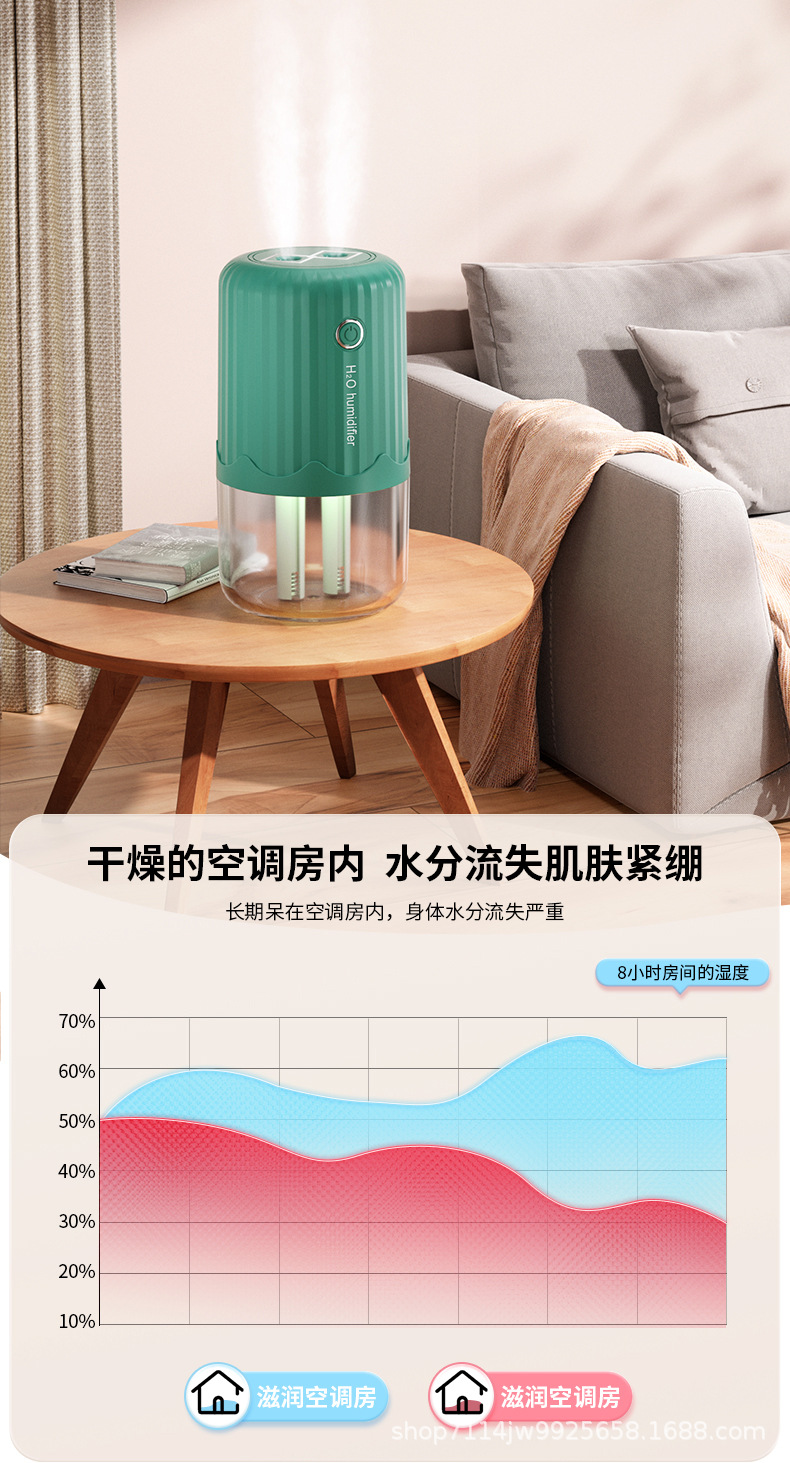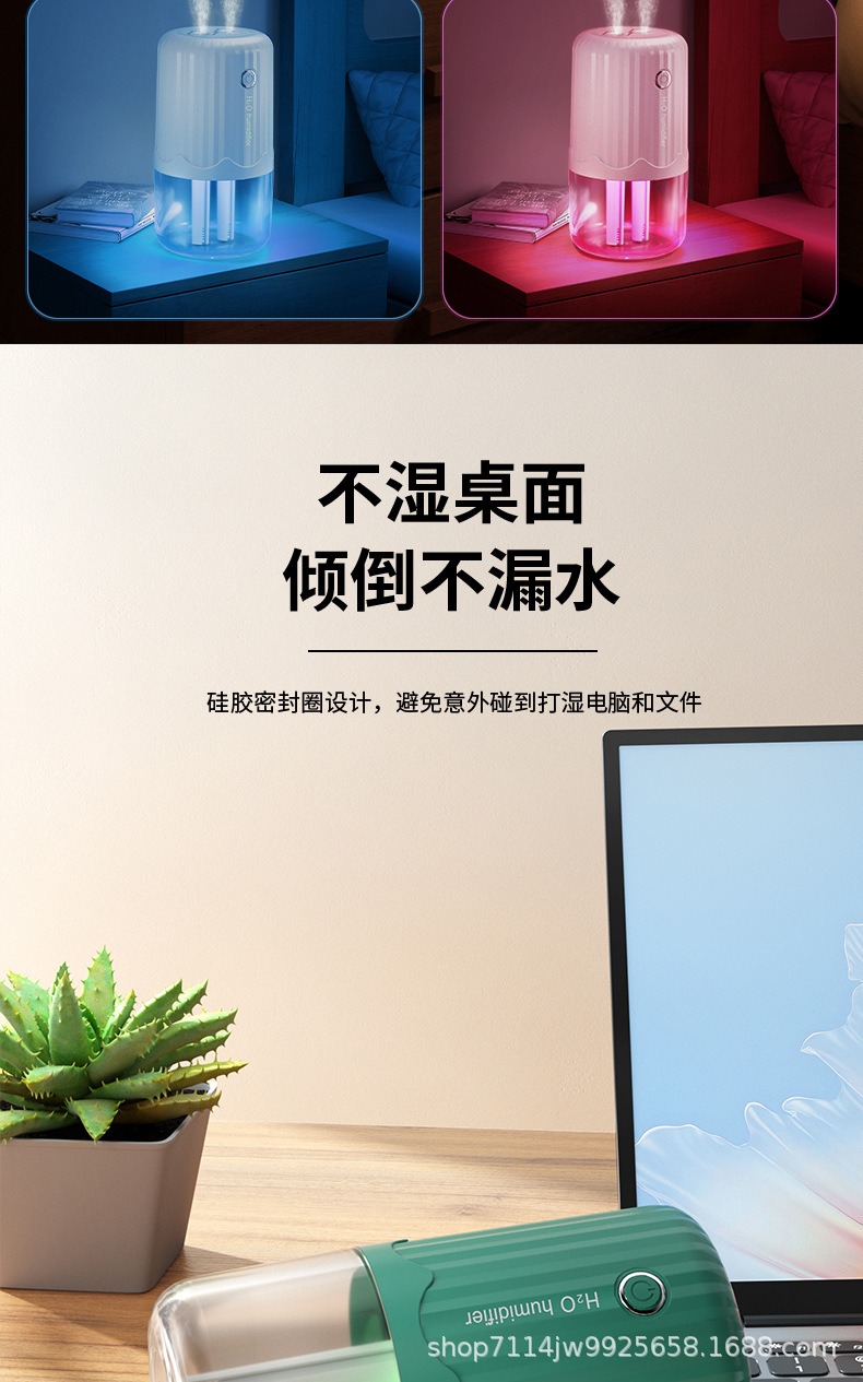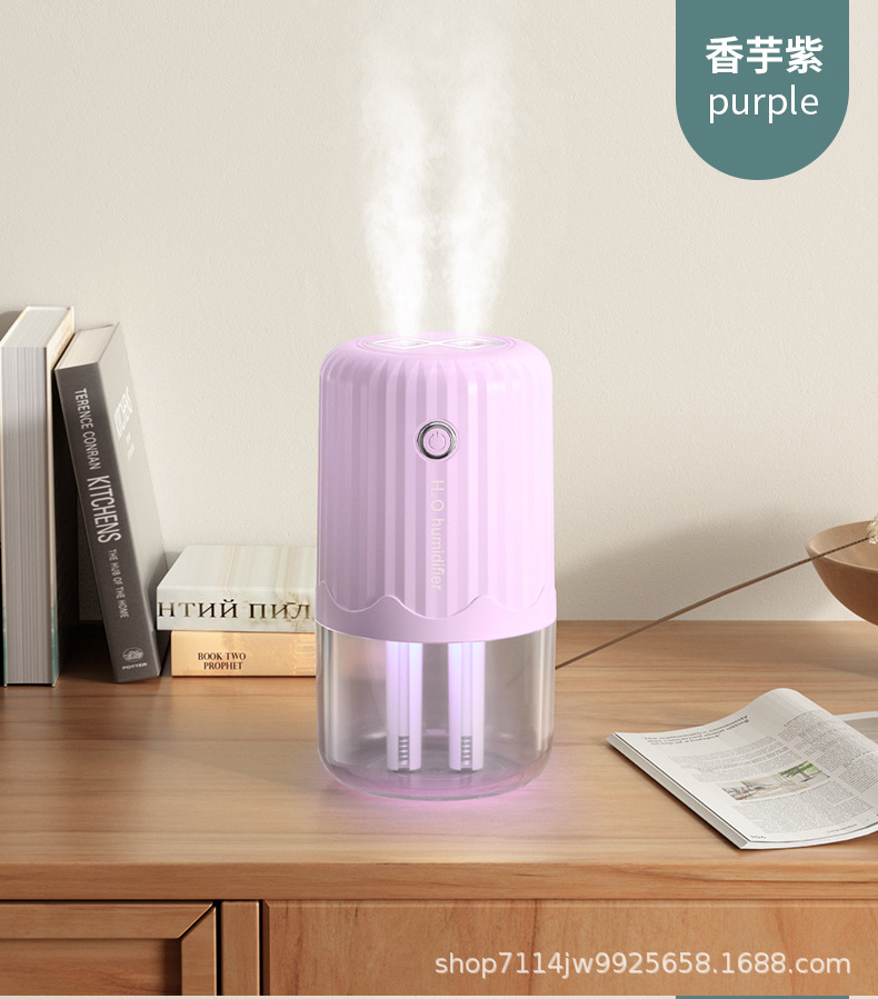 新款USB双喷雾大容量加湿器静音家用办公室车载卧室香薰氛围夜灯