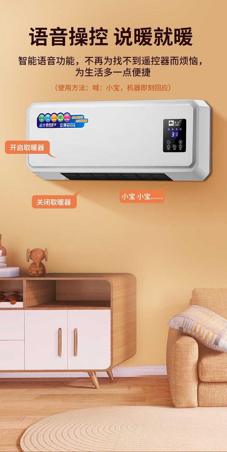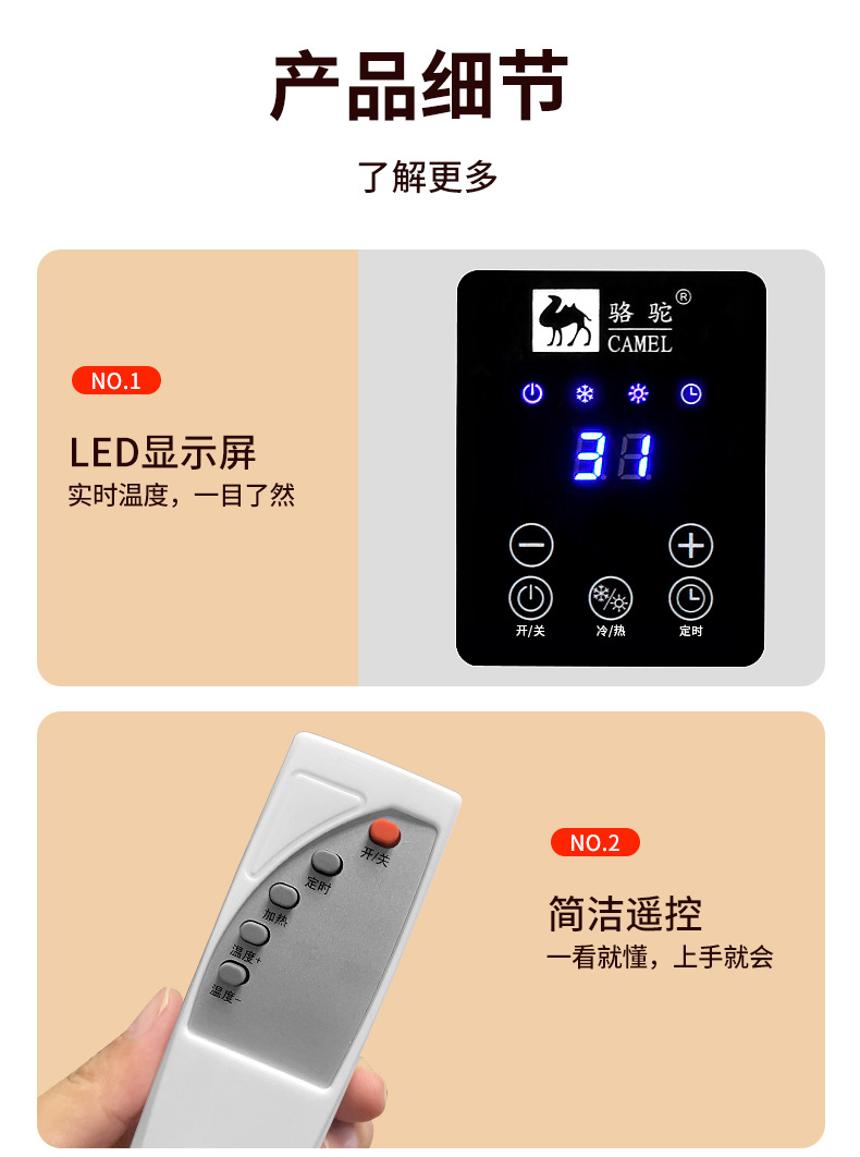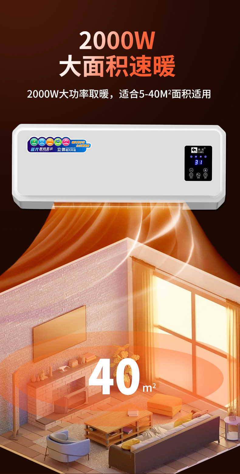 骆驼移动空调冷暖两用取暖器暖风机家用壁挂式移动小空调节能电暖