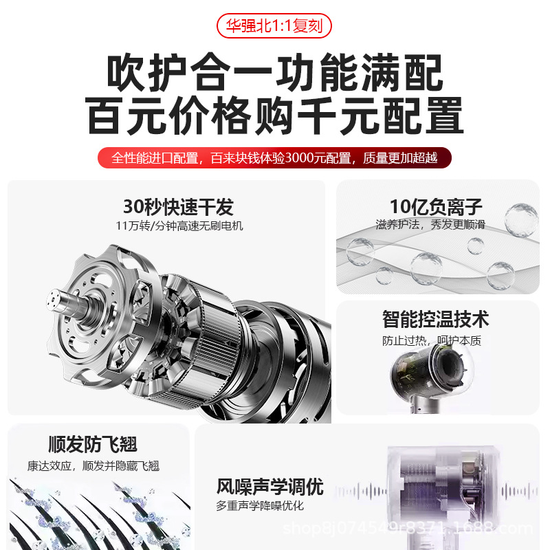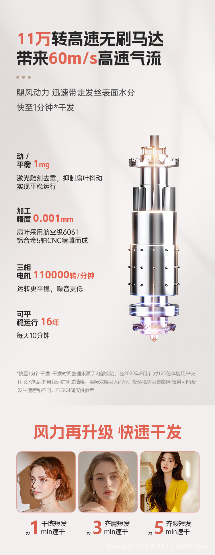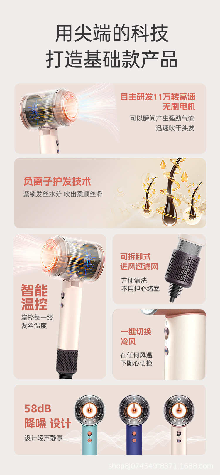 戴师傅源头厂家无叶hd16吹风机负离子家用电吹风筒理发店发廊专用