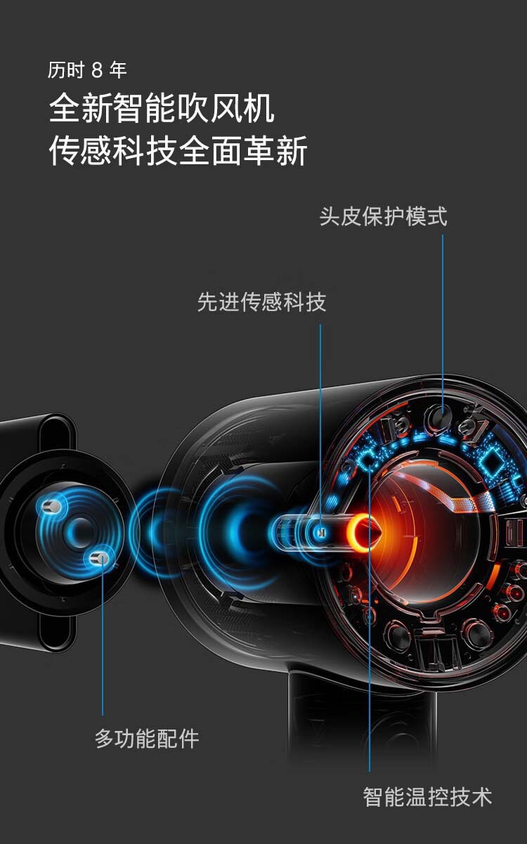 新款跨境HD16吹风机某森同款高速电吹风负离子发家用风筒湛蓝紫有