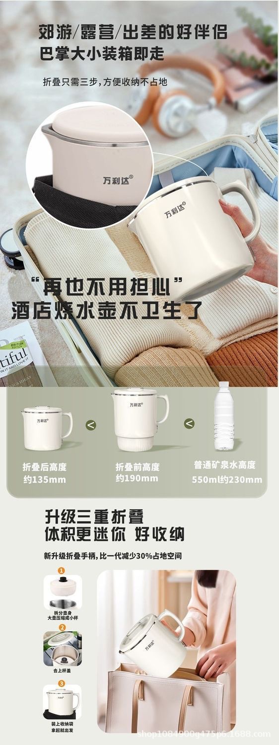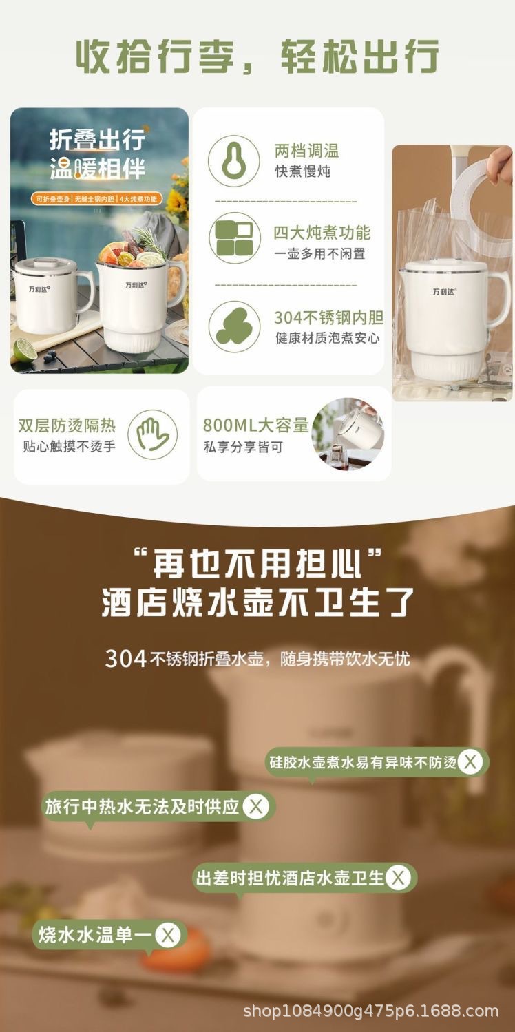 316出差旅行多功能折叠式0.8L烧水壶酒店家用袖珍烧水壶迷你外贸