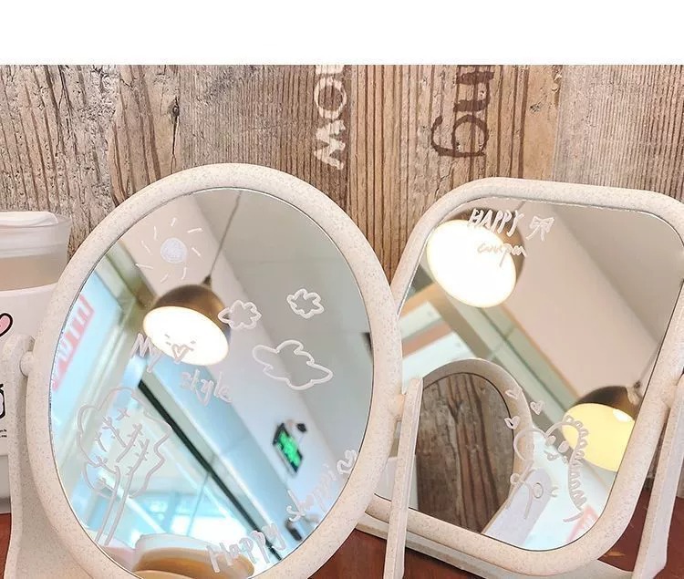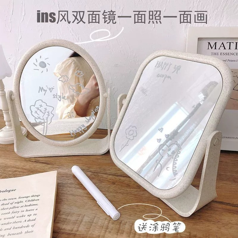 镜子ins风网红镜子台式化妆镜旋转桌面家用宿舍大号学生梳妆镜欧