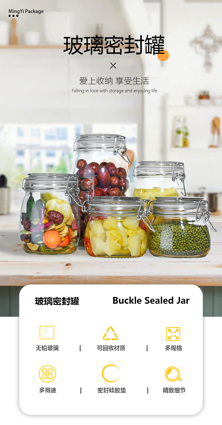 透明玻璃密封罐家用酵素罐果酱瓶腌菜泡菜坛子食品级卡扣罐储物罐