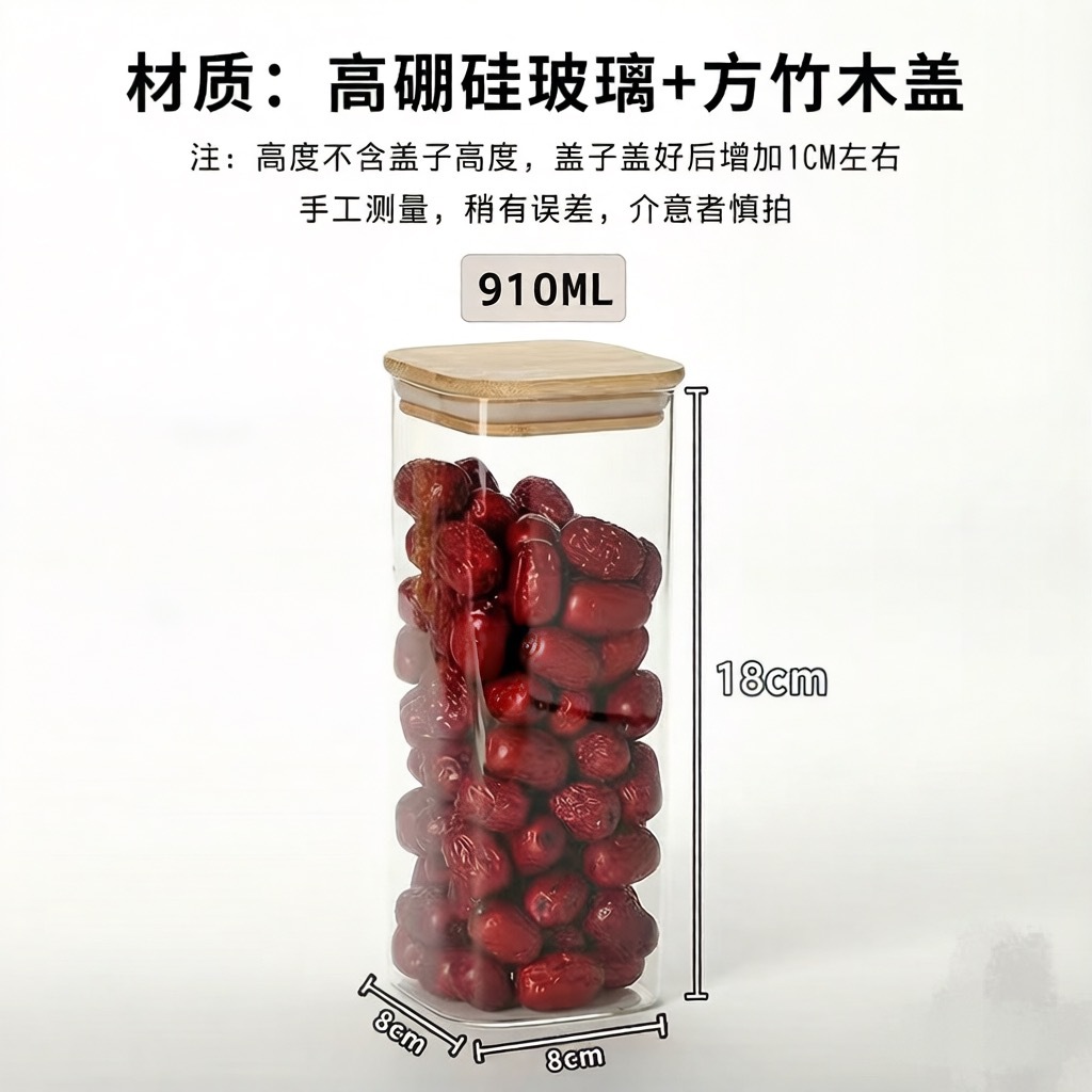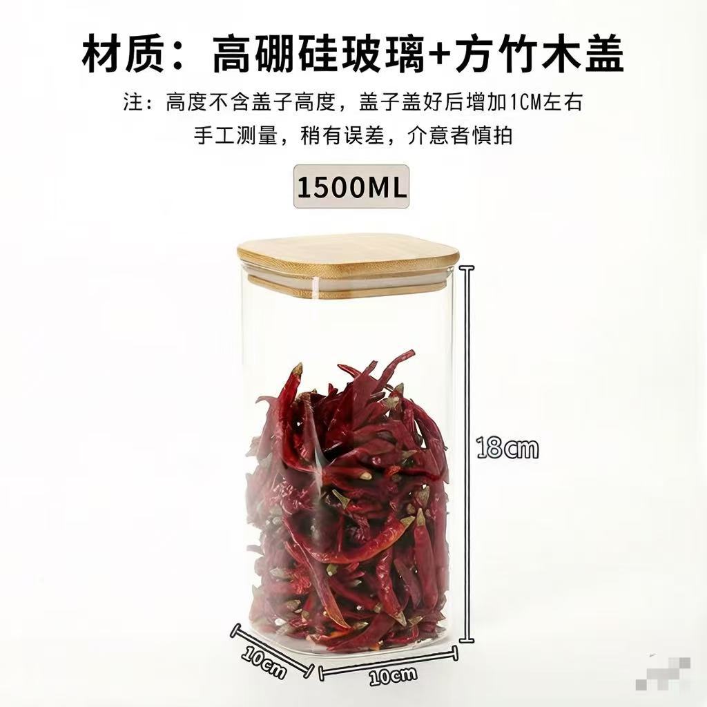 玻璃密封罐方形竹木盖子收纳罐家居储物神器房屋收纳摆件文创展示