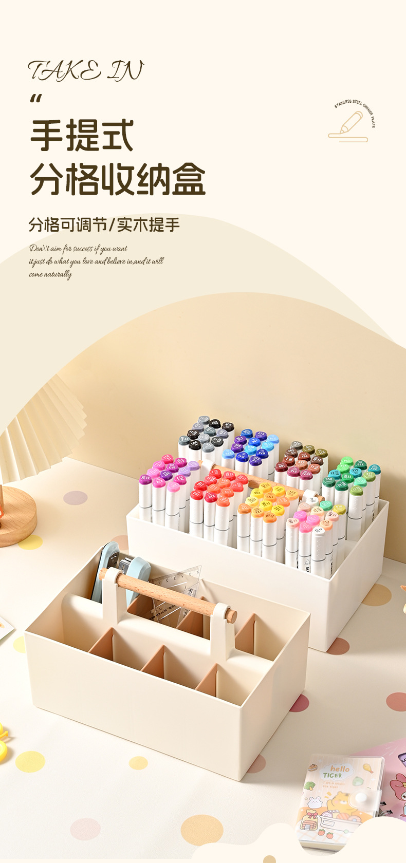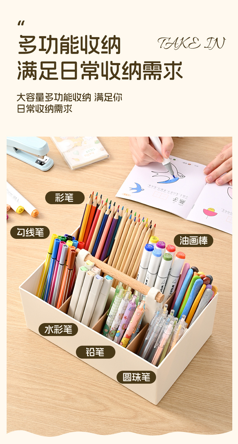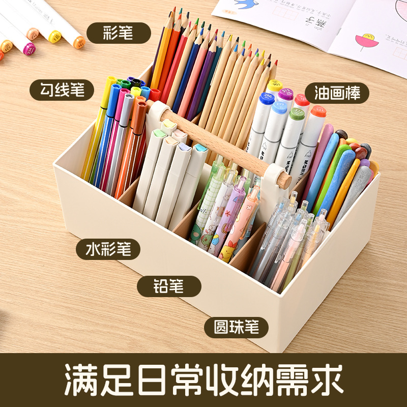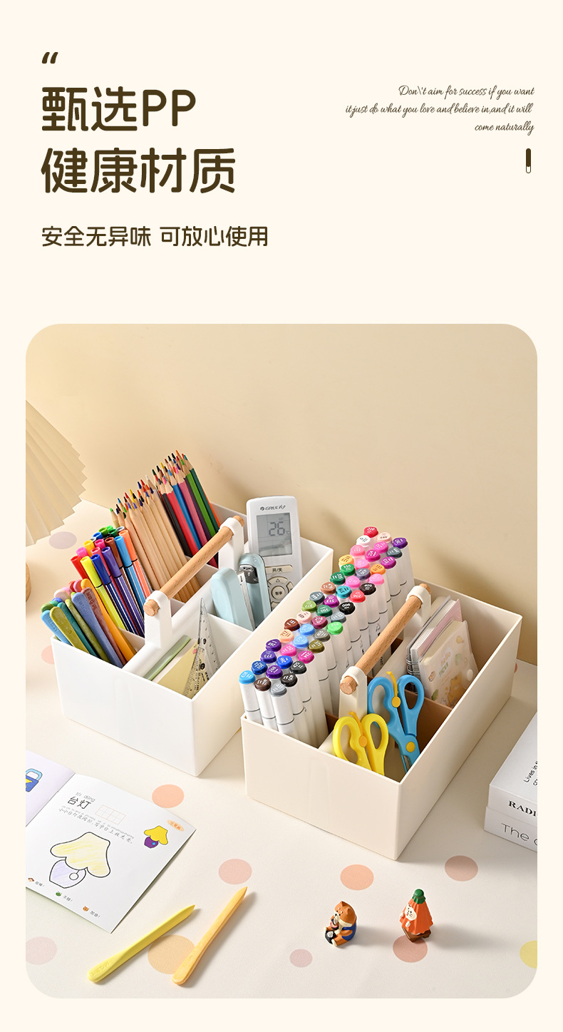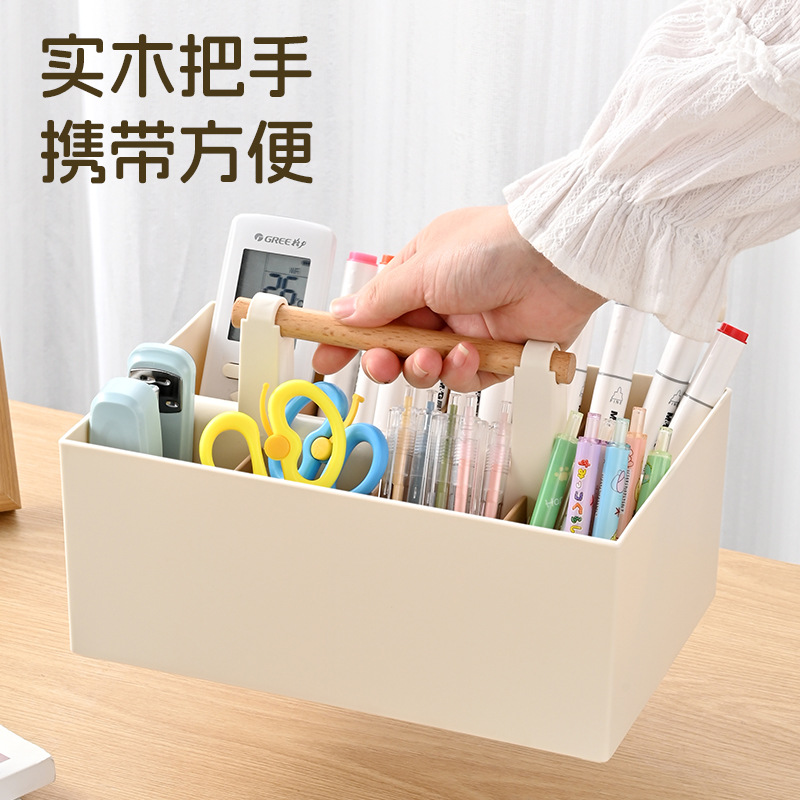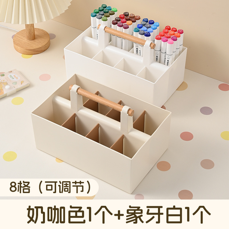 手提马克笔收纳盒多格办公桌文具收纳盒多功能书桌笔筒分格收纳盒