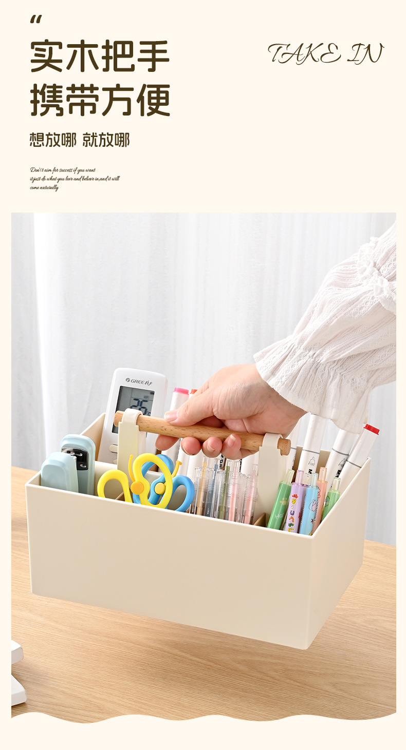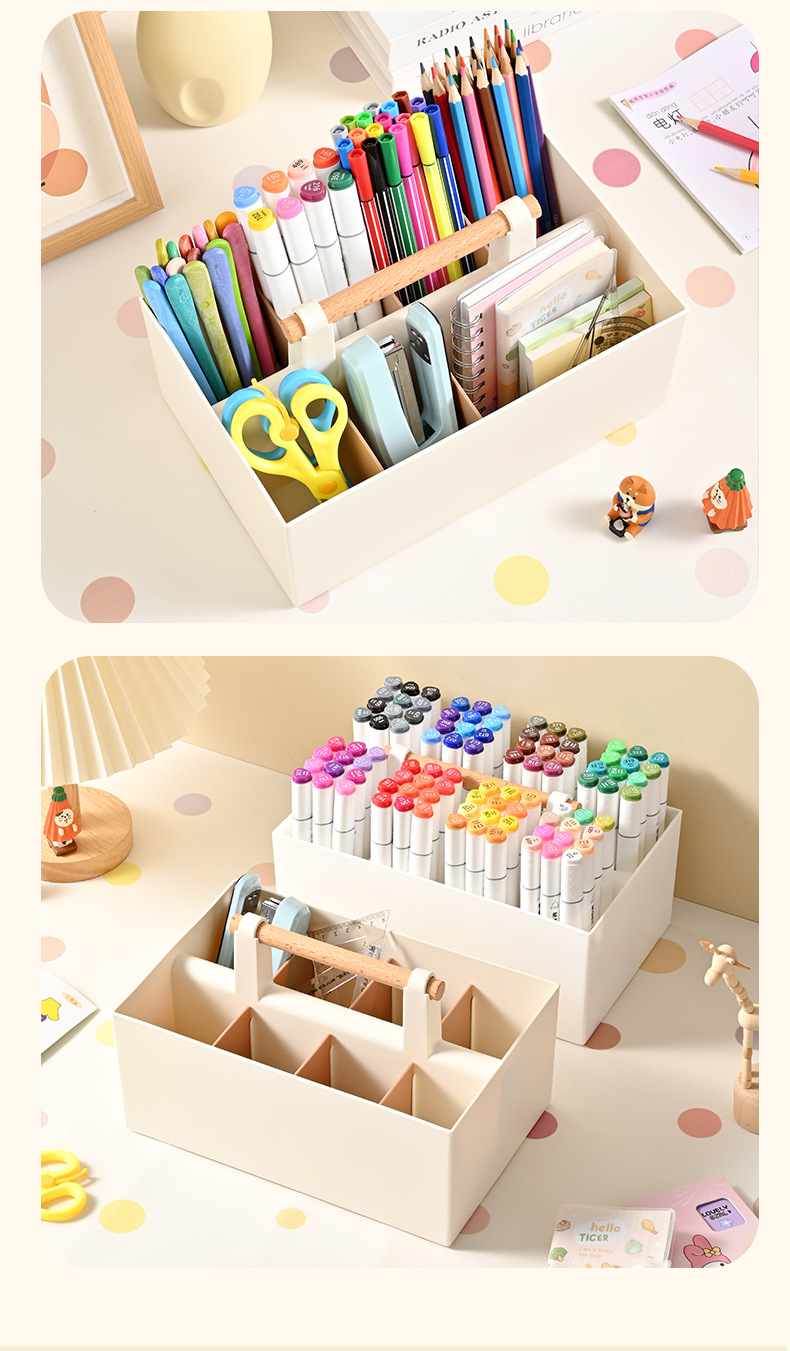 手提马克笔收纳盒多格办公桌文具收纳盒多功能书桌笔筒分格收纳盒| 塑料盒 | 高级感 | 书桌 |
