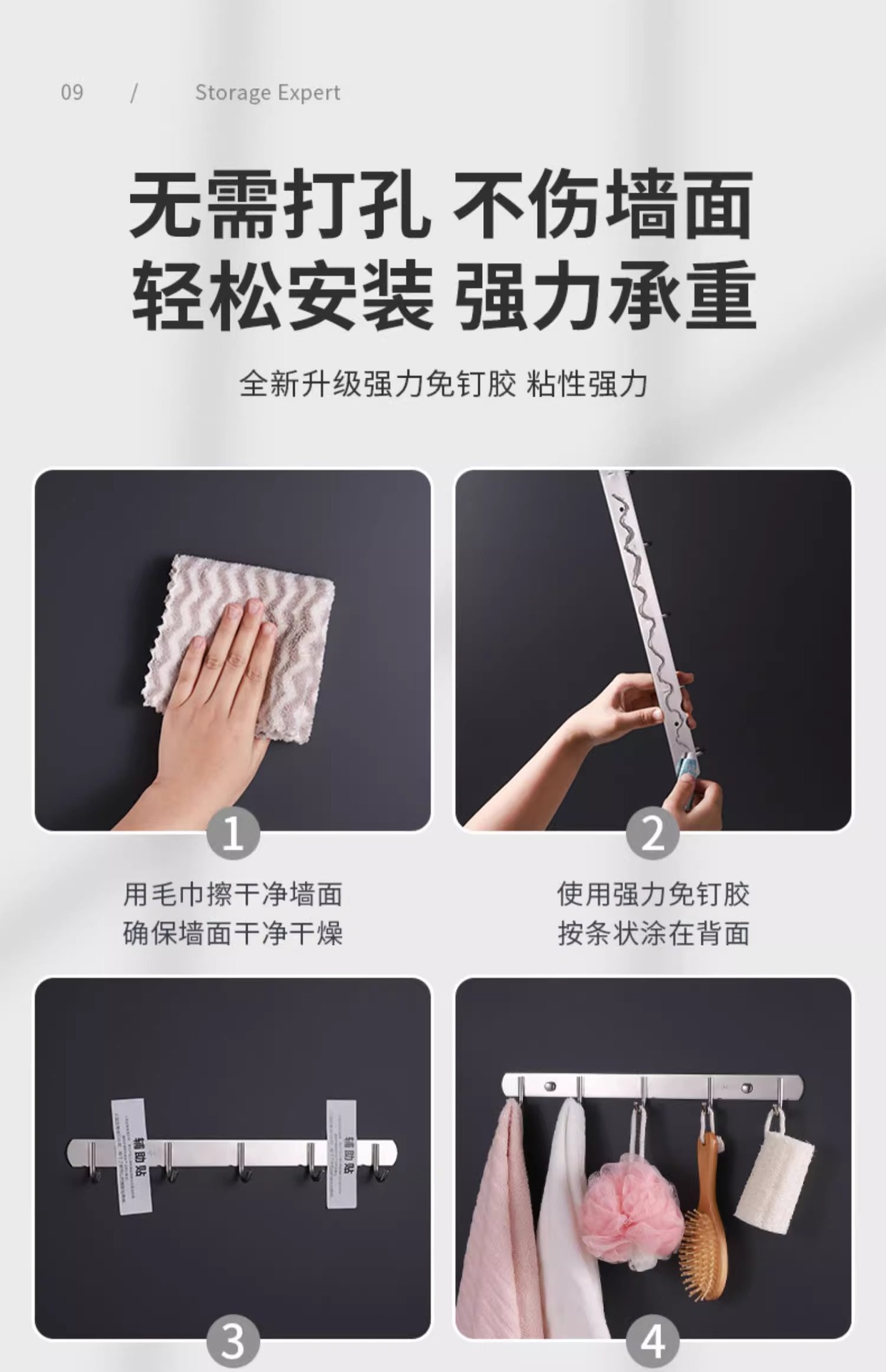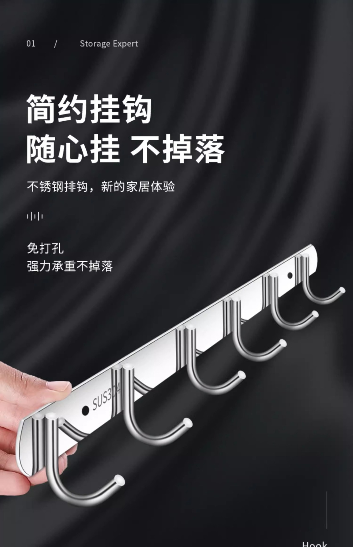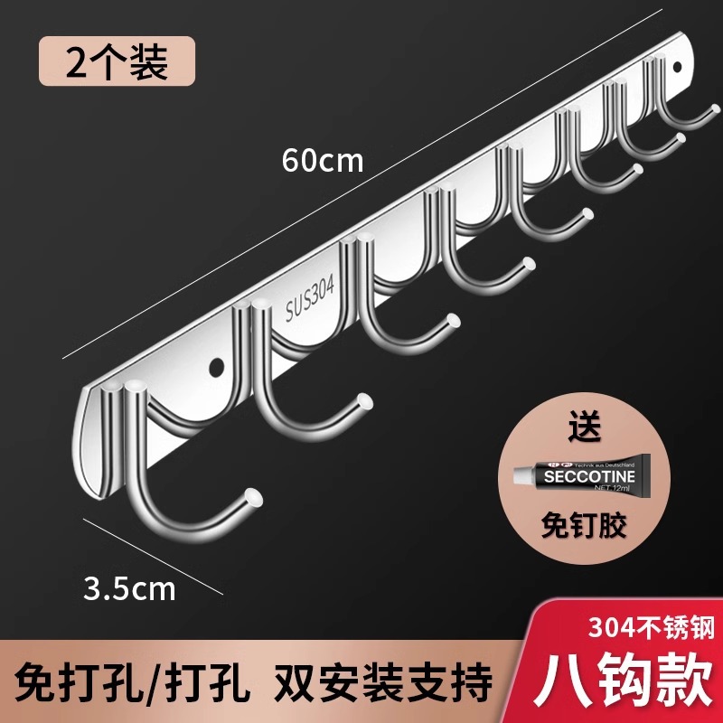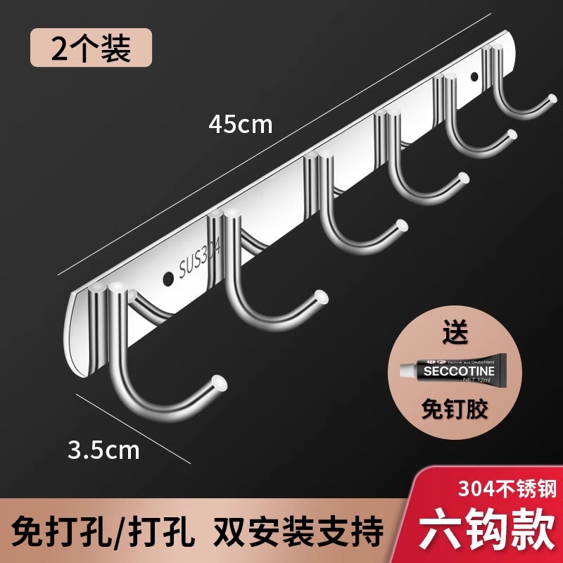 厂价直销不锈钢挂钩排钩卫生间衣服挂钩厨房用品挂架免打孔粘钩架
