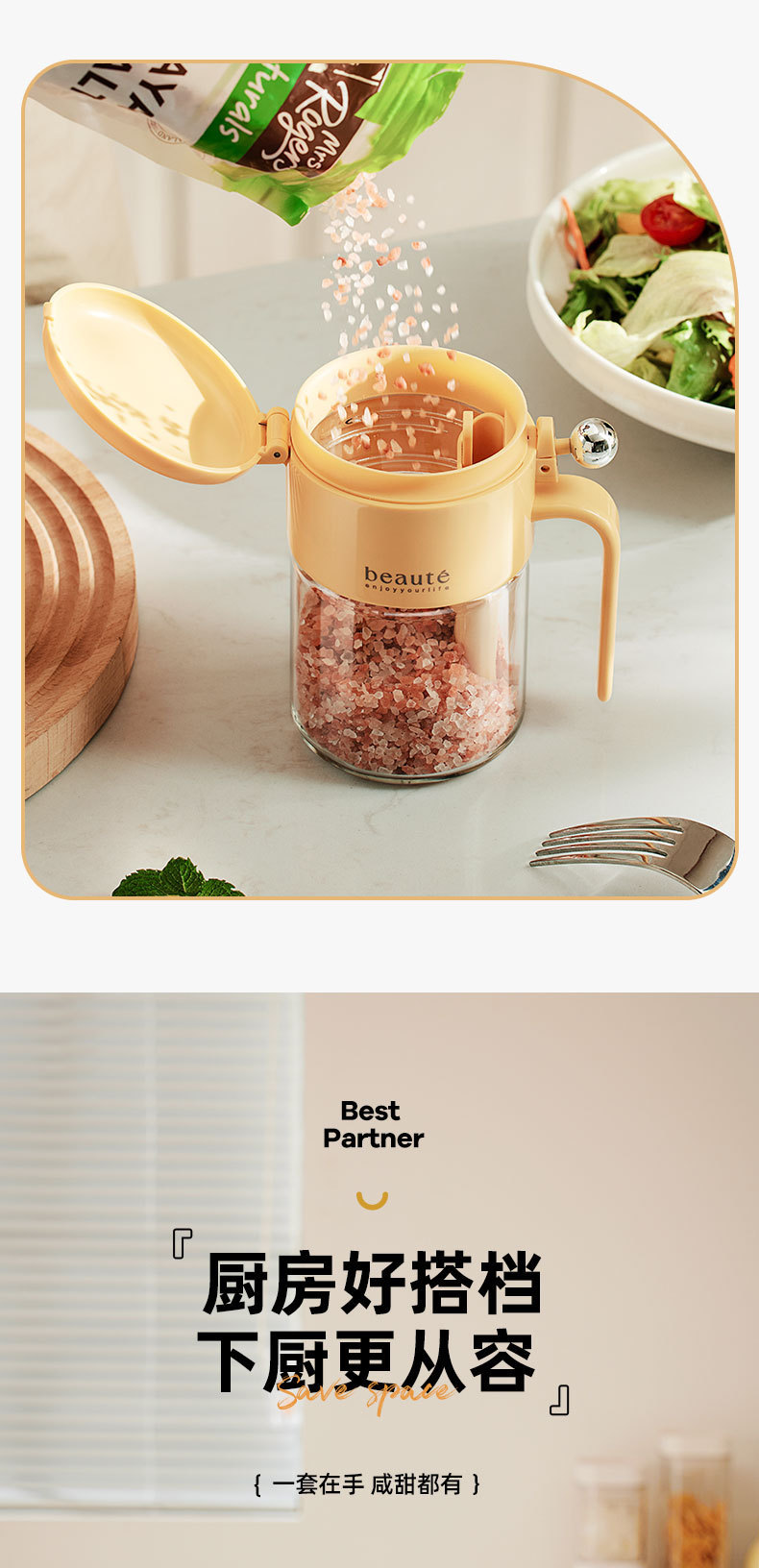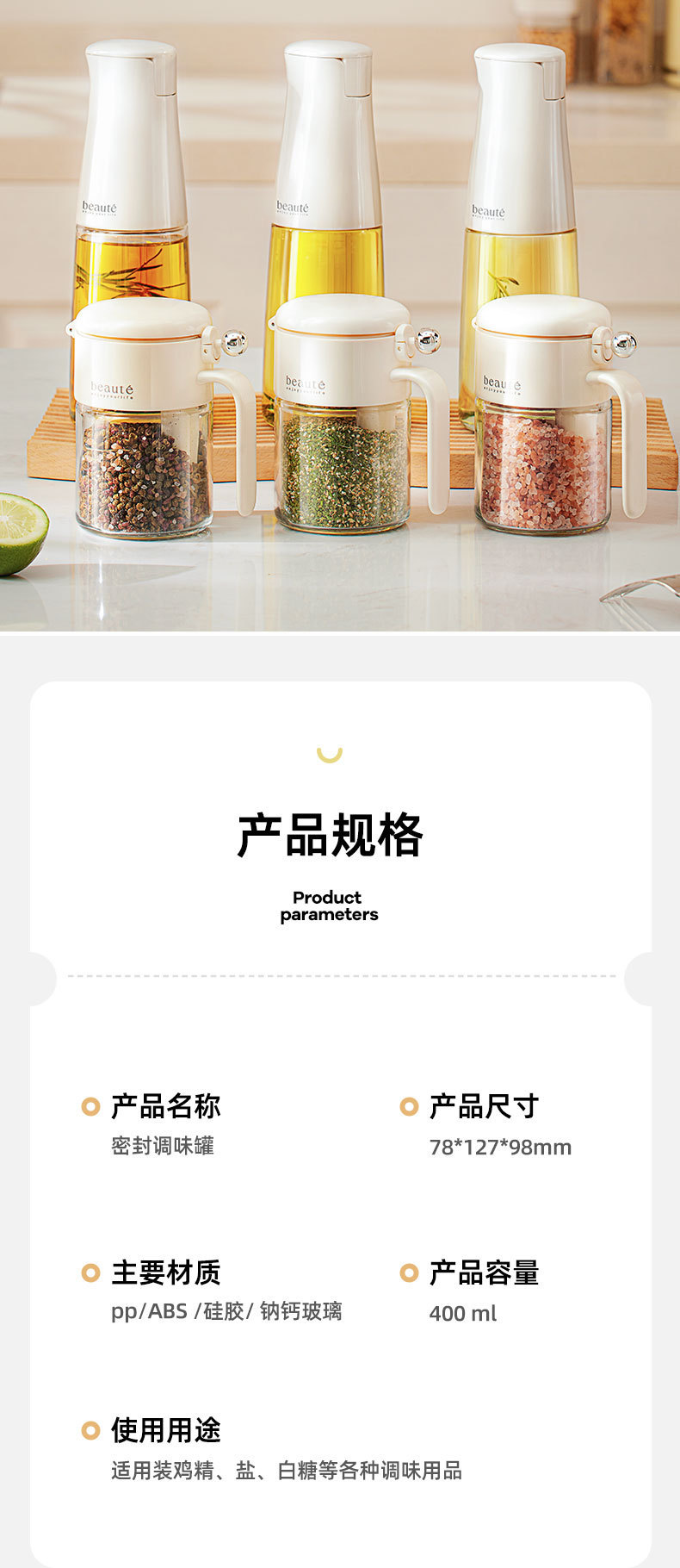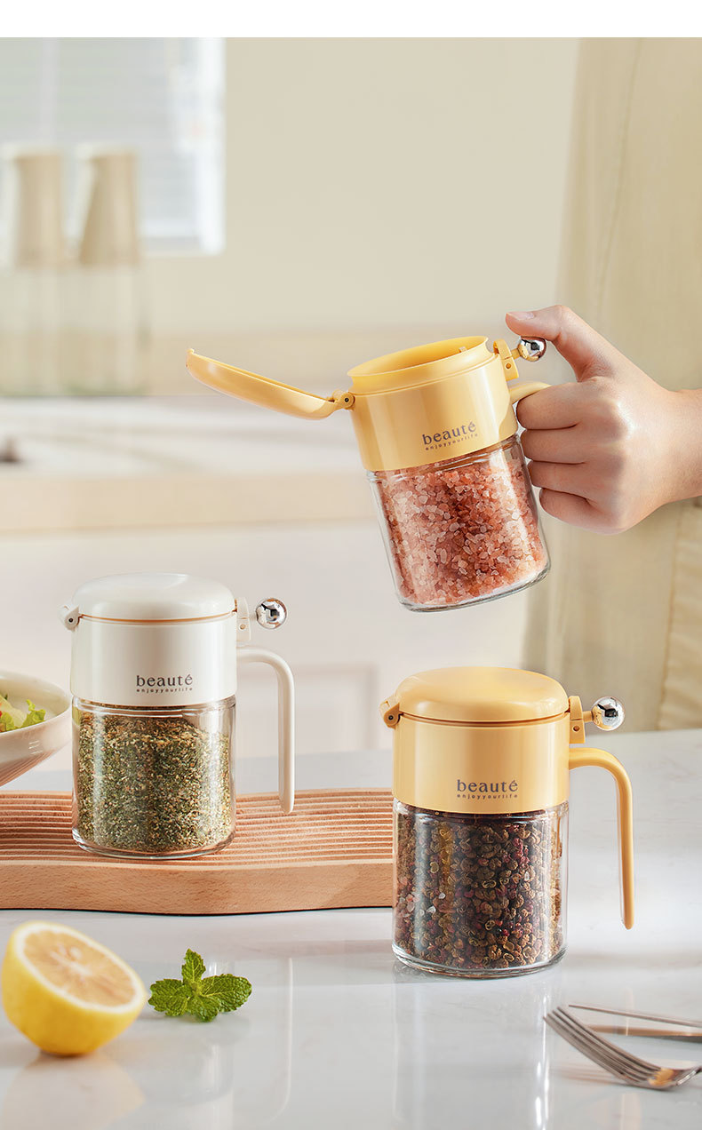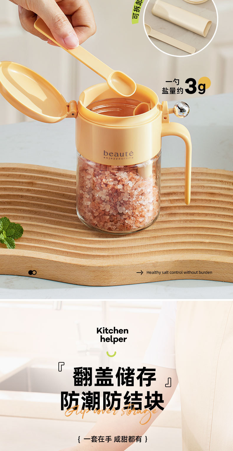 自主设计 密封调料罐防潮玻璃调料瓶带勺 厨房装盐调料盒调味盐罐