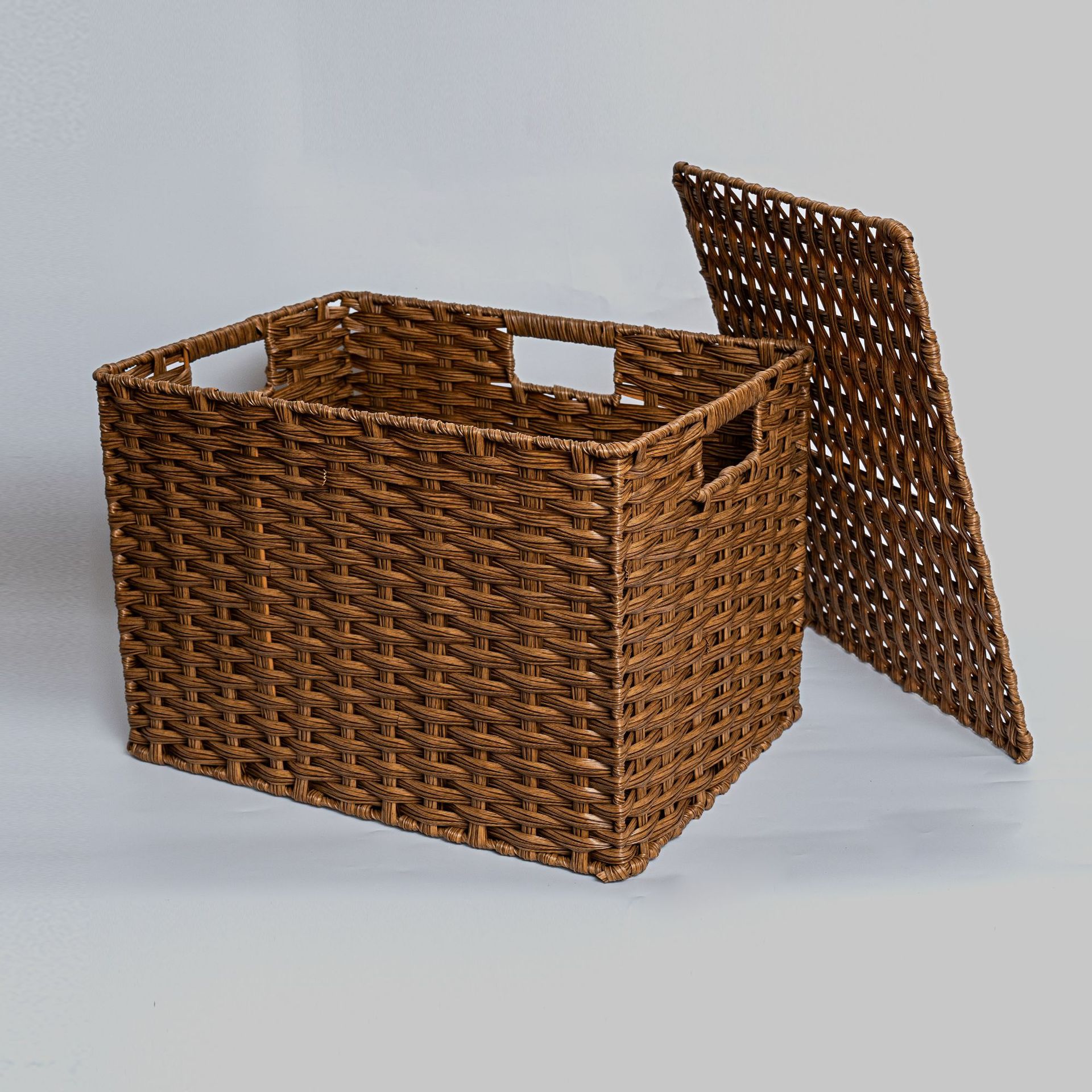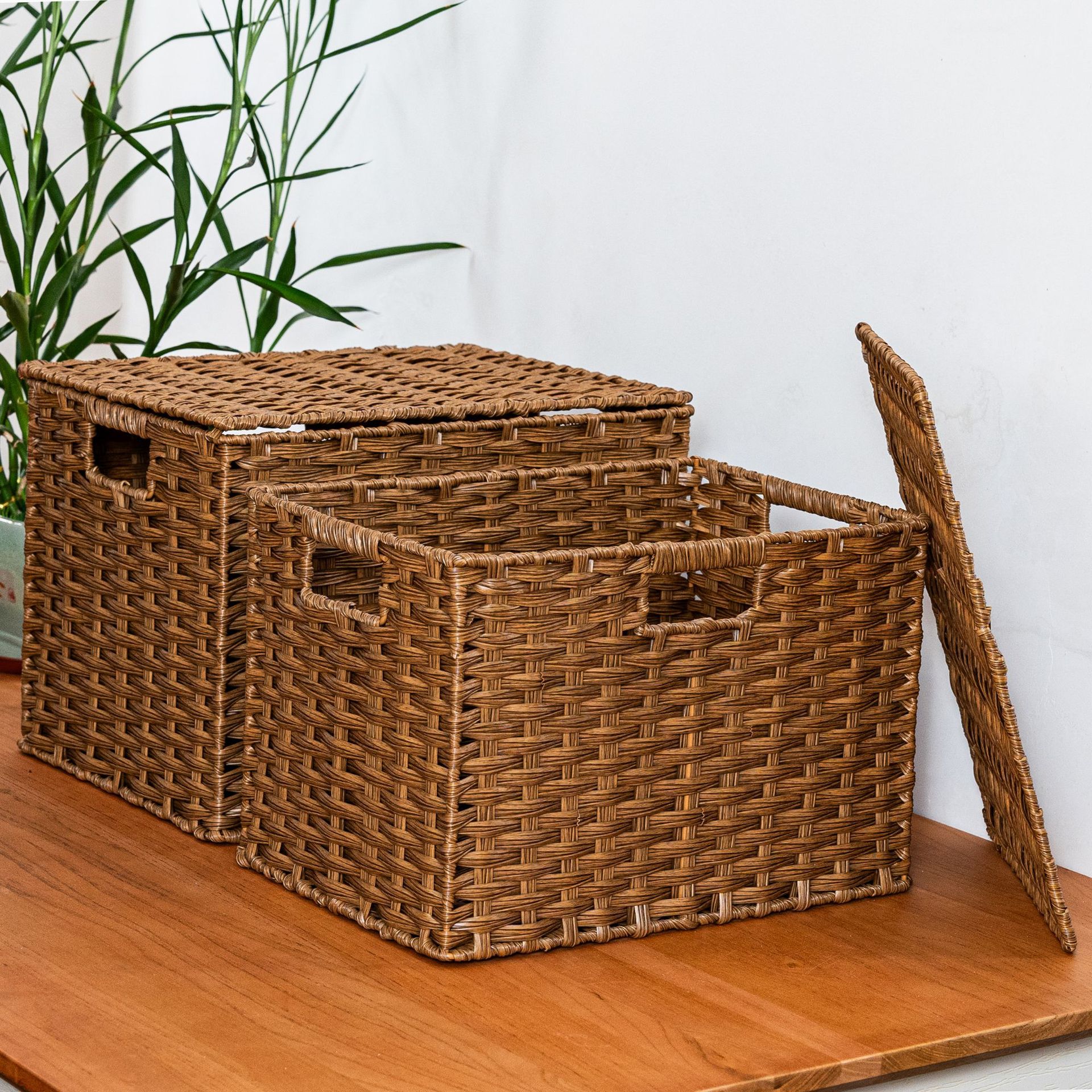 藤编编织收纳筐格子柜杂物收纳盒玩具藤编收纳框桌面整理童玩