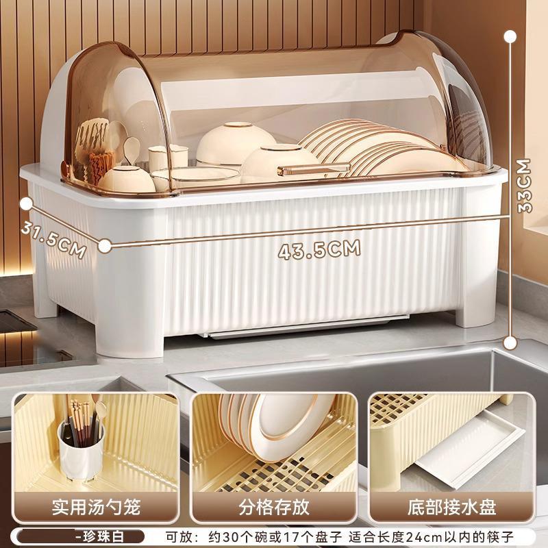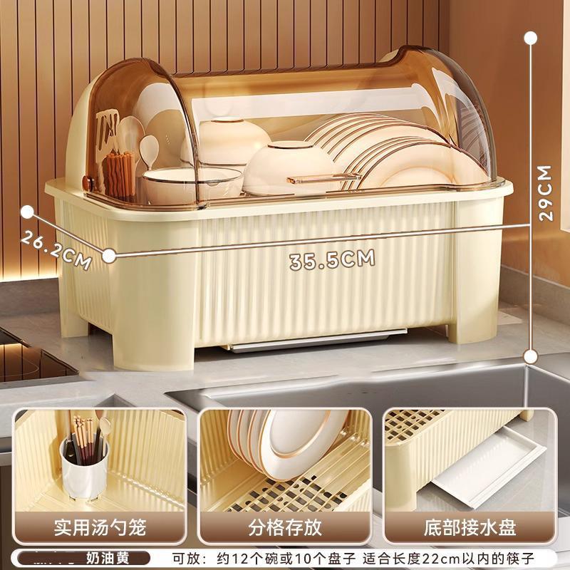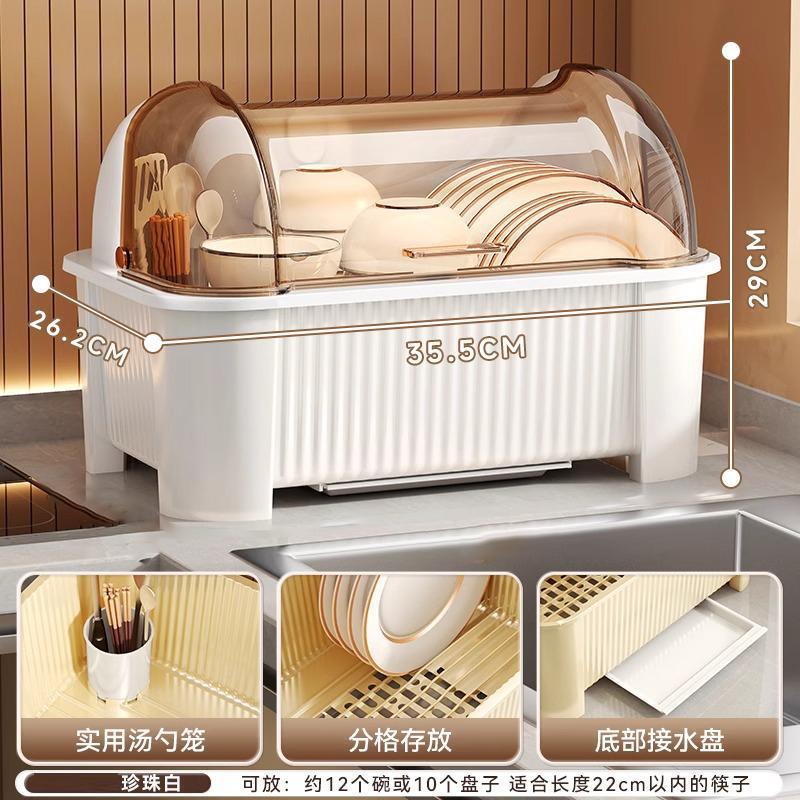碗筷收纳盒带盖带沥水防尘防虫碗架儿童餐具收纳柜厨房家用碗柜
