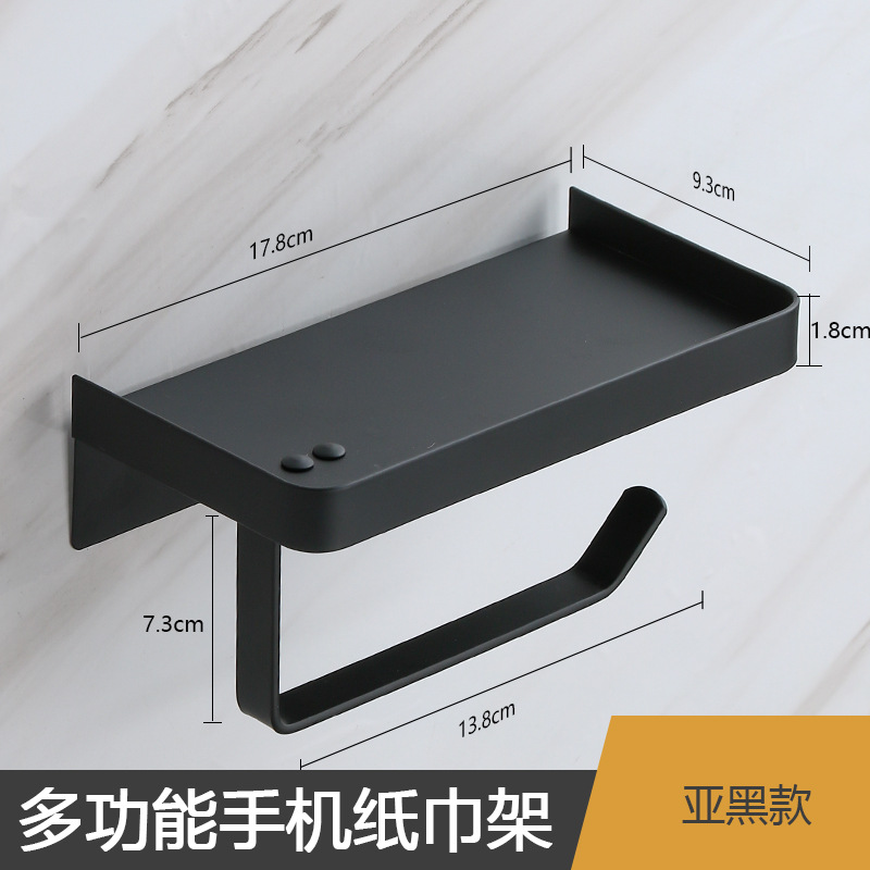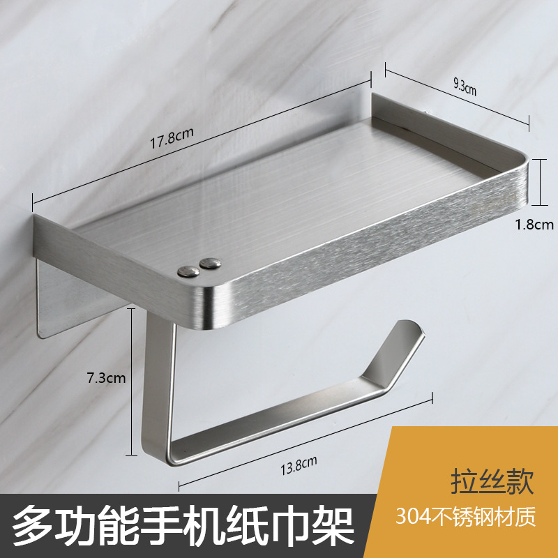 304不锈钢手机置物架带围边纸巾架牙刷架黑色厨卫收纳架免打孔