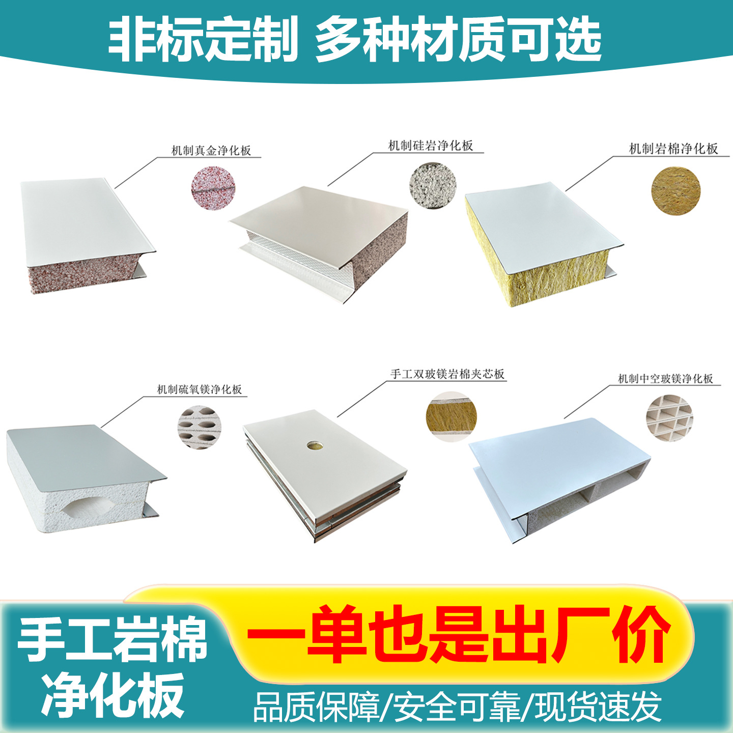 手工岩棉板净化洁净板无尘车间防火岩棉彩钢夹芯板厂房轻质隔墙板