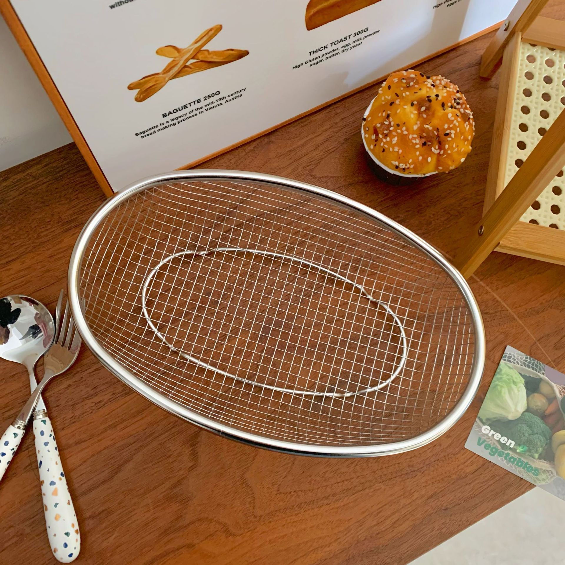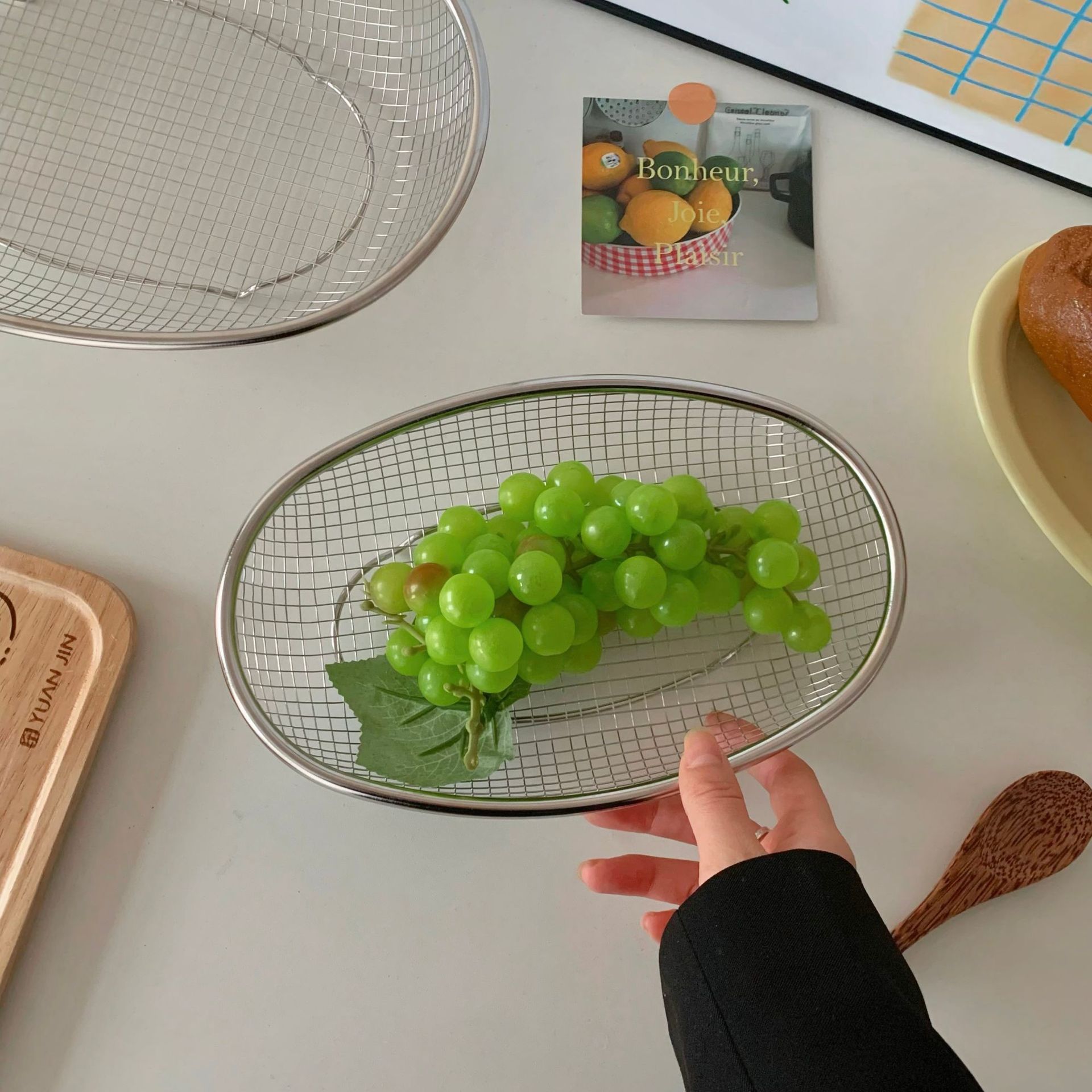 好用推荐不锈钢网椭圆篮子滤水滤油小吃篮洗菜洗水果滤水篮收纳篮