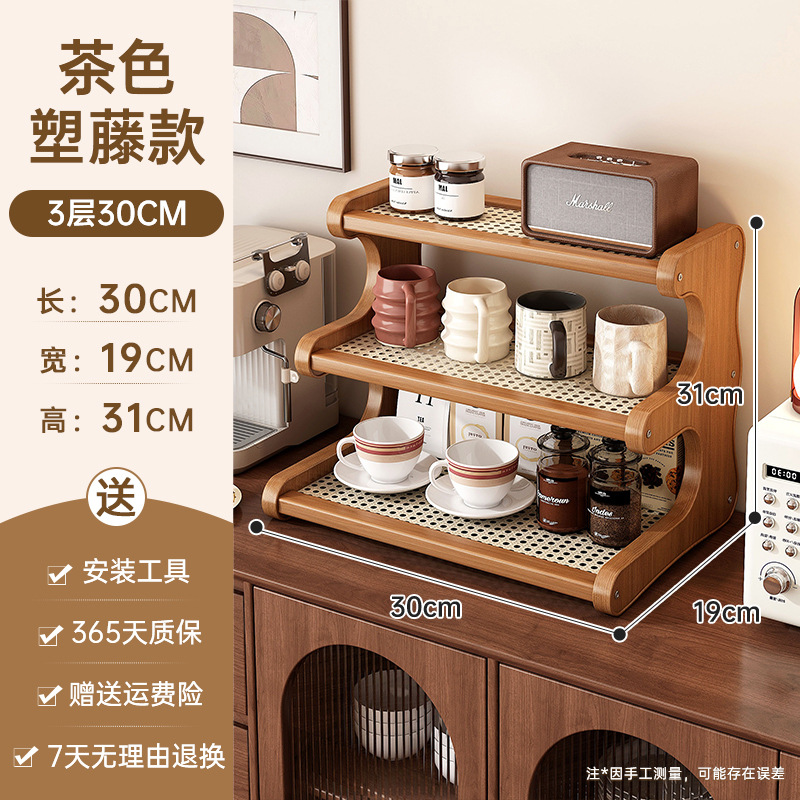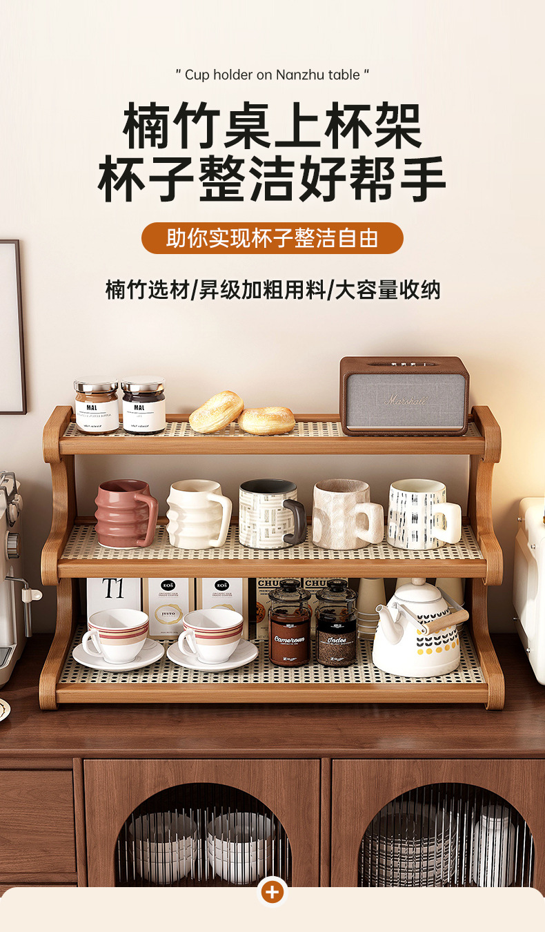塑藤杯架梯形桌面置物架桌上多层沥水茶具收纳架办公桌工位增高架
