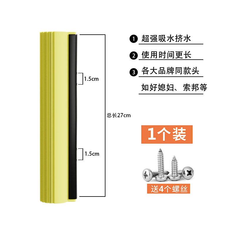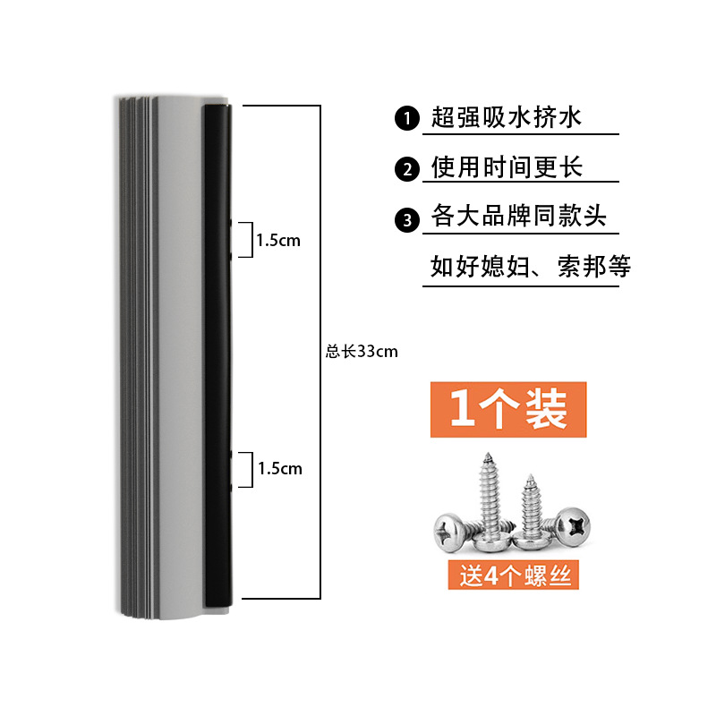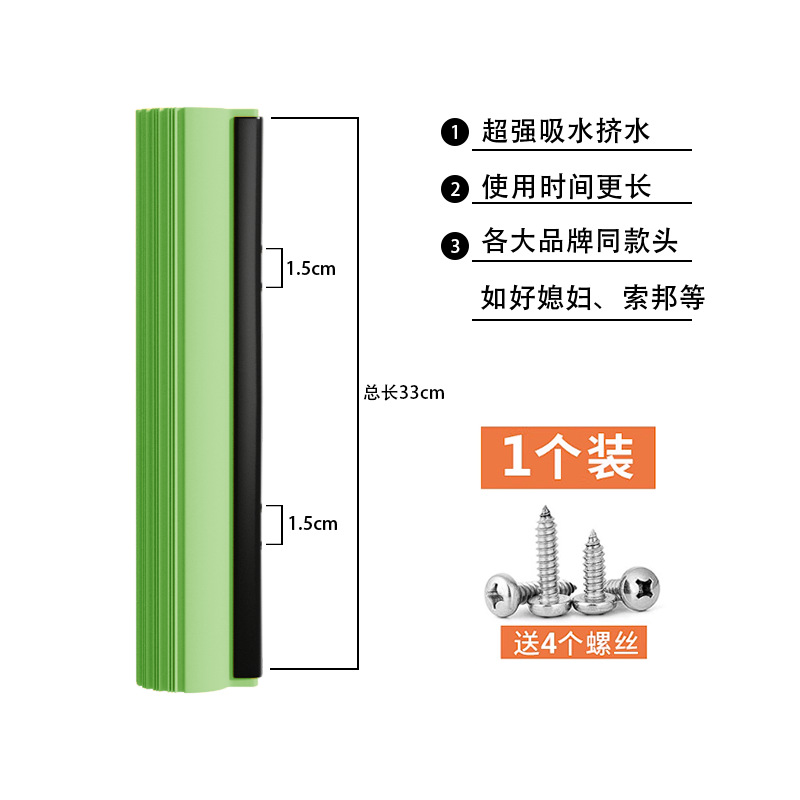 拖把头滚轮家用PVA吸水海绵胶棉头通用28 33 38cm单独拖布替换头