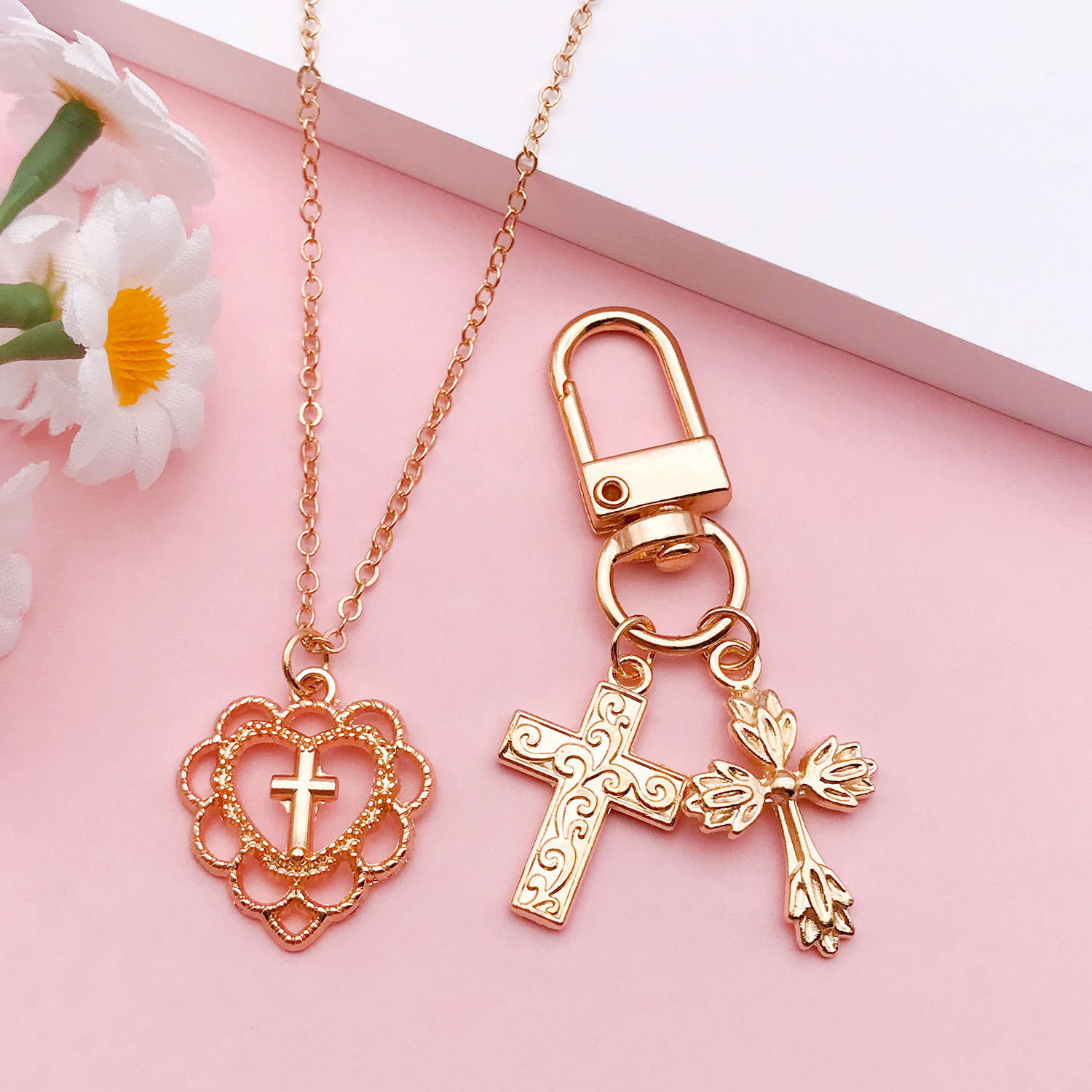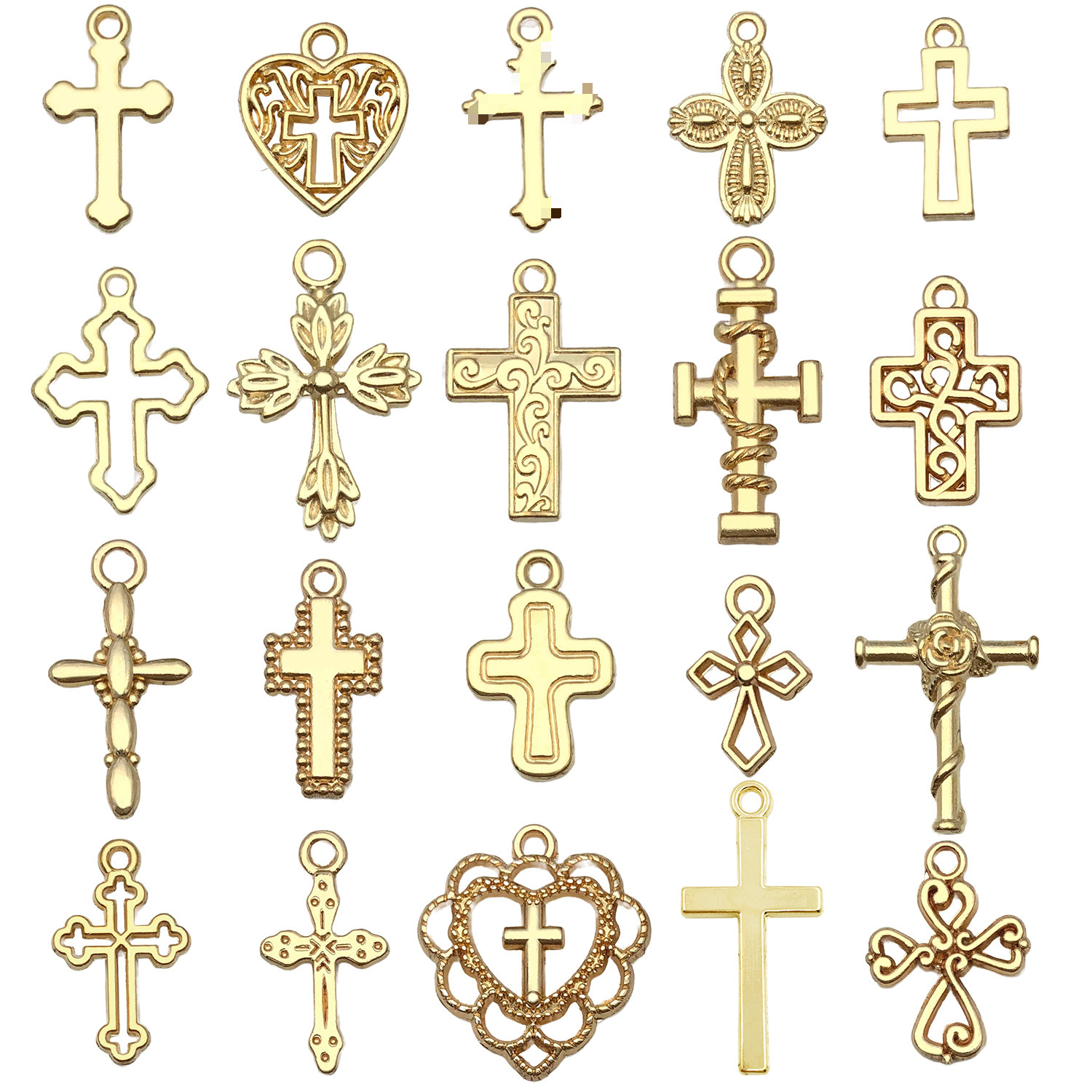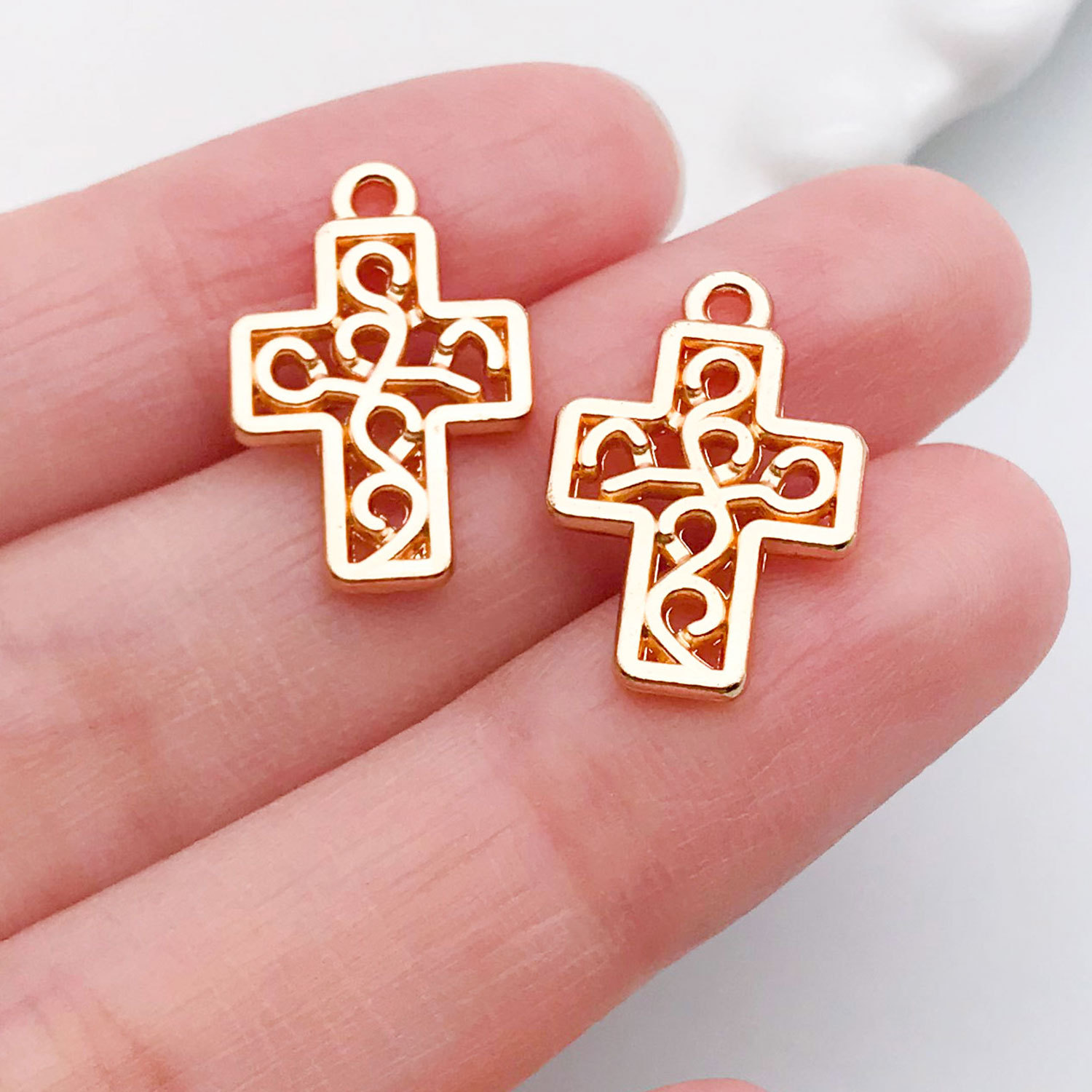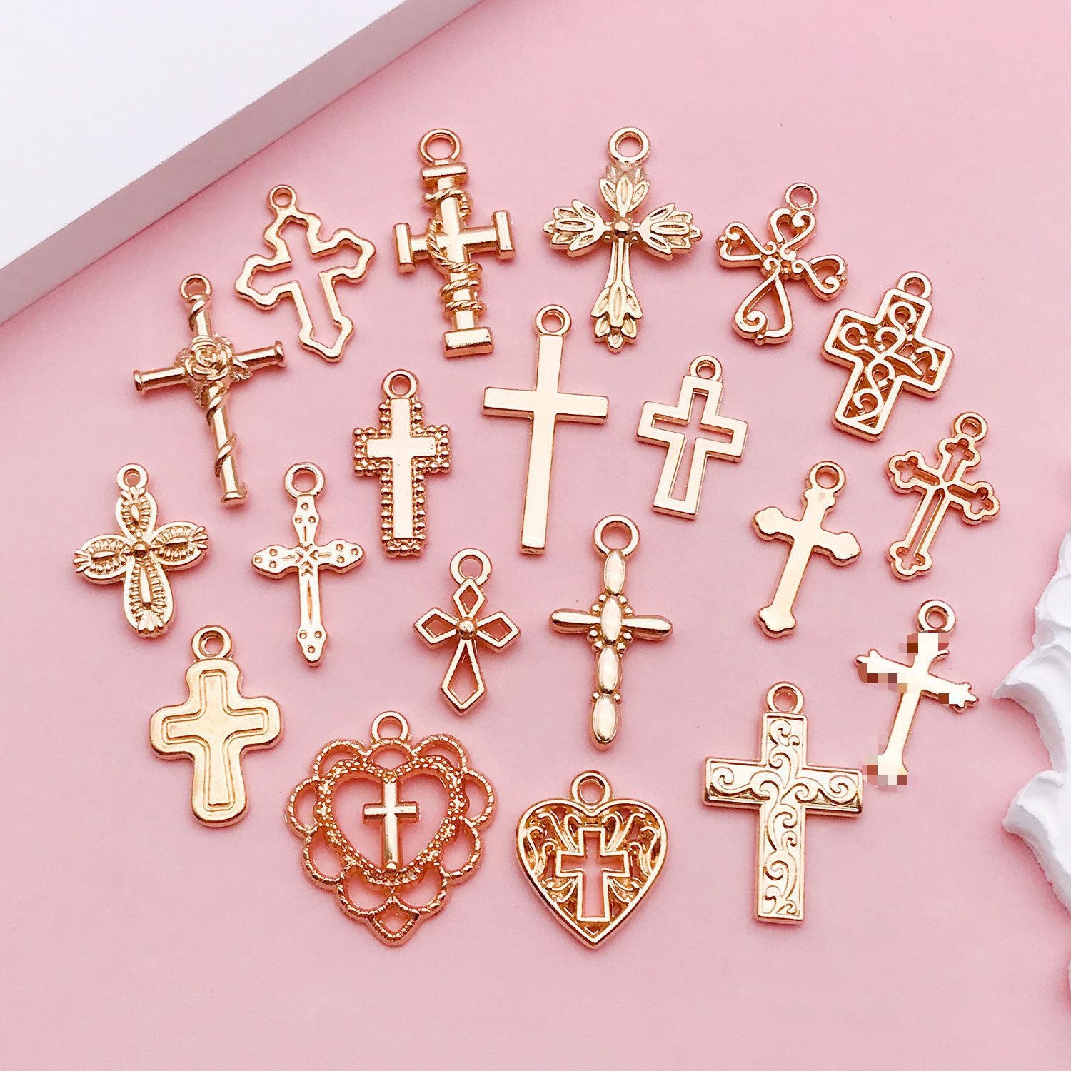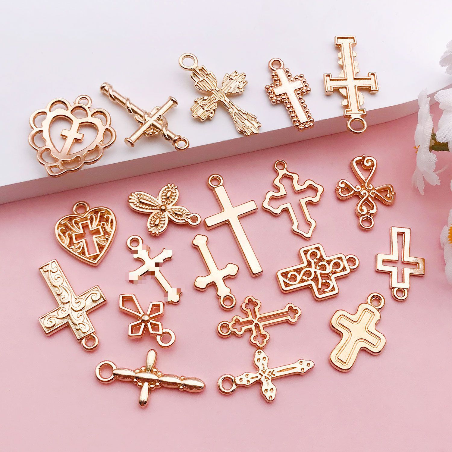 20款kc金十字架吊坠配件 时尚简约镂空花纹DIY项链挂件饰品配饰潮
