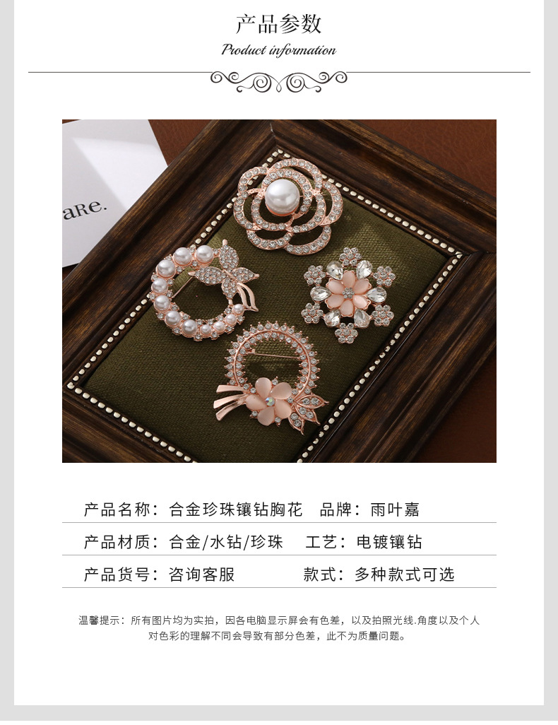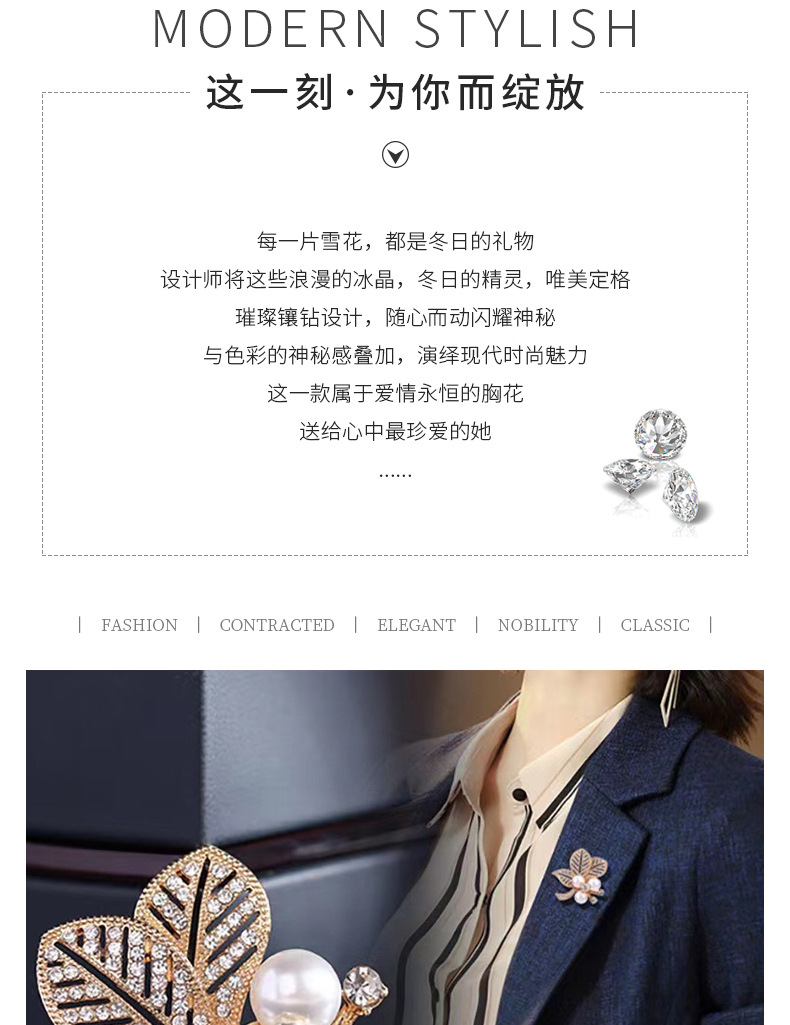 女款气质甜美合金胸针珍珠镶钻别针可爱女生衣服装饰百搭胸花配饰