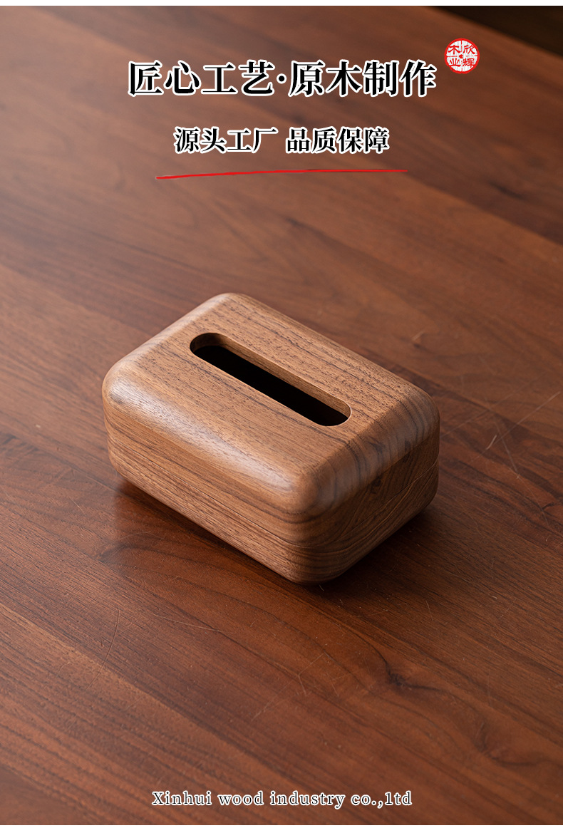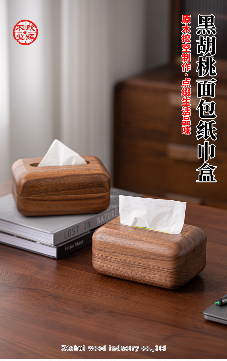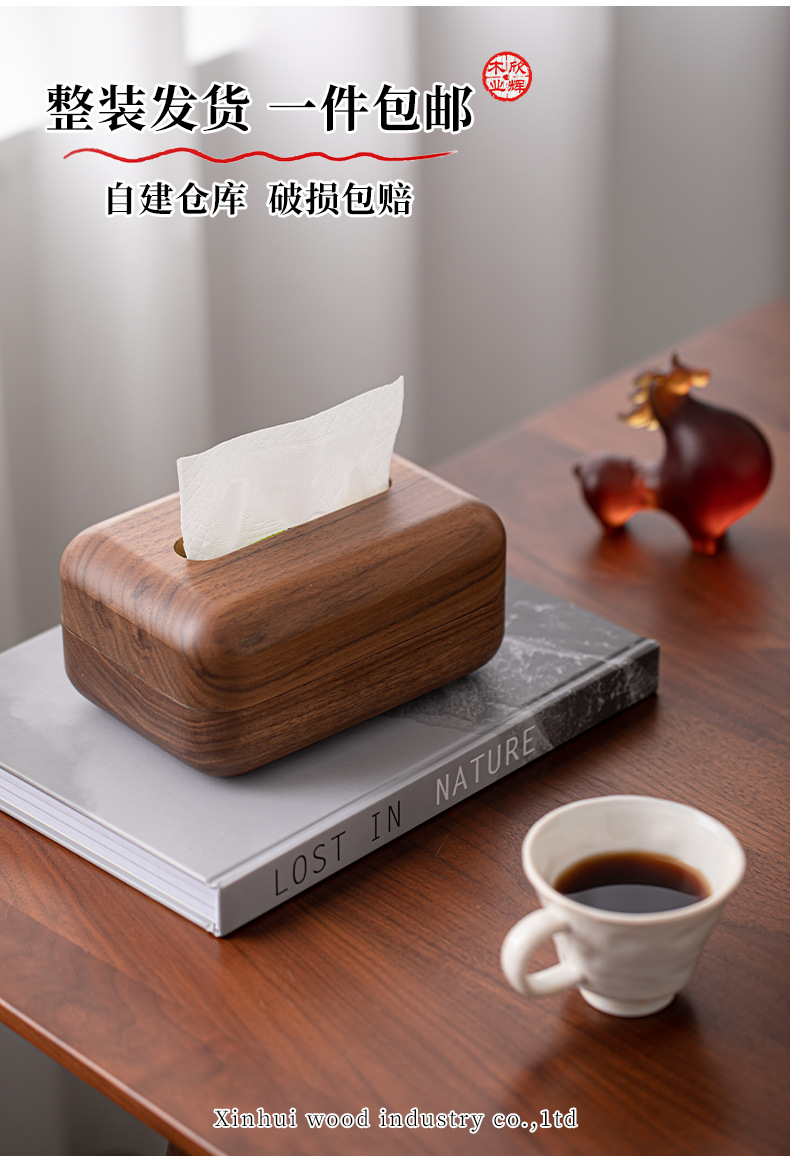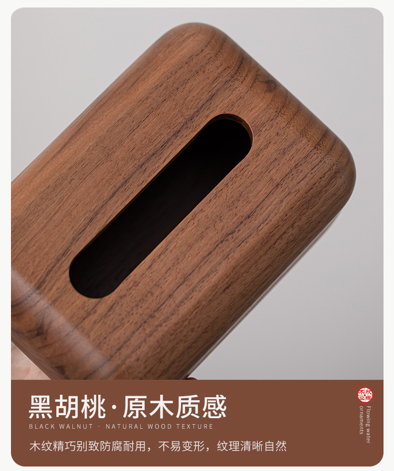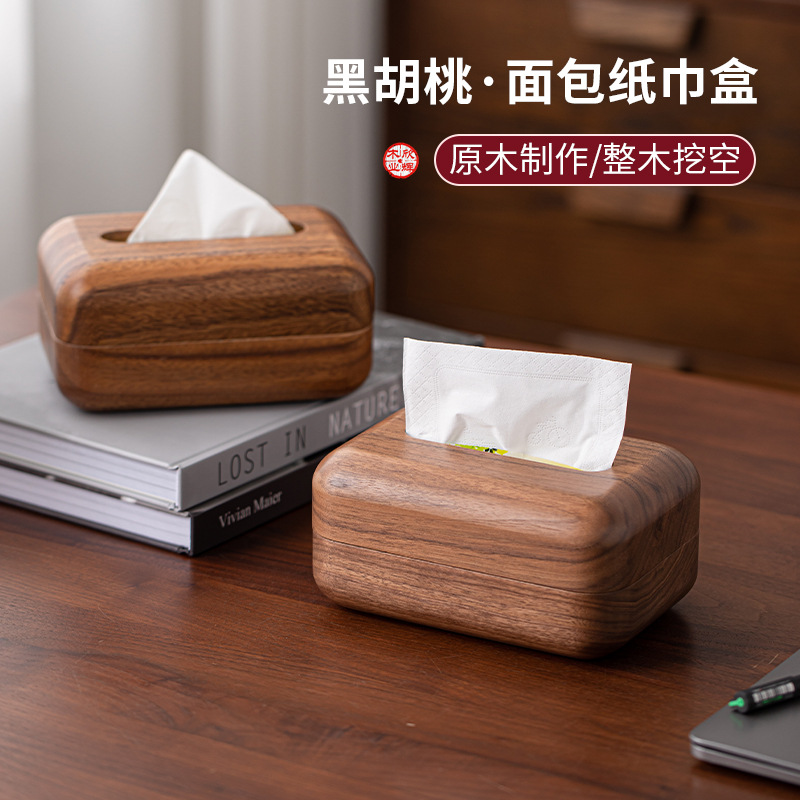 黑胡桃实木纸巾客厅纸巾盒创意抽纸盒家用木质收纳盒简约纸巾盒