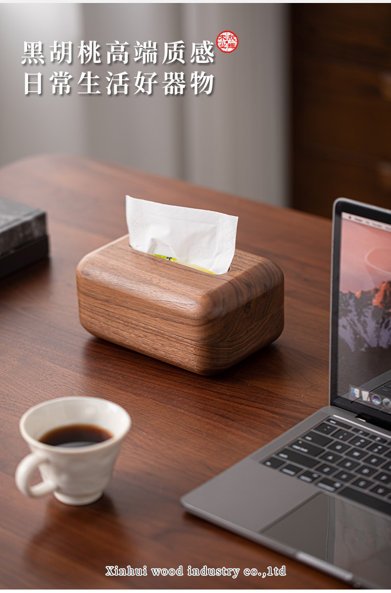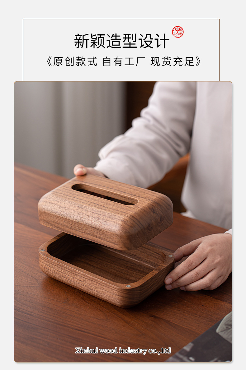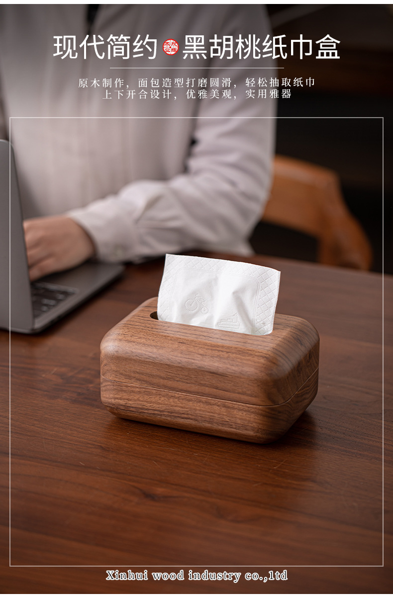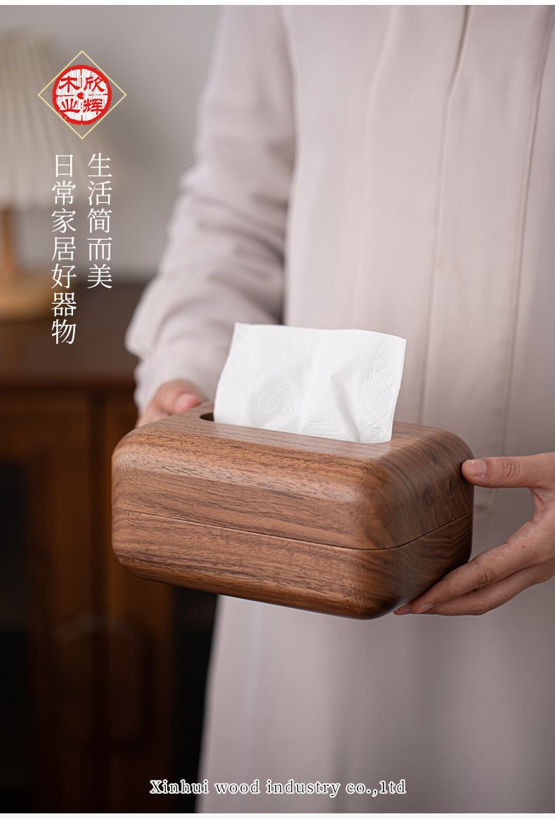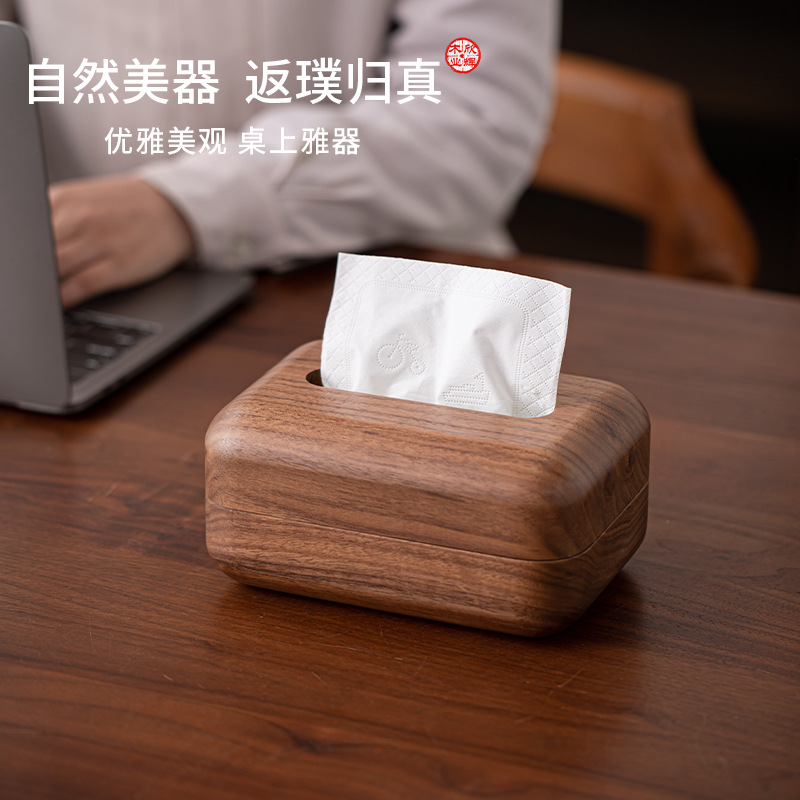 黑胡桃实木纸巾客厅纸巾盒创意抽纸盒家用木质收纳盒简约纸巾盒