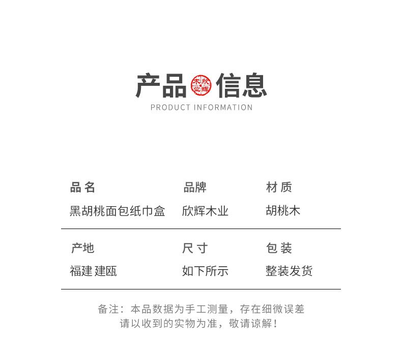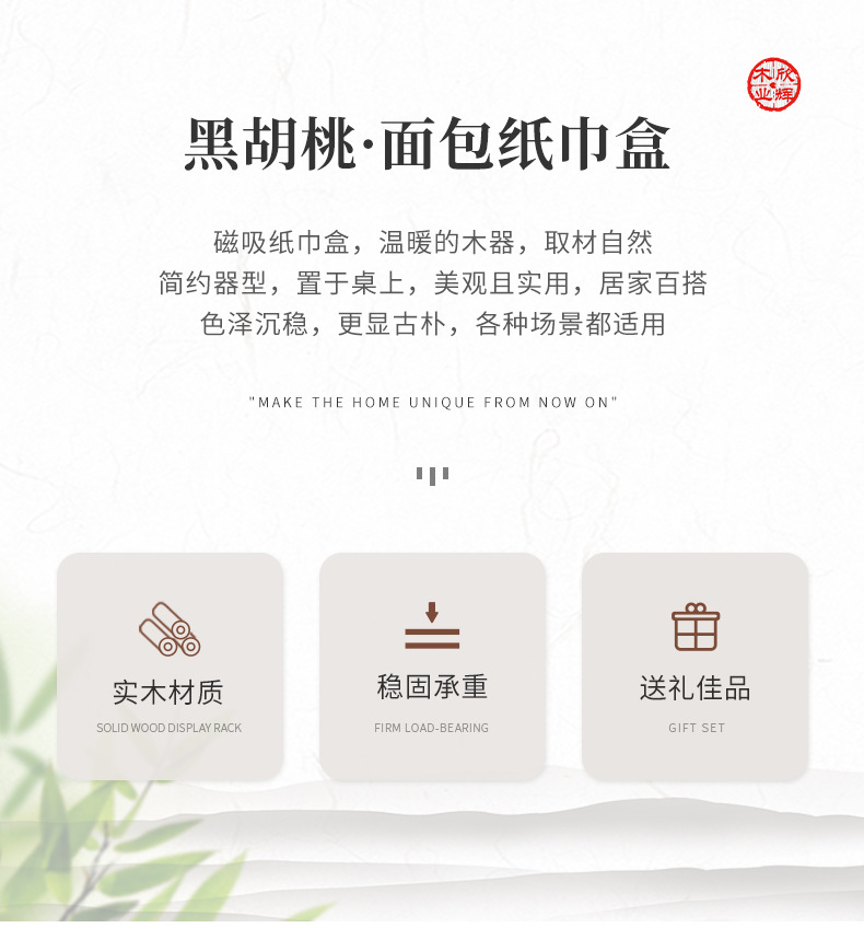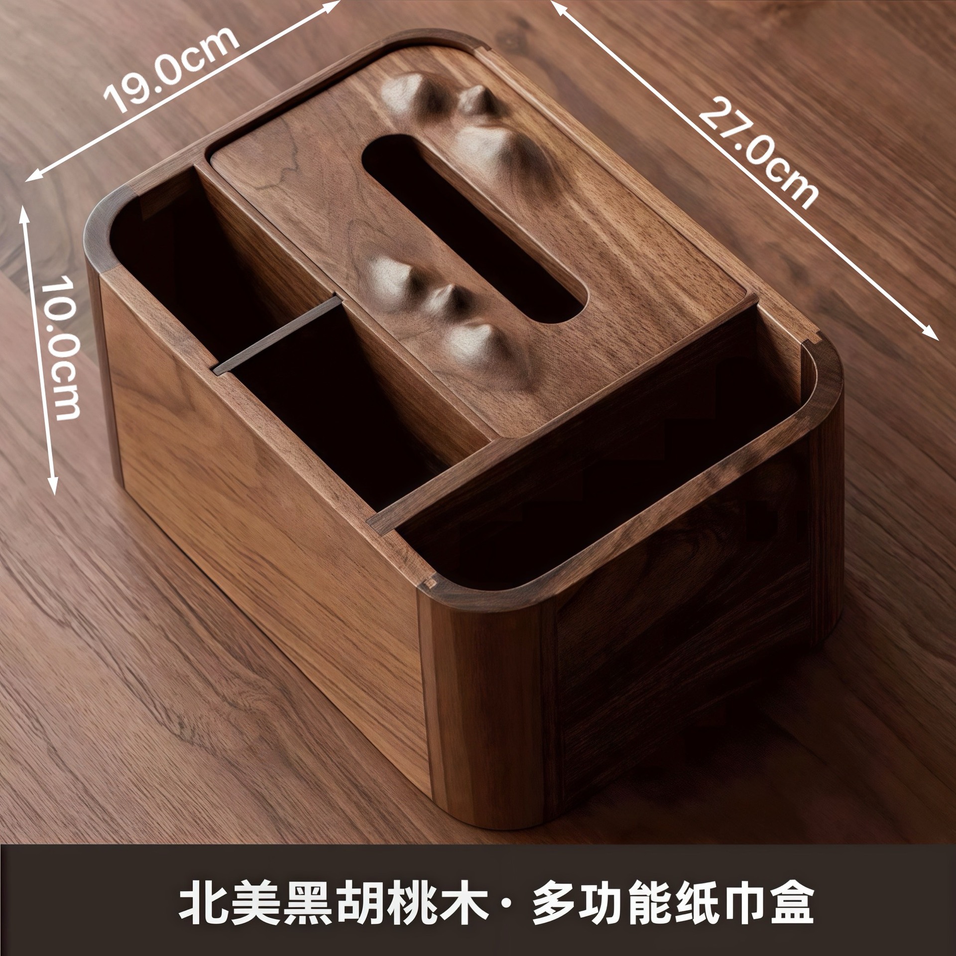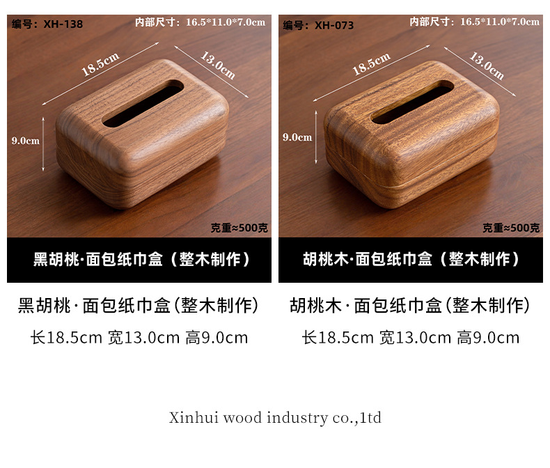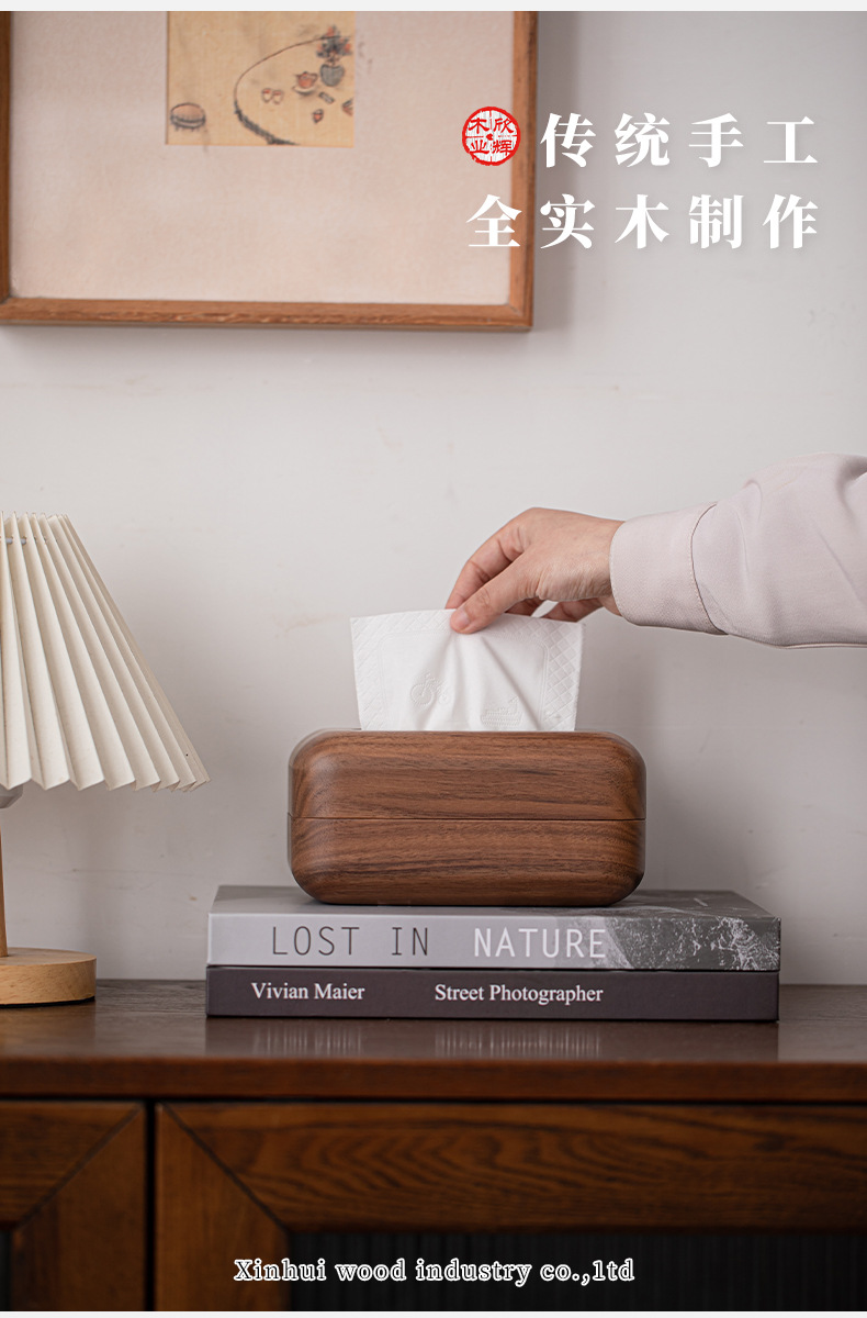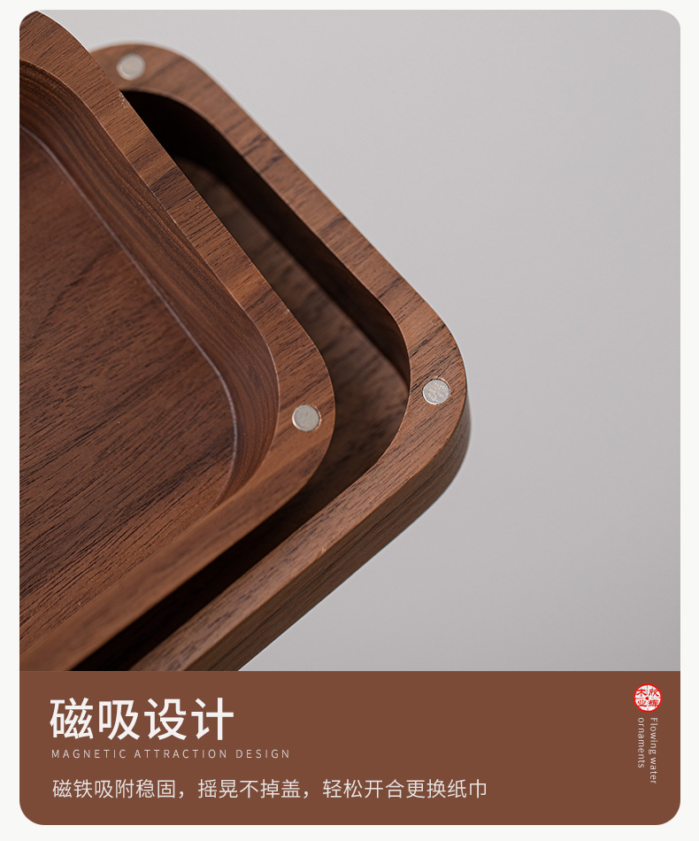黑胡桃实木纸巾客厅纸巾盒创意抽纸盒家用木质收纳盒简约纸巾盒