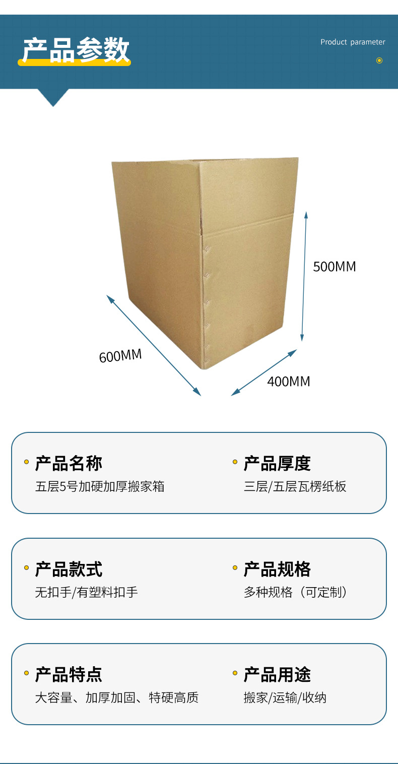 厂家批发搬家五层加硬纸箱(60*40*50CM) 通用包装大号打包纸箱