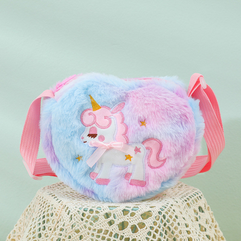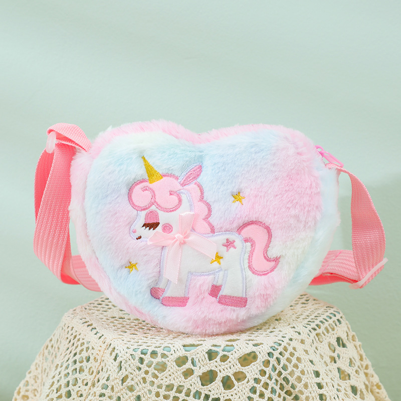 可爱爱心独角兽斜挎包儿童毛绒单肩包小女孩卡通背包儿童包毛绒包